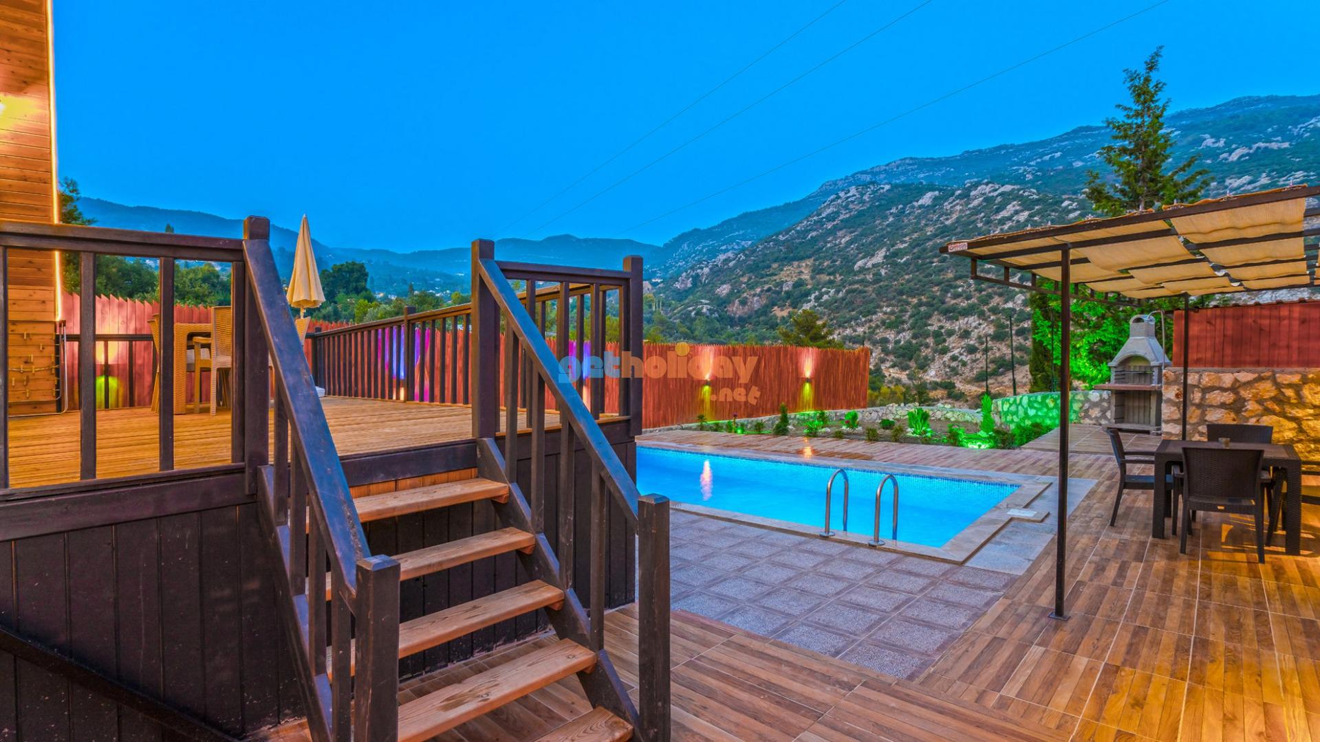 Kalkan İslamlar bölgesinde konumlanmakta olan Bungalov Golden Blossom Wood, 2 yatak odası ile 4 kişi konaklama kapasitesine sahiptir. Balayı çiftlerimiz ve çekirdek ailelerimiz için oldukça ideal bir seçenektir. Tamamı doğa manzarası ve sessizliği ile huzurlu bir tatil sunmaktadır.
