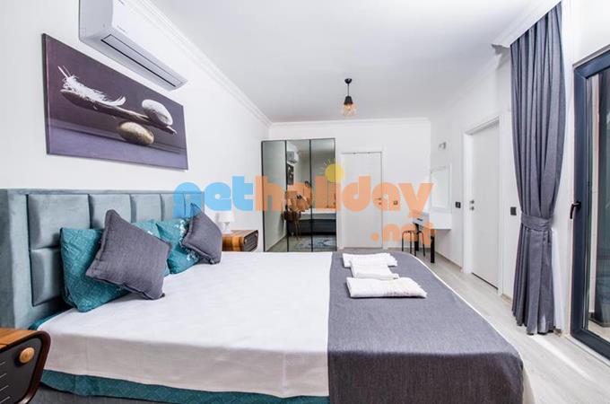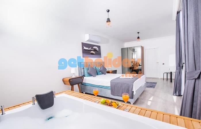 Birinci yatak odasında bir adet çift kişilik yatak, jakuzi ve banyo bulunmaktadır.
