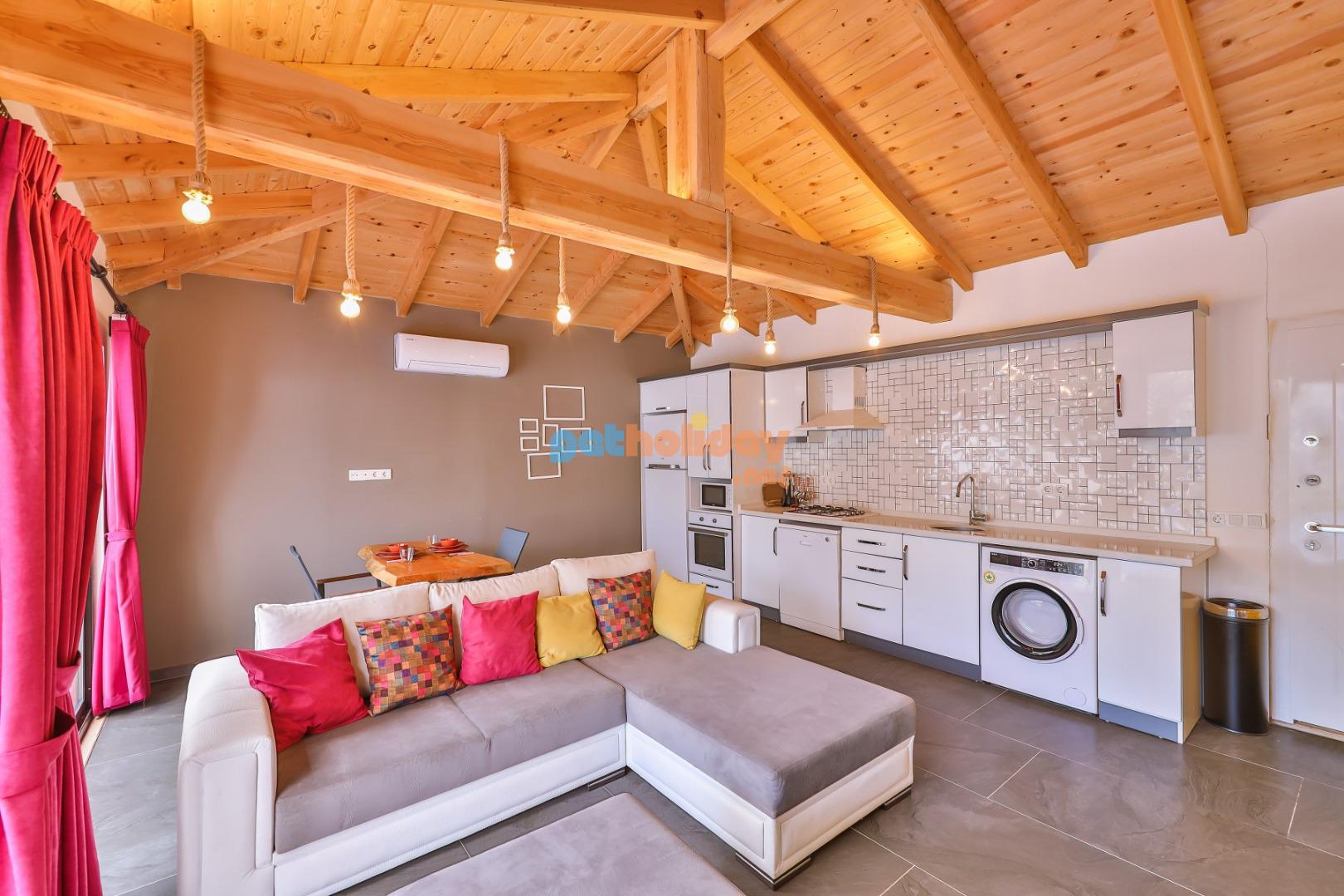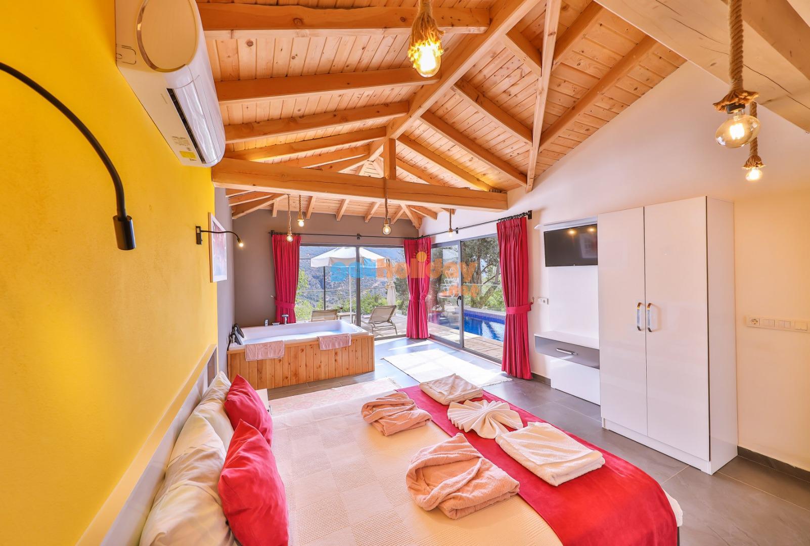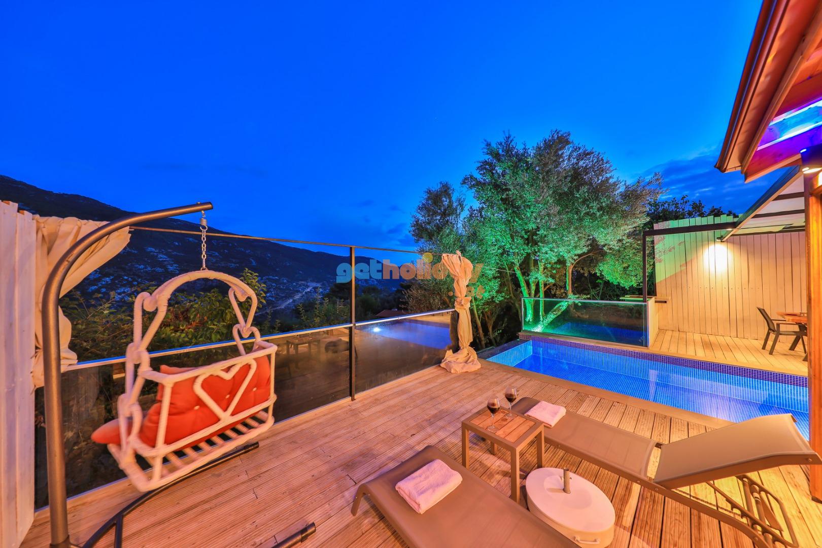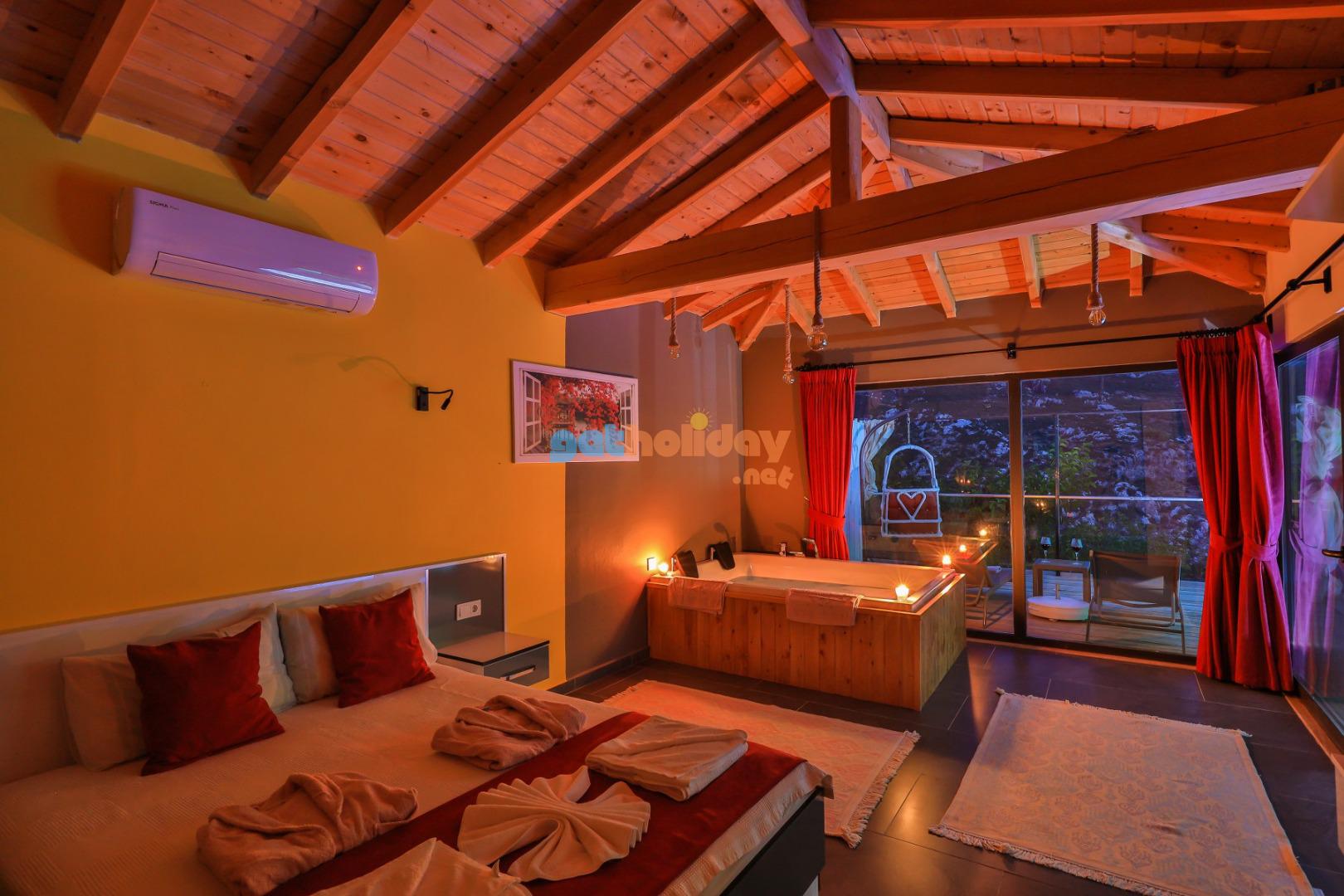 Kalkan İslamlar Köyünde konumlanan Muhafazakar Balayı Villası Abanos, bir yatak odalı olup iki kişi kapasitesine sahip.