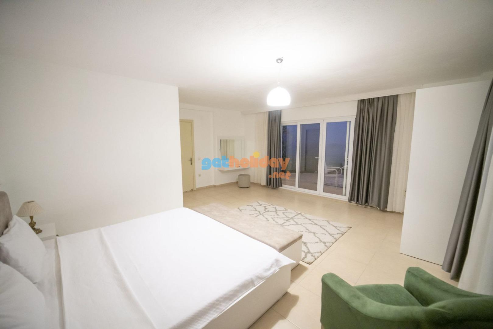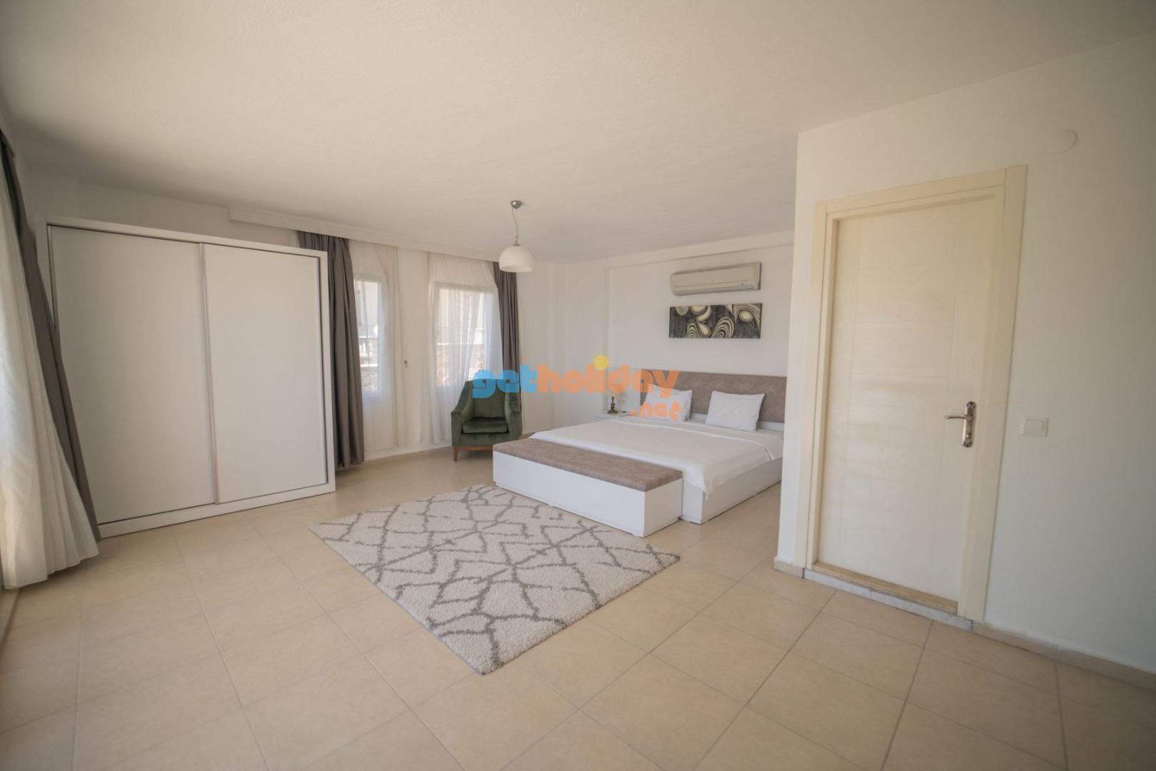 4. Yatak Odası: 1 adet çift kişilik yatak, , komodin, makyaj masası, elbise dolabı, klima, ve banyo tuvalet bulunmaktadır.