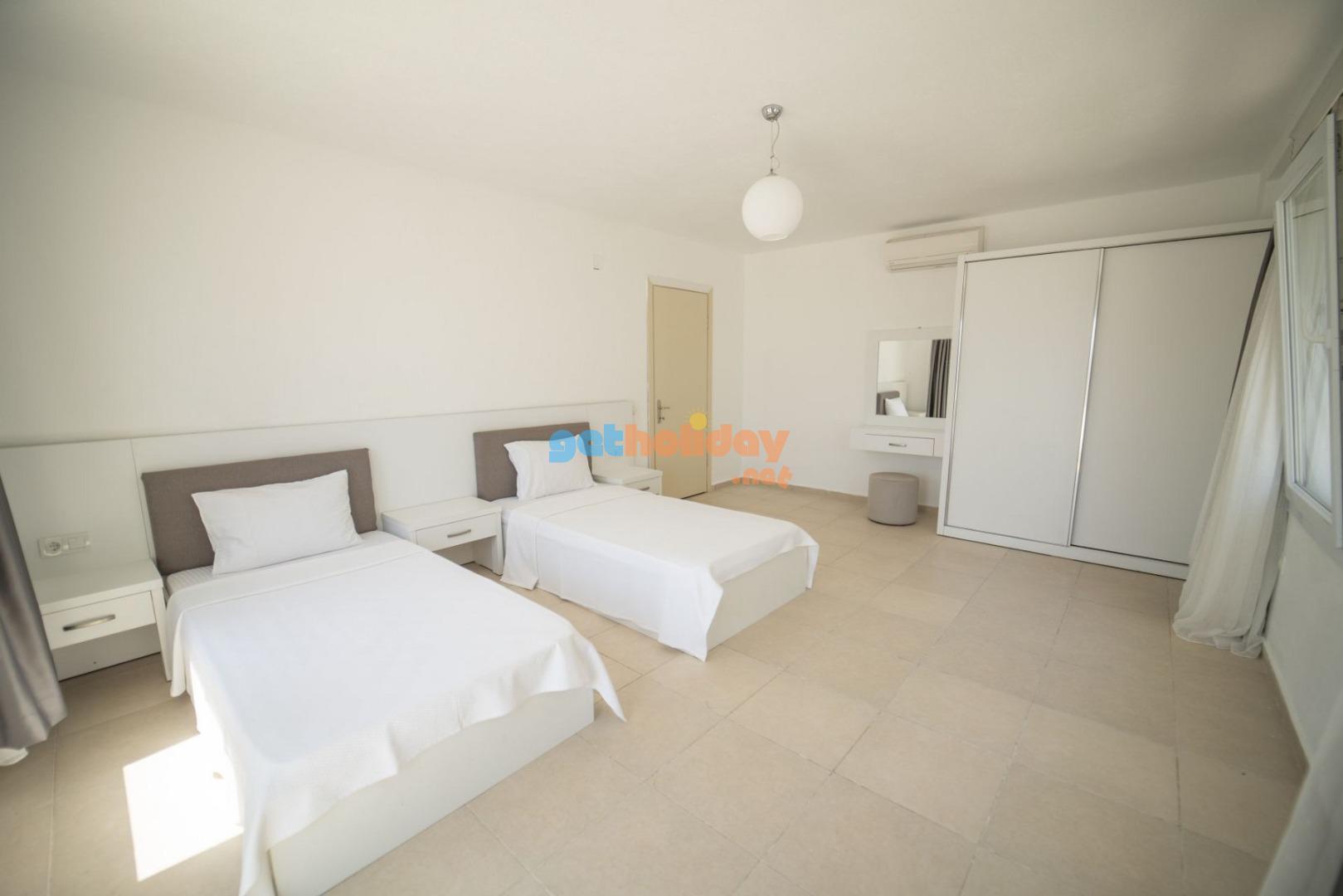 7. Yatak Odası: 2 adet tek kişilik yatak, , komodin, makyaj masası, elbise dolabı, klima, ortak banyo tuvalet bulunmaktadır.