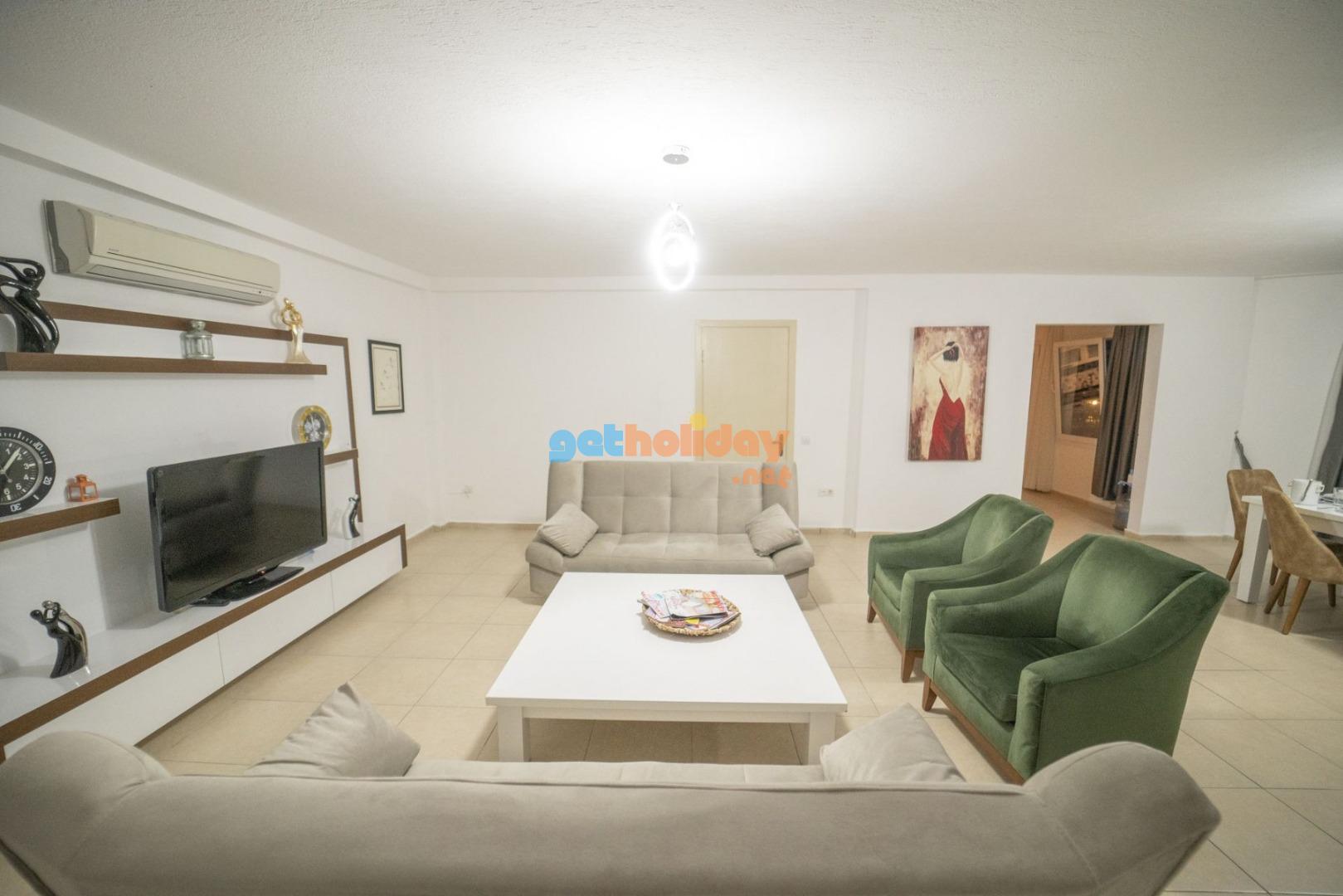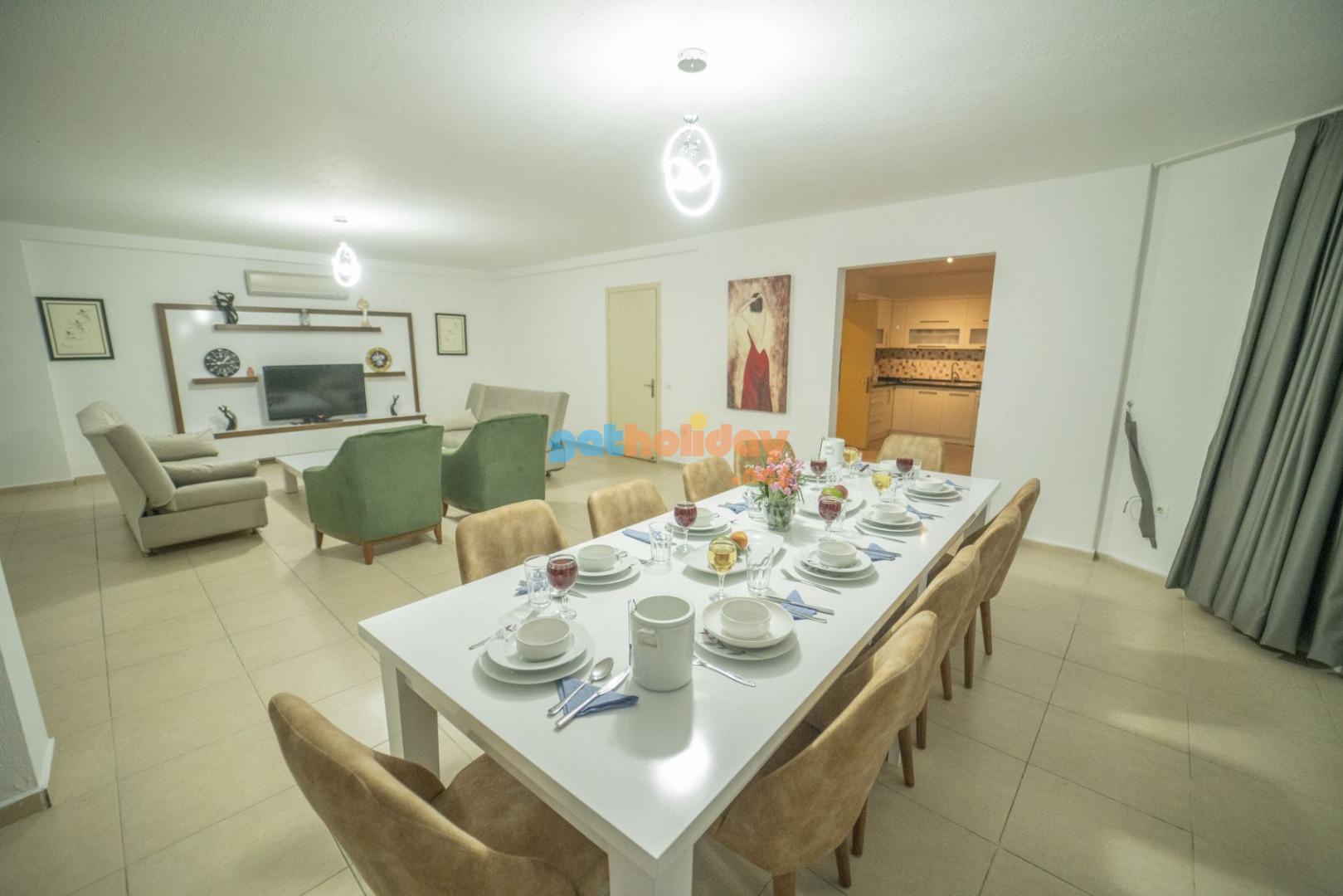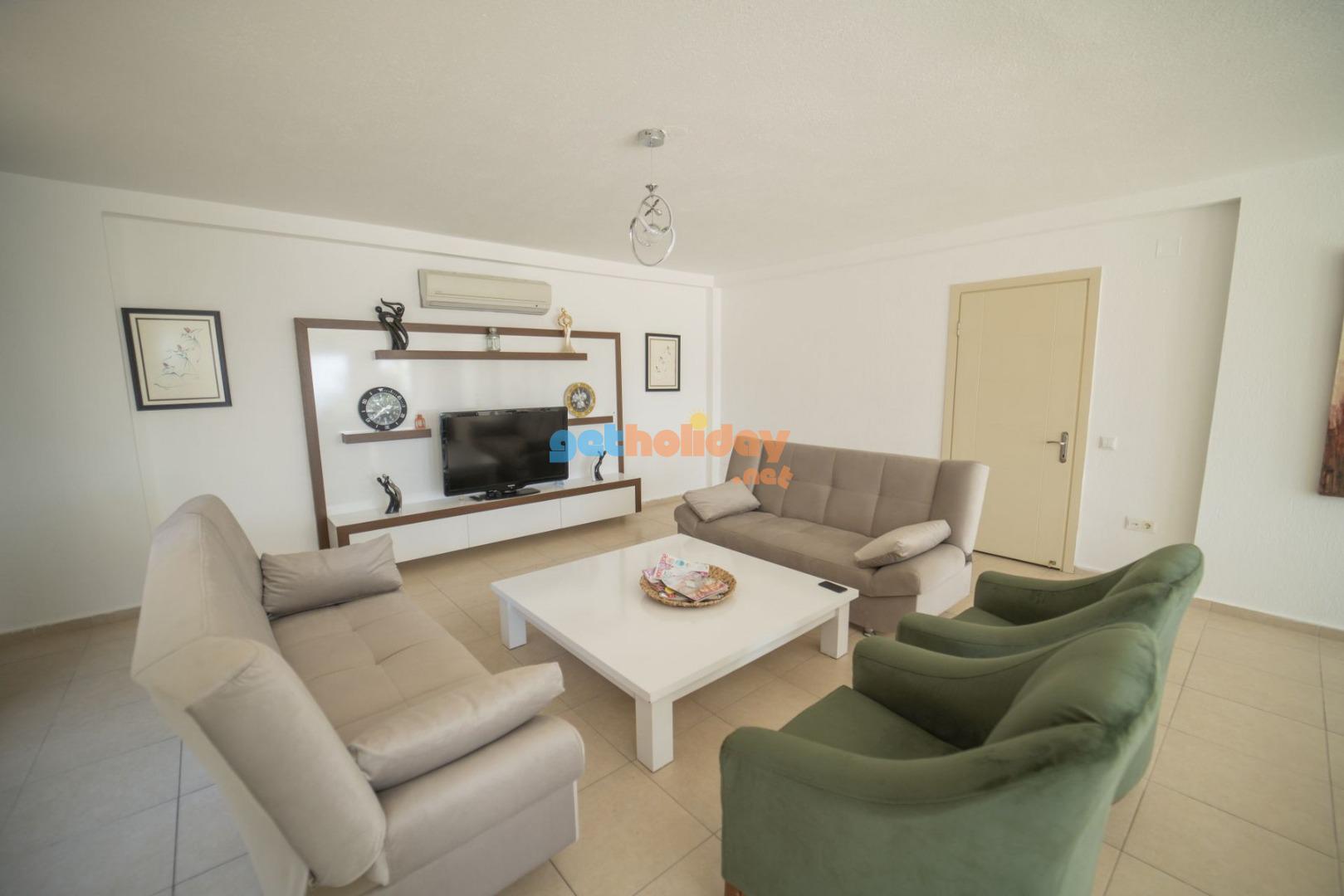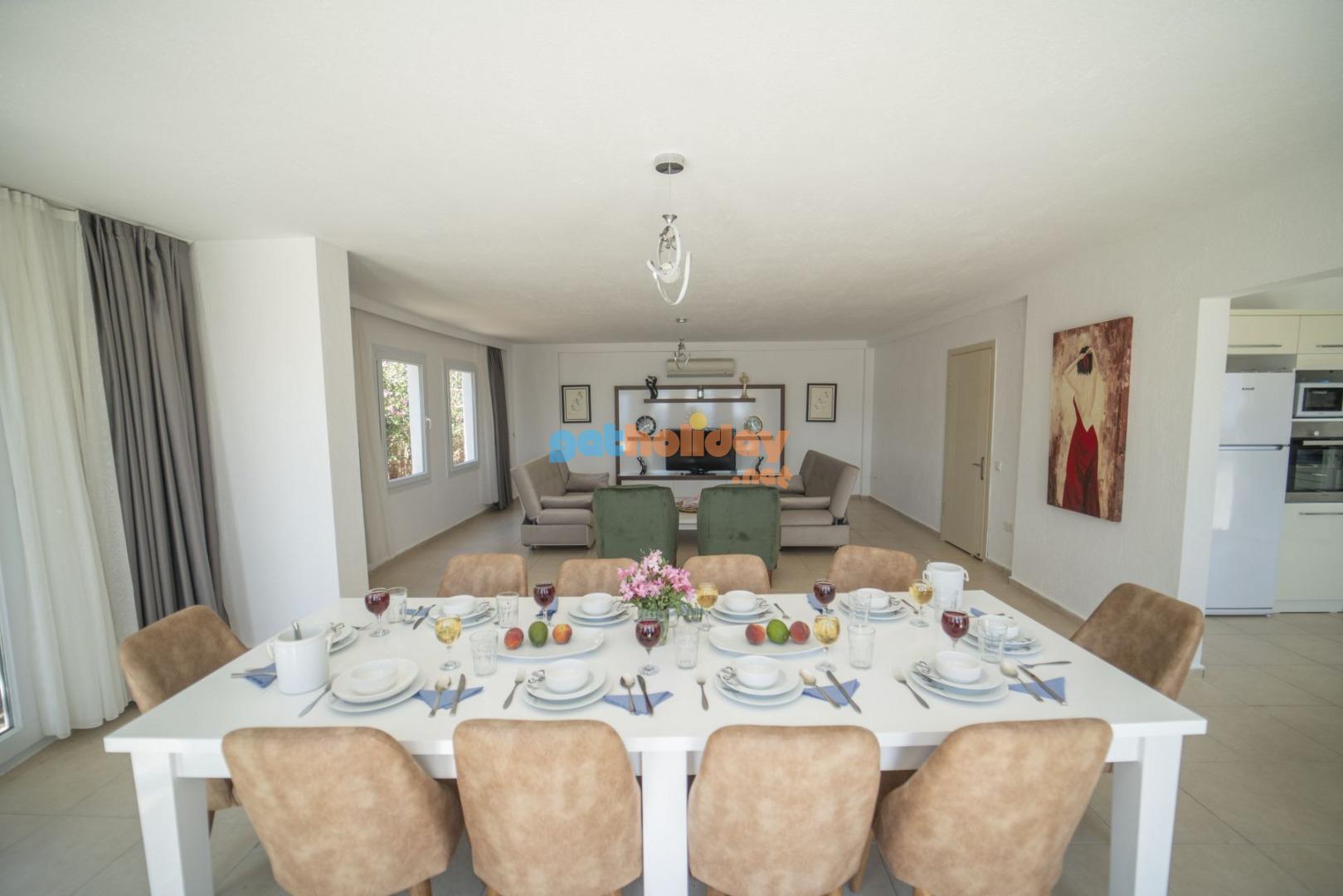 Salon: Salon içerisinde modern oturma grubu, uydu alıcı, LCD TV, internet için modem, klima, WC ve havuz terasına çıkış bulunmaktadır.