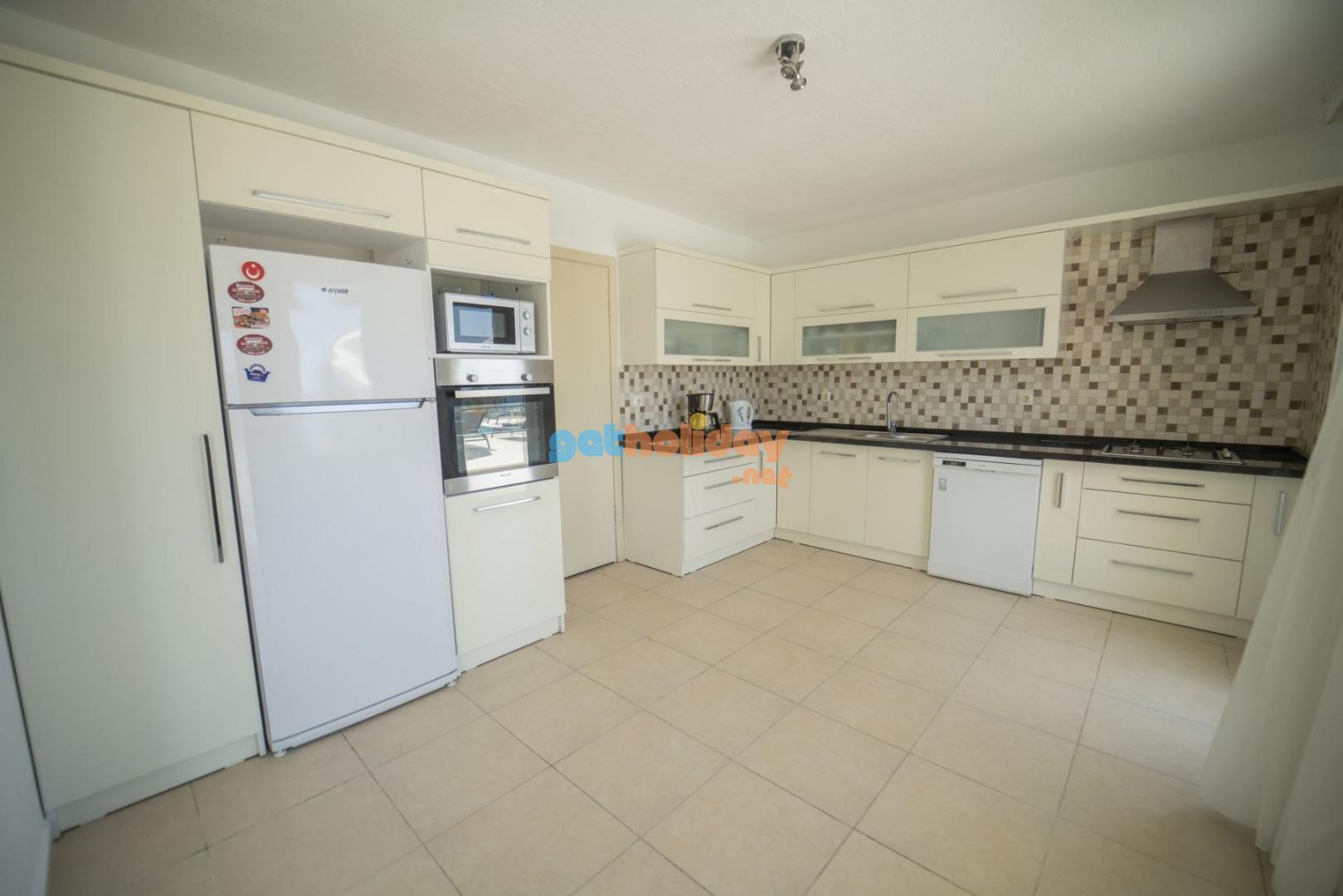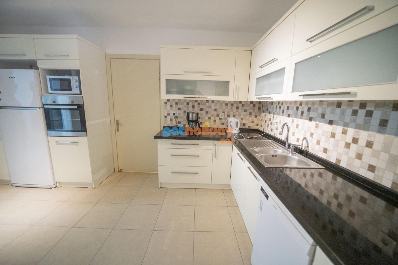 Mutfak: Amerikan mutfak içerisinde buzdolabı, bulaşık makinası, çamaşır makinası, yemek masası, mikrodalga fırın, 4’lü ocak, davlumbaz, fırın, elektrikli su ısıtıcı, yemek takımı, tava ve tencereler, çatal, bıçak takımı bulunmaktadır.