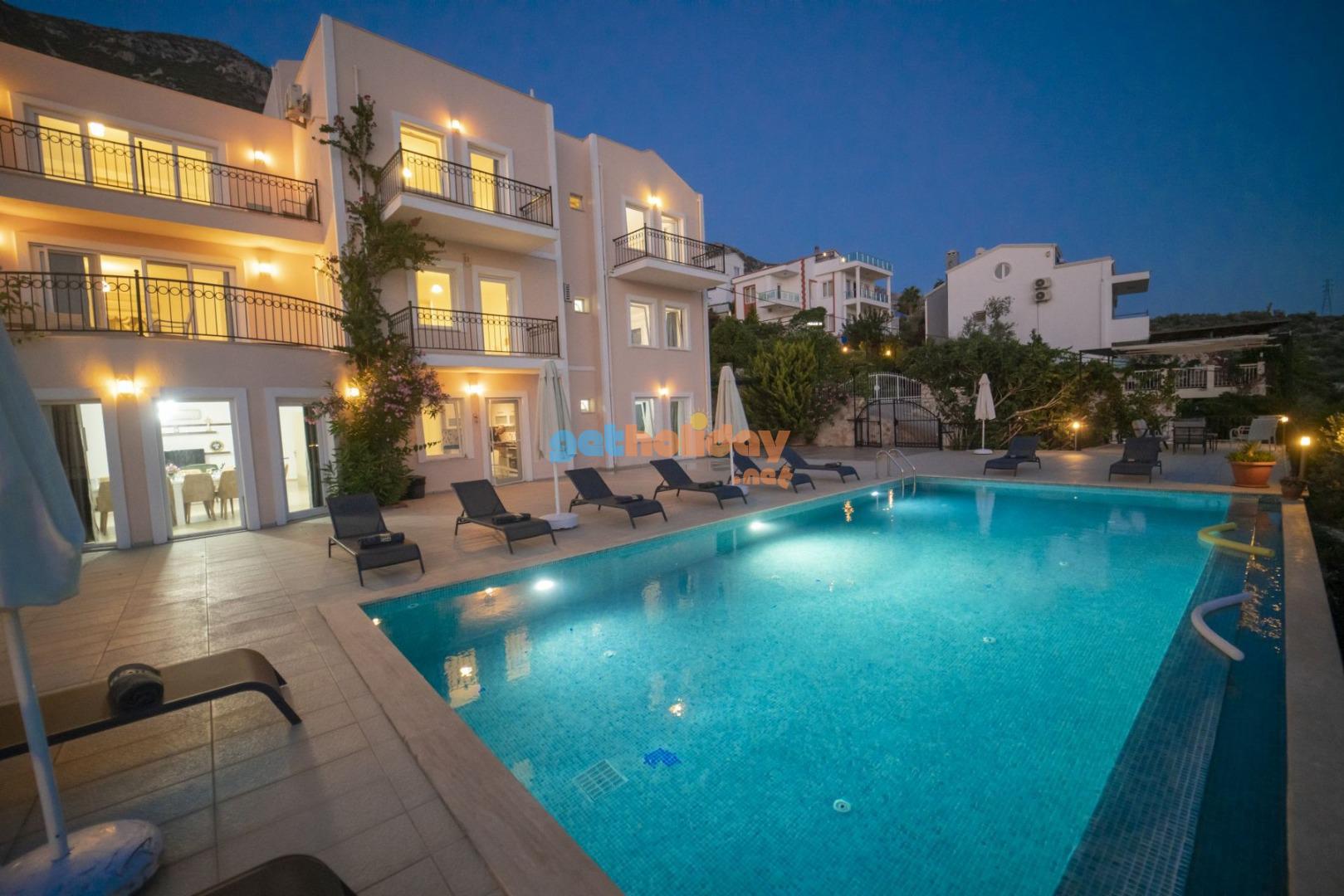 Kalkan Kızıltaş bölgesinde 7 yatak odalı 14 kişilik kapasiteye sahip olan villamız modern şık eşyalarla dizayn edilmiş olup muhteşem deniz manzarasına sahip olan villamız kalabalık aileler ve arkadaş gurupları için ideal seçeneklerden bir tanesi olup ailenizle ve arkadaşlarınızla tatil süresince keyifli vakit geçirebilirsiniz. Villa Abis kalkan merkeze ve plaja yakın konumda yer almaktadır.