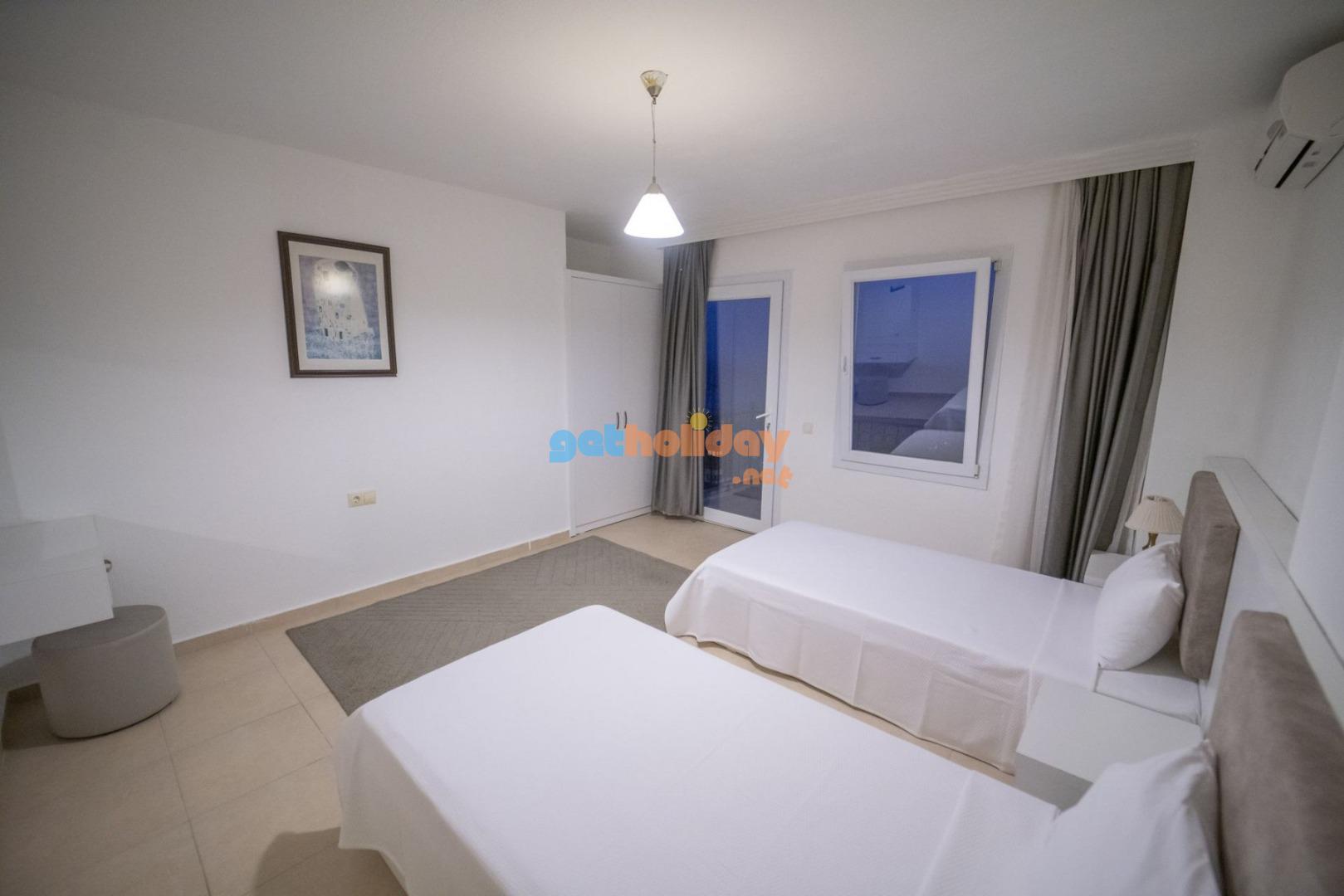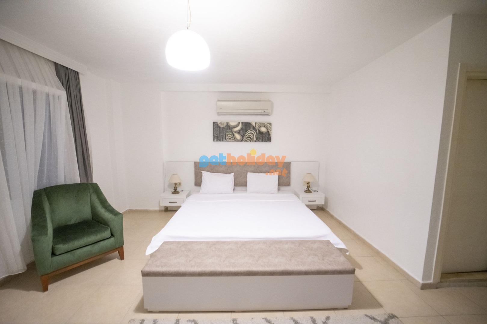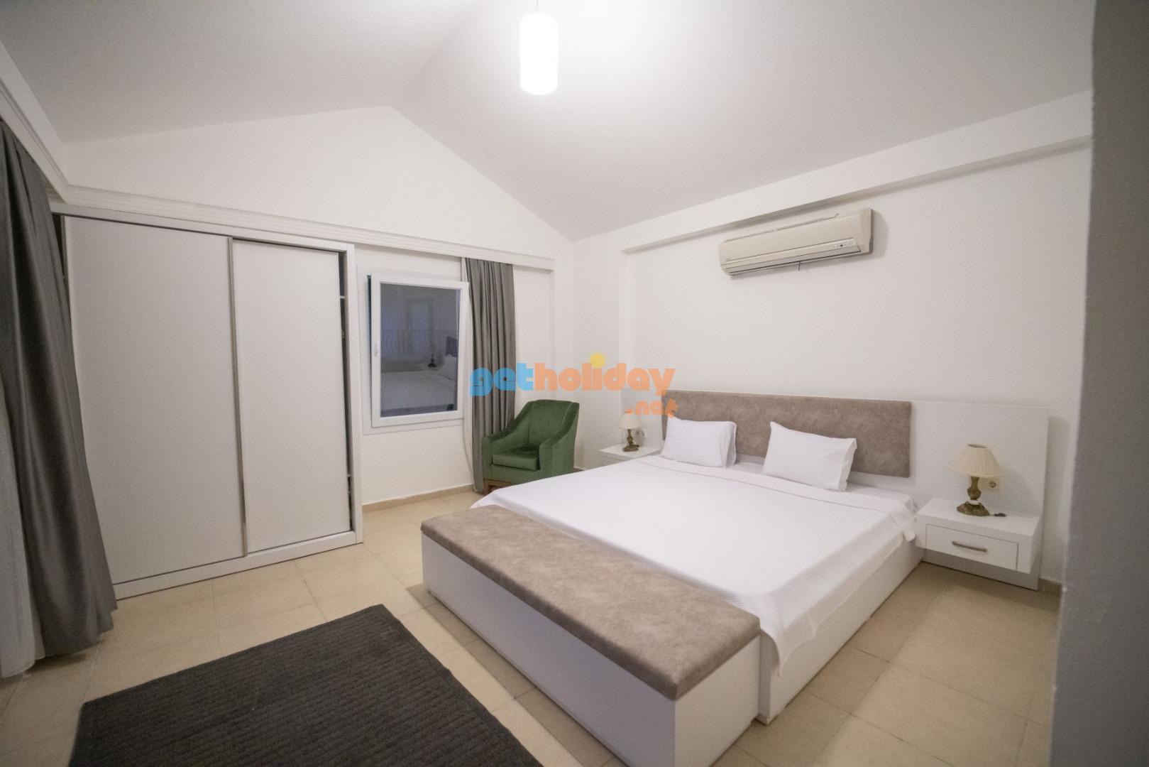 3. Yatak Odası: 1 adet çift kişilik yatak, , komodin, makyaj masası, elbise dolabı, klima, ve banyo tuvalet bulunmaktadır.