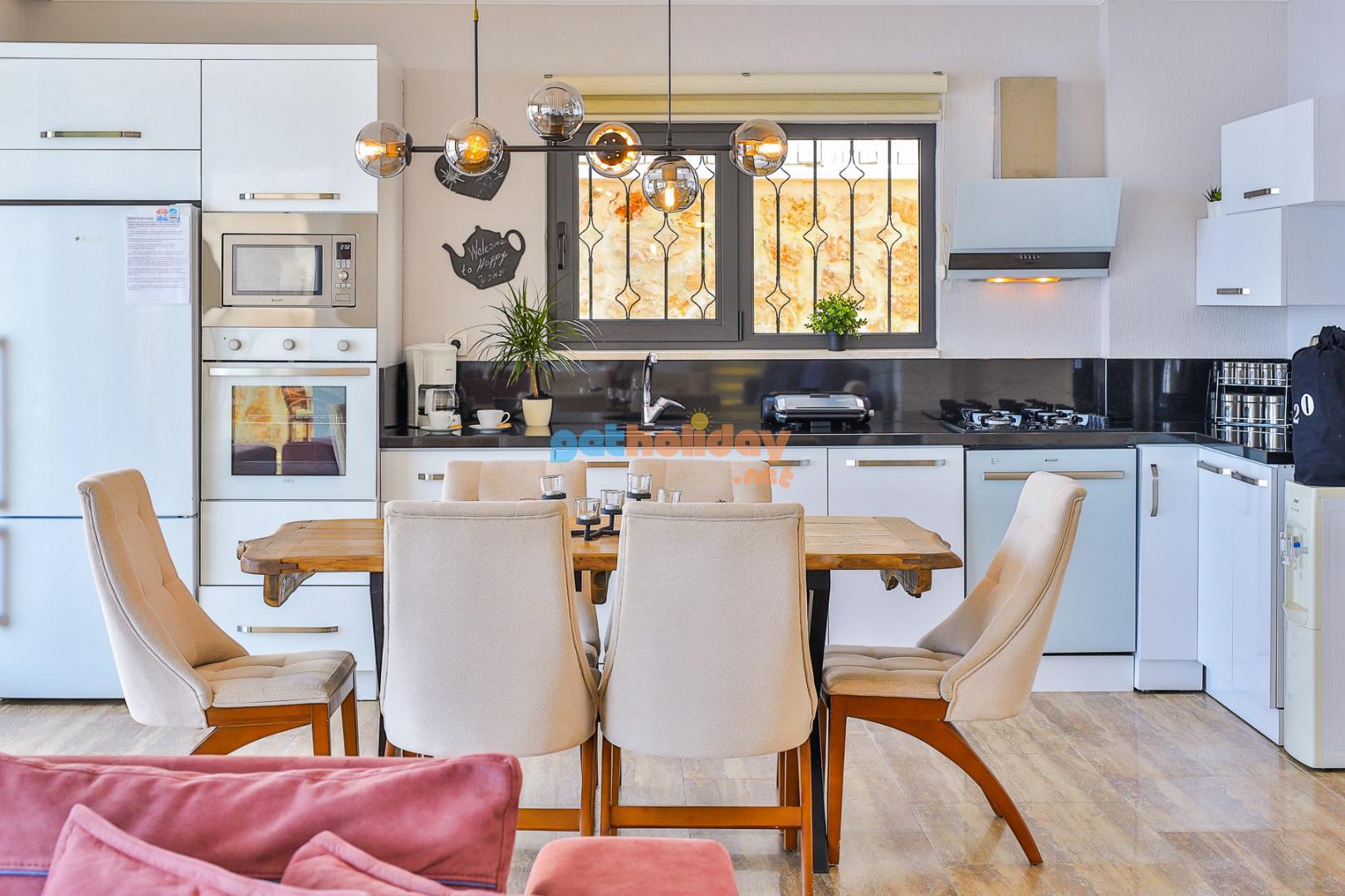 Mutfak: Amerikan mutfak içerisinde, buzdolabı, bulaşık makinesi, çamaşır makinesi, yemek masası, yemek takımı, ankastre fırın, mikrodalga fırın, tost makinesi, ankastre ocak, çaydanlık, su ısıtıcısı, tava, tencere takımı ve gerekli olan tüm mutfak gereçleri yer almaktadır.