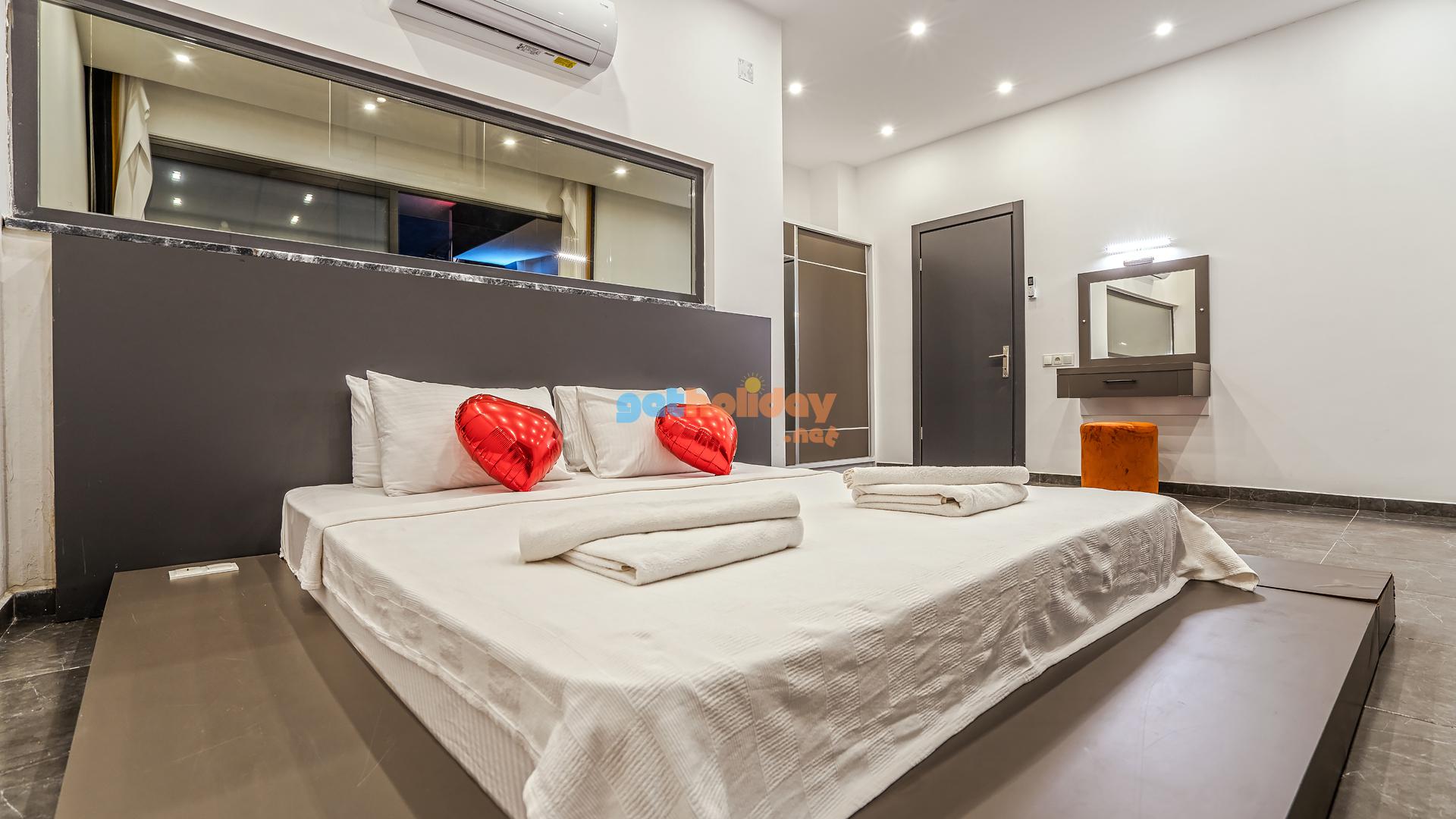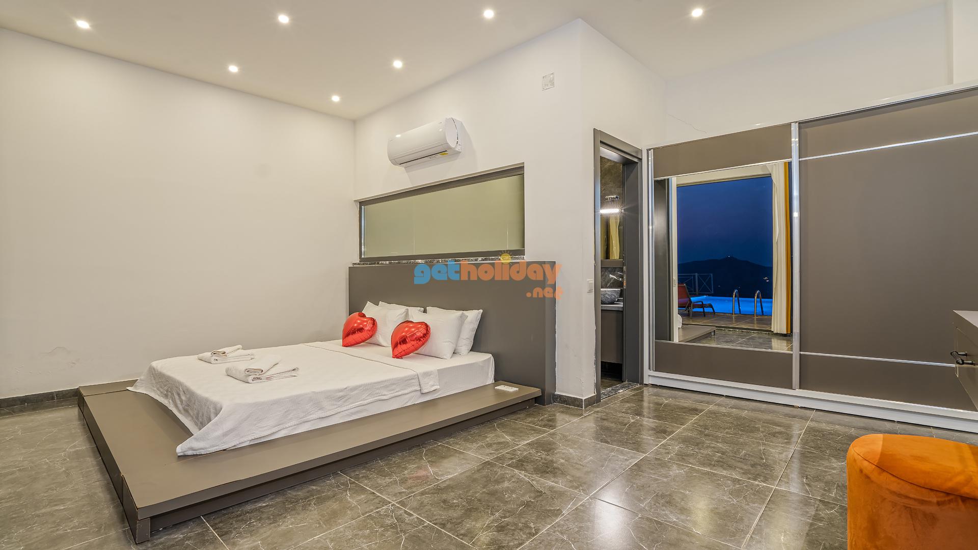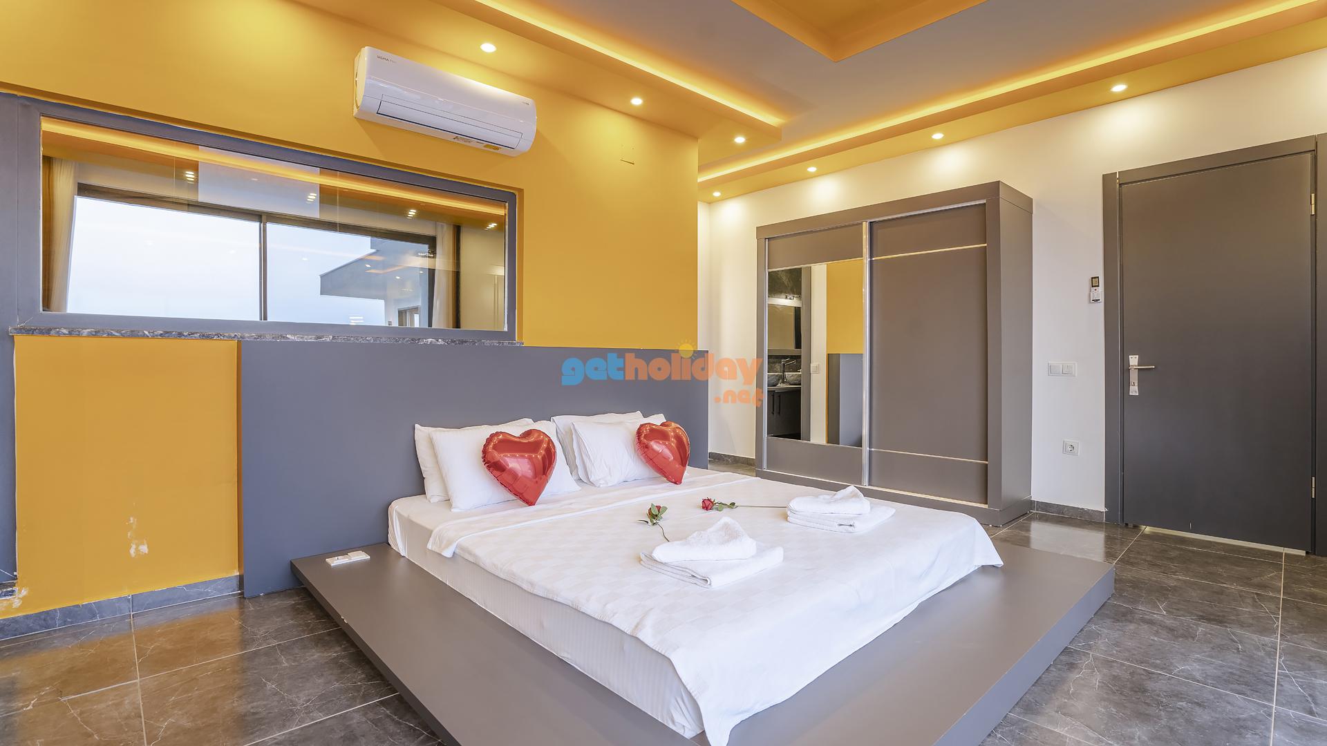 Birinci yatak odasında bir adet çift kişilik yatak, jakuzi ve banyo bulunmaktadır.