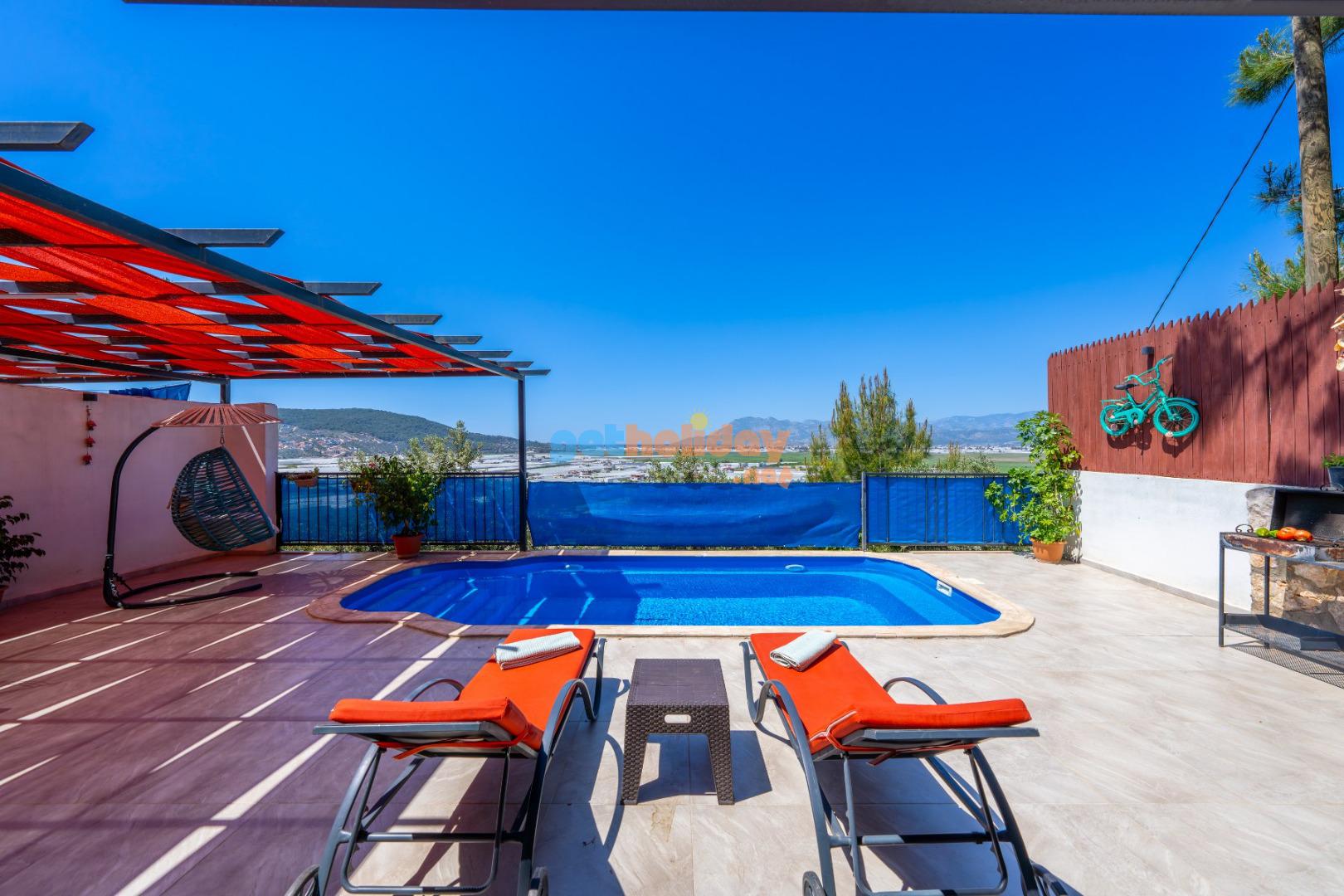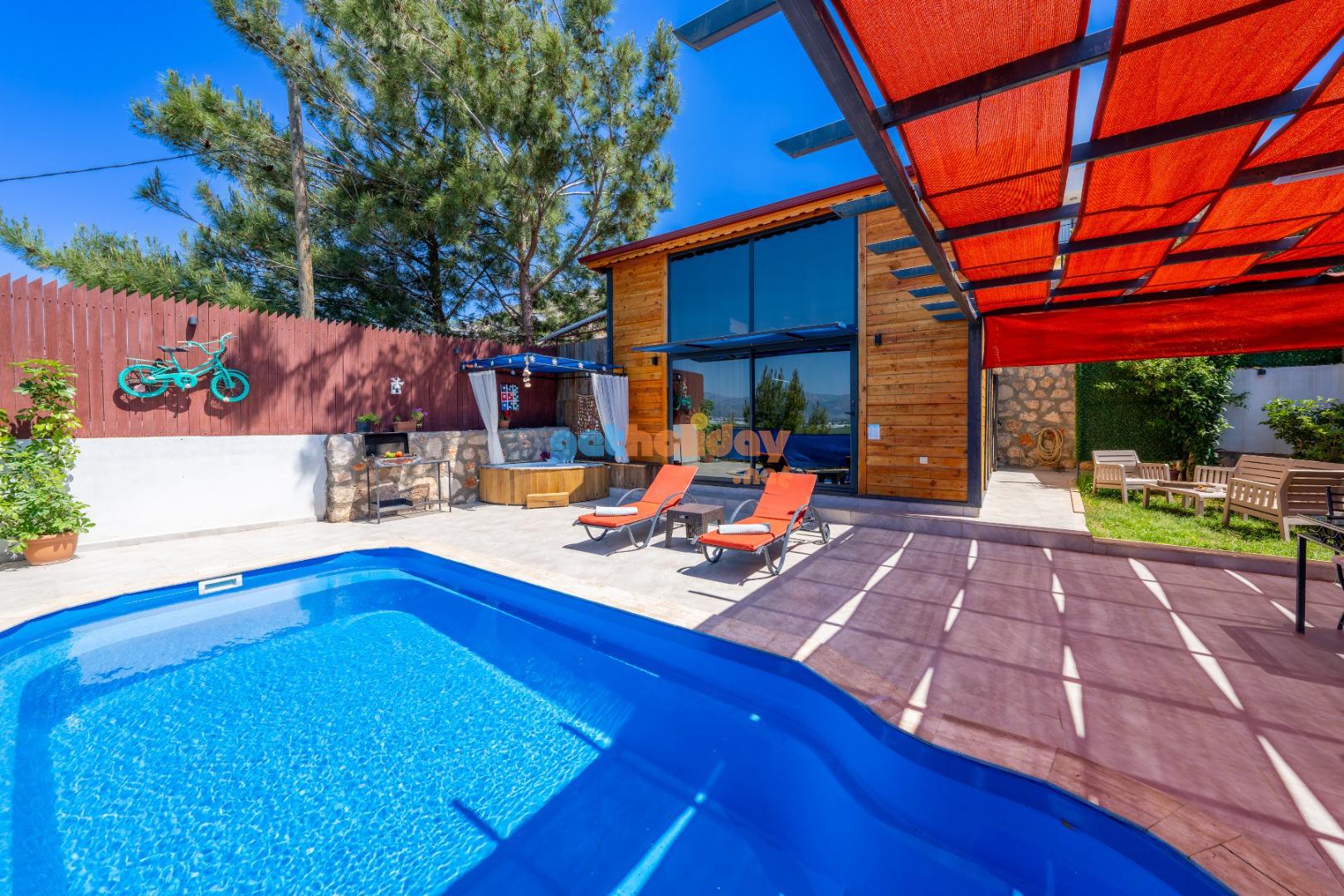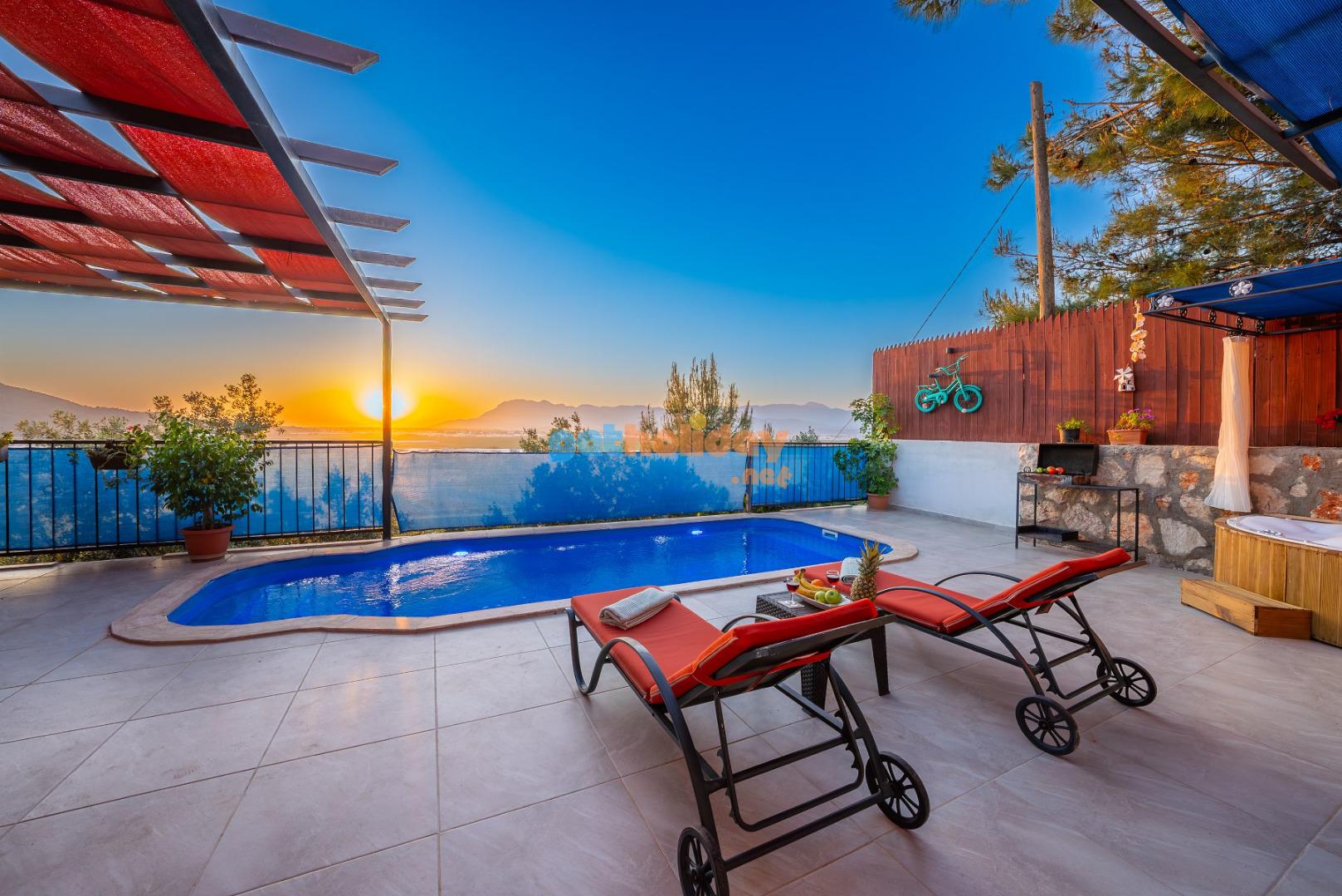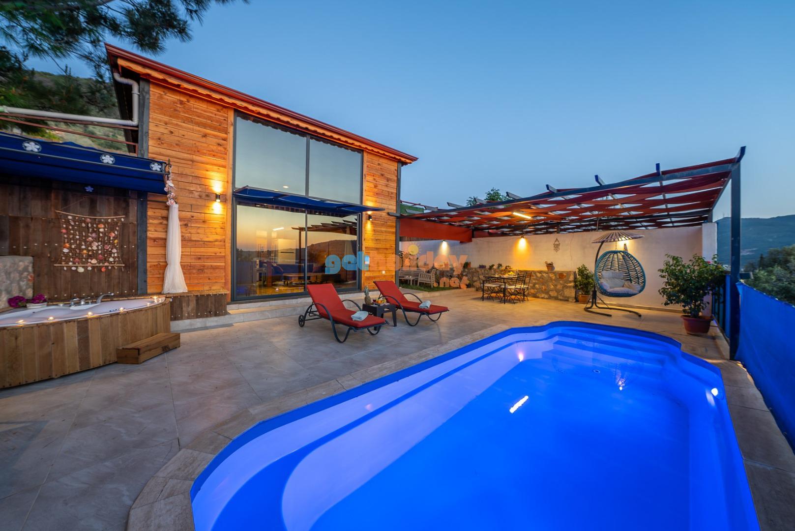 Kalkan Yeşilköy bölgesinde bulunan 1 yatak odalı 2 kişilik yeni yapılmış muhafazakar korunaklı villamız doğa manzarasına  sahiptir.