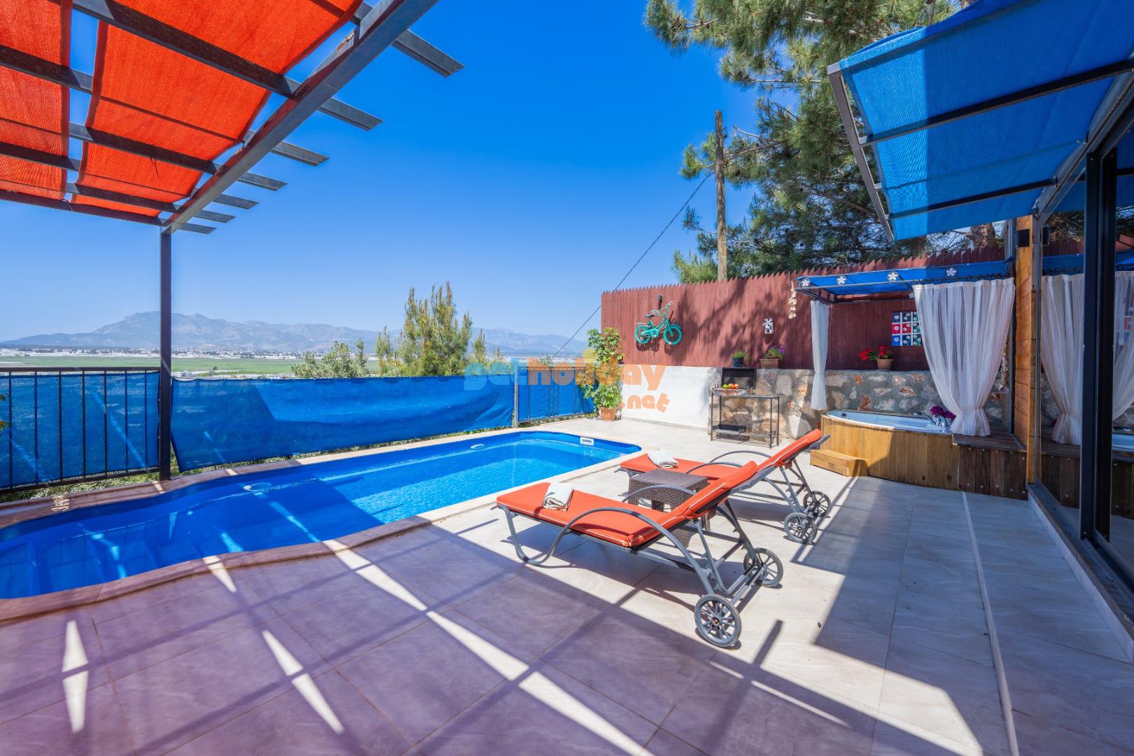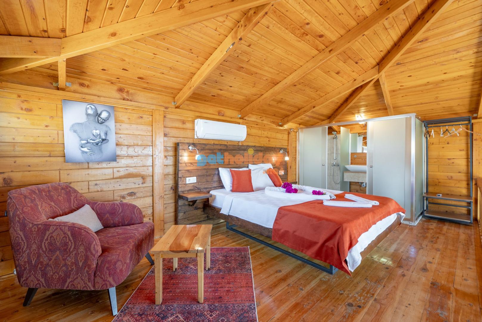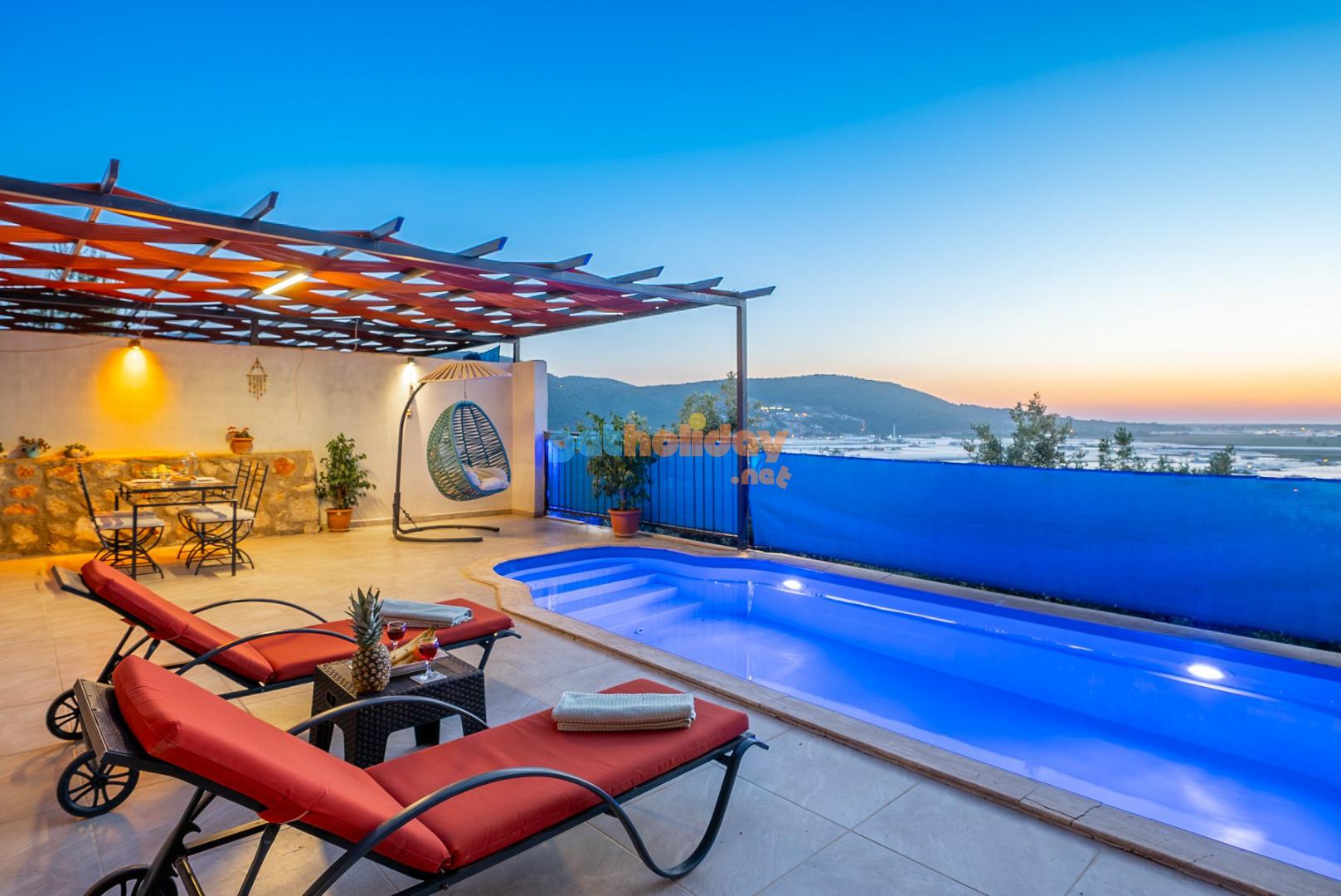 Kalkan Yeşilköy bölgesinde bulunan 1 yatak odalı 2 kişilik yeni yapılmış muhafazakar korunaklı villamız doğa manzarasına  sahiptir.