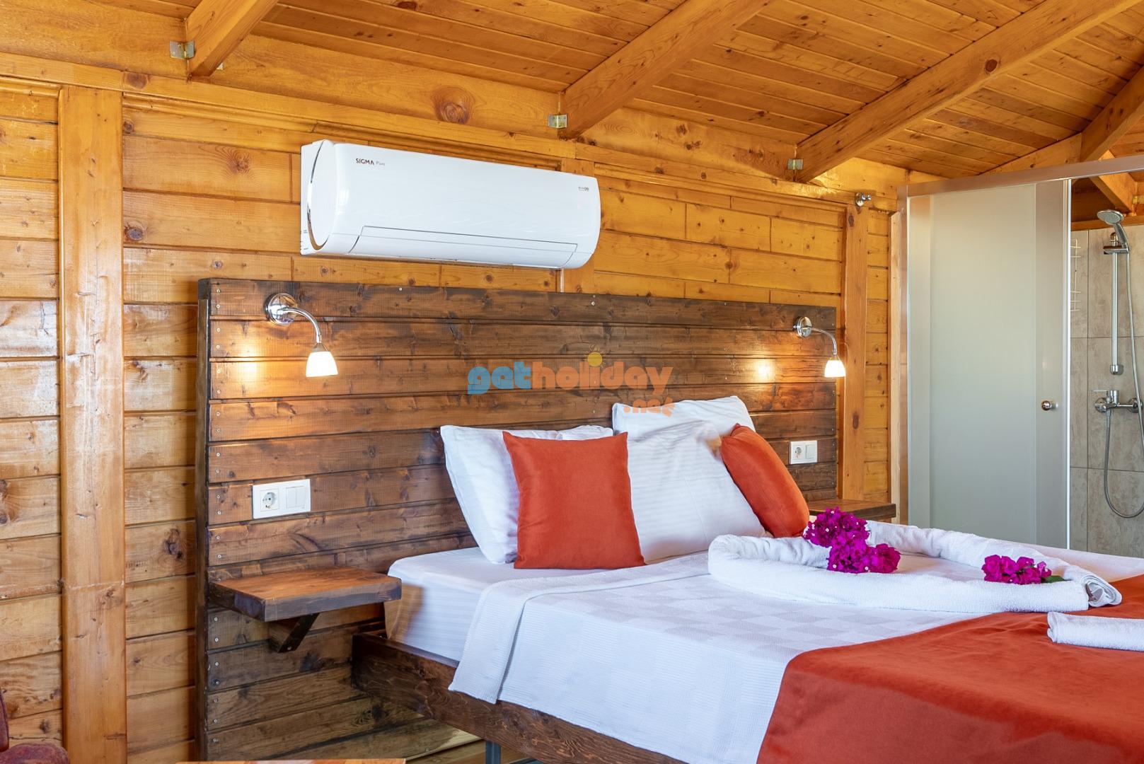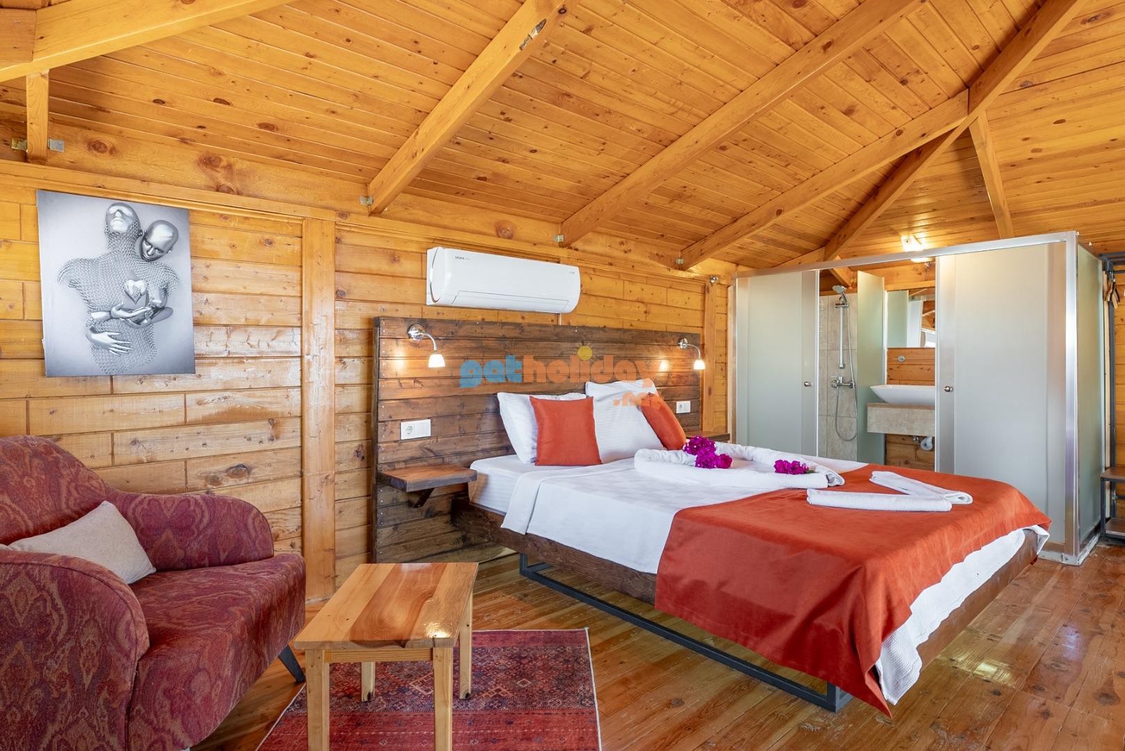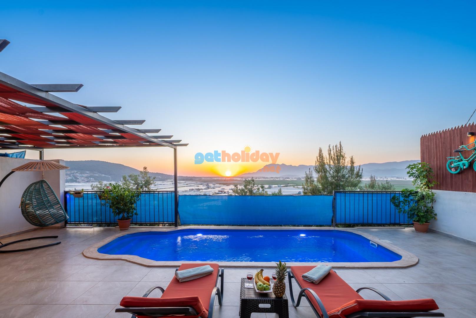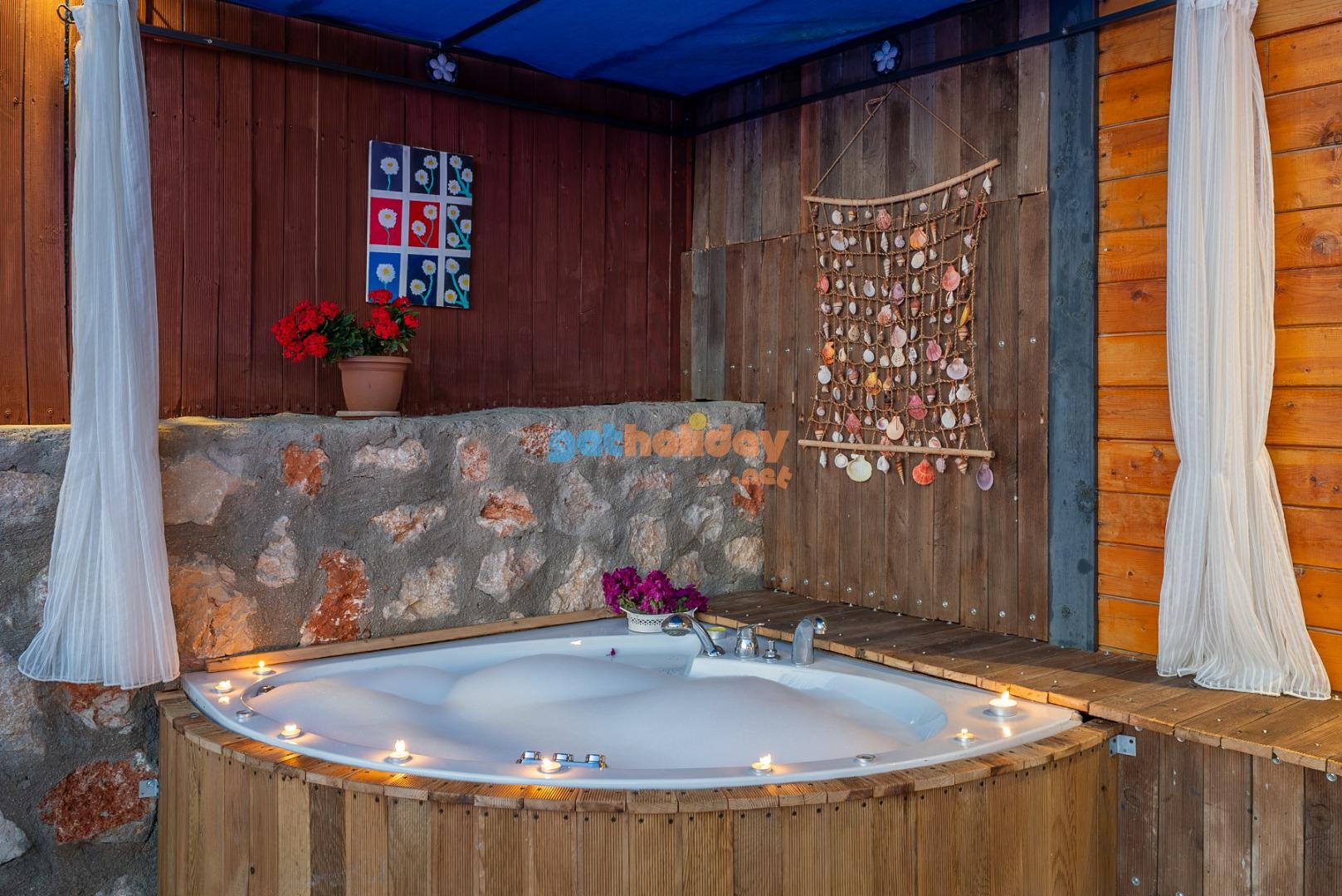 Kalkan Yeşilköy bölgesinde bulunan 1 yatak odalı 2 kişilik yeni yapılmış muhafazakar korunaklı villamız doğa manzarasına  sahiptir.