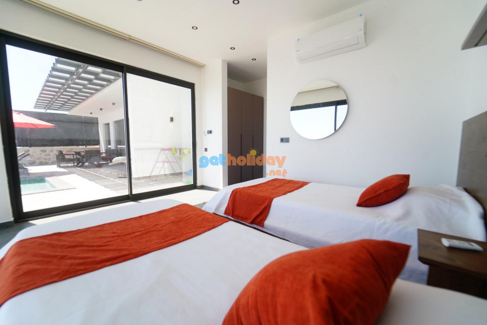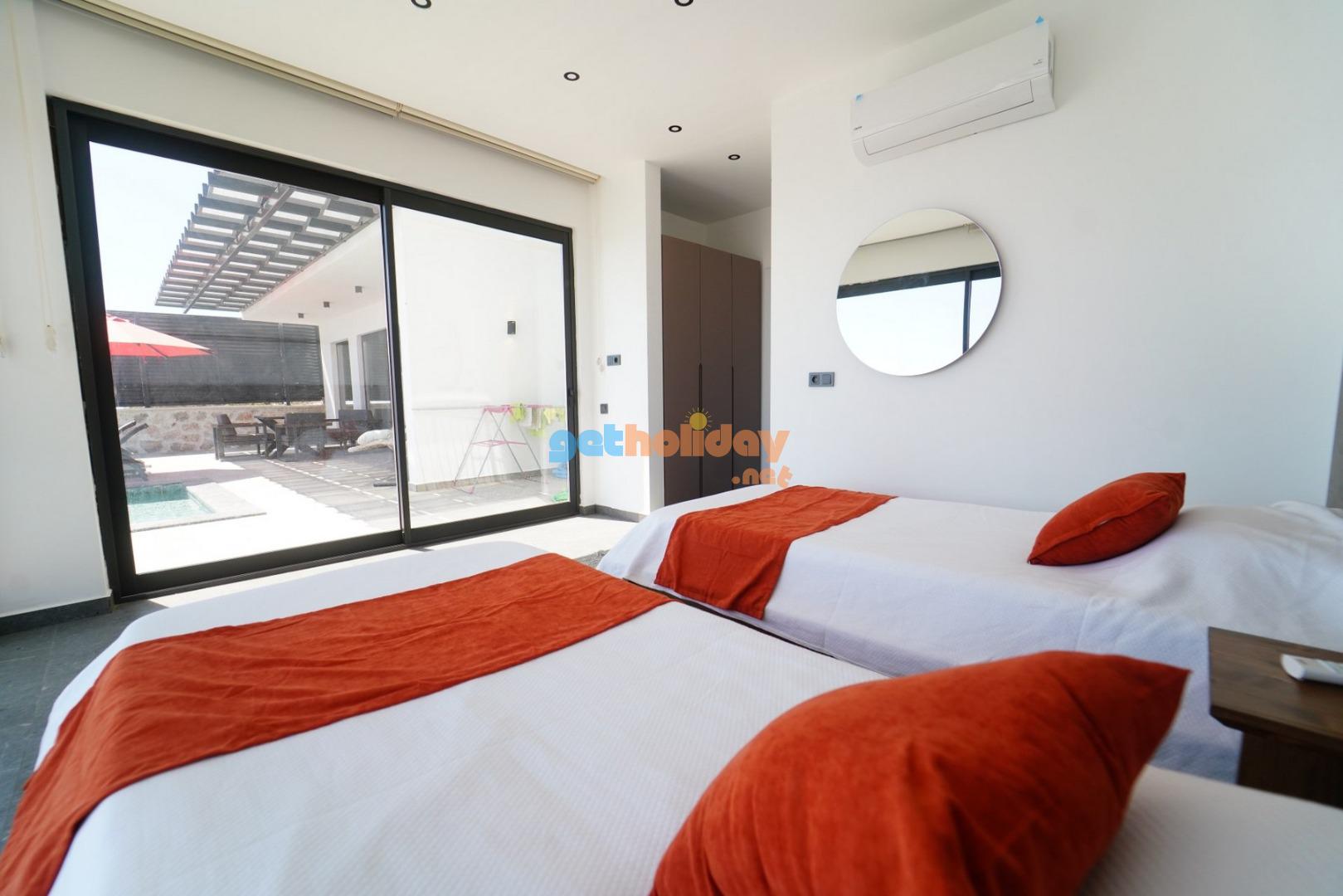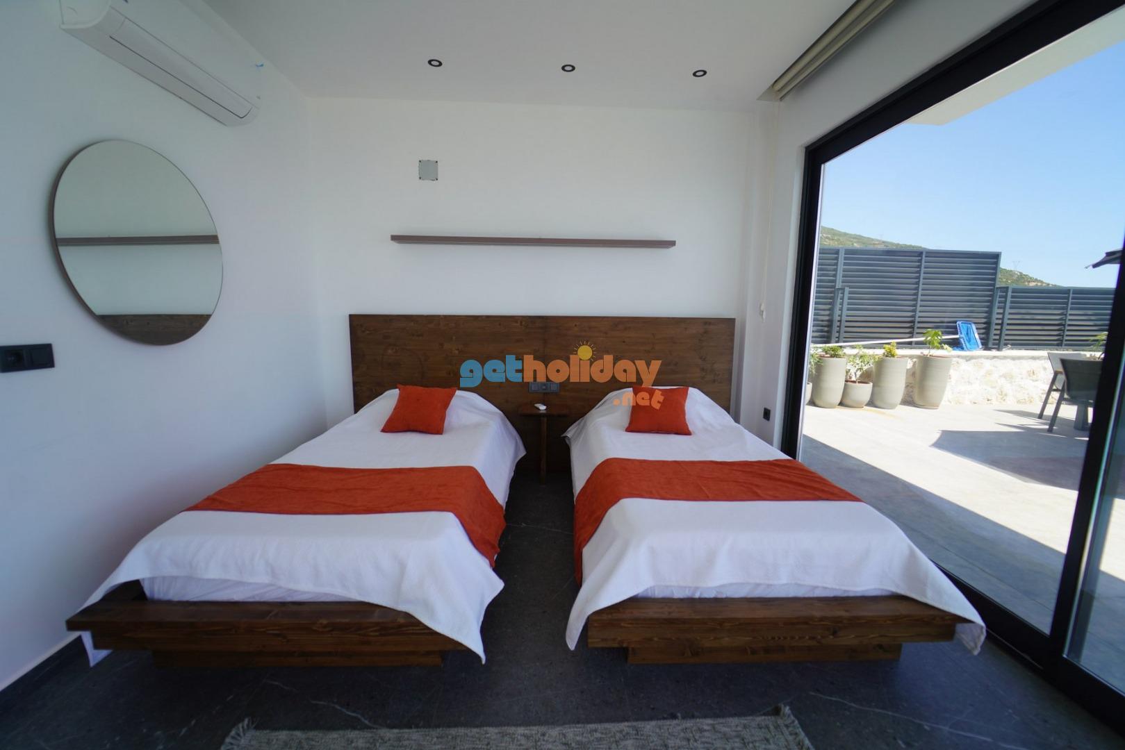 2.Yatak Odası: 2 adet tek kişilik yatak, klima, komodin, makyaj aynası, banyo ve tuvalet bulunmaktadır.