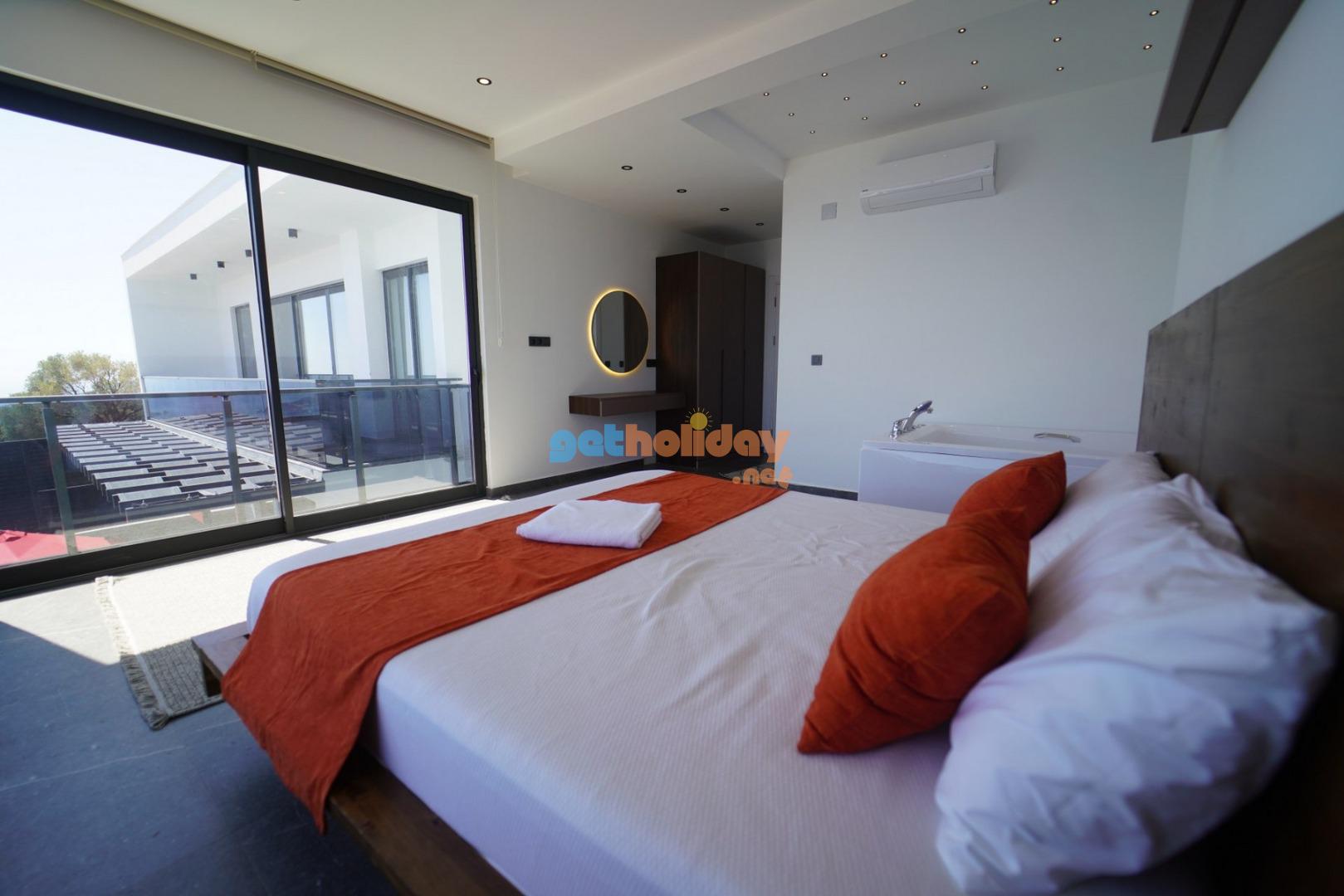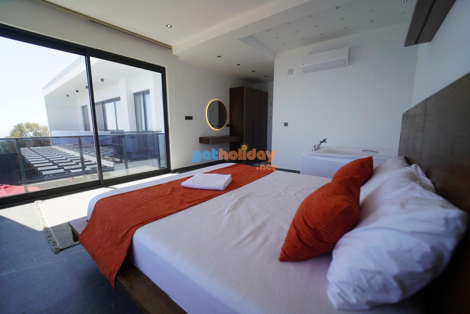 1.Yatak Odası: 1 adet çift kişilik yatak, klima, komodin, elbise dolabı, makyaj aynası, jakuzi, banyo ve tuvalet bulunmaktadır.