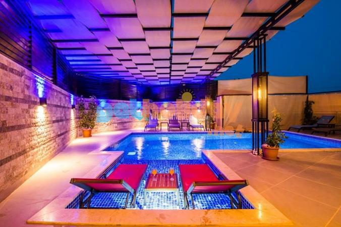 Kalkan Kördere mevkisinde konumlanan özel havuzlu, jakuzili ve muhafazakar Tatil Villası Bahanur dört yatak odalı olup sekiz kişi kapasitesine sahip. Özel korunaklı havuza sahip Villa Bahanur Kalkan Merkeze 4 km Plaja ise sadece 4,5 km uzaklıkta yer alıyor. Jakuzili Villamız günlük alışverişlerinizi kolaylıkla karşılayabileceğiniz bir mevkide yer almaktadır. Villamız da girişte ve çatı terasında olmak üzere iki tane salon ve mutfak bulunmaktadır. Daire olarak kullanılan yapısı Villa olarak tasarlanıp değiştirilmiştir. Villa Bahanurun havuz başındaki perdeler açılır kapanıl özelliğe sahip.