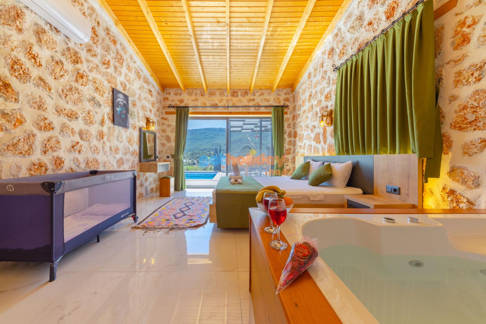 Villa Berceste, Kalkan Sarıbelen mevkisinde bulunan kiralık balayı villası, sessizliğin, huzurun hakim olduğu bir villada tatil isteyen çiftlerimiz için oldukça uygun bir seçenektir. Muhafazakar villalar ve balayı villaları kategorisinde yer alan villamız, 2 yatak odası ile 4 kişilik konaklama kapasitesine sahiptir. Havuzu korunaklı ve bahçesi dışarıdan görünmeyen Villa Berceste, mahremiyete önem veren çiftlerimiz için huzur dolu bir tatil fırsatı sunuyor. Ayrıca çift kişilik yatak odasında misafirlerimizin rahatlaması için 2 kişilik jakuzi konforu da sağlamaktadır.