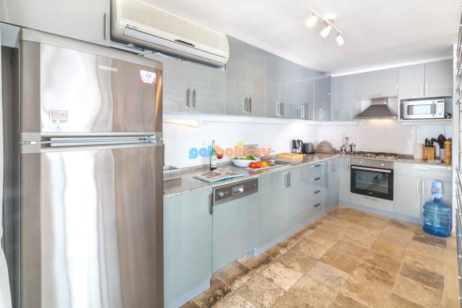 Mutfak : Tam donanımlı modern Amerikan mutfak içerisinde buzdolabı, bulaşık makinesi, fırın, ocak, mikrodalga fırın, elektrikli su ısıtıcı, yemek masası, yemek takımları, çatal ve bıçak takımları, tencere ve tava takımları ve bardaklar bulunmaktadır
