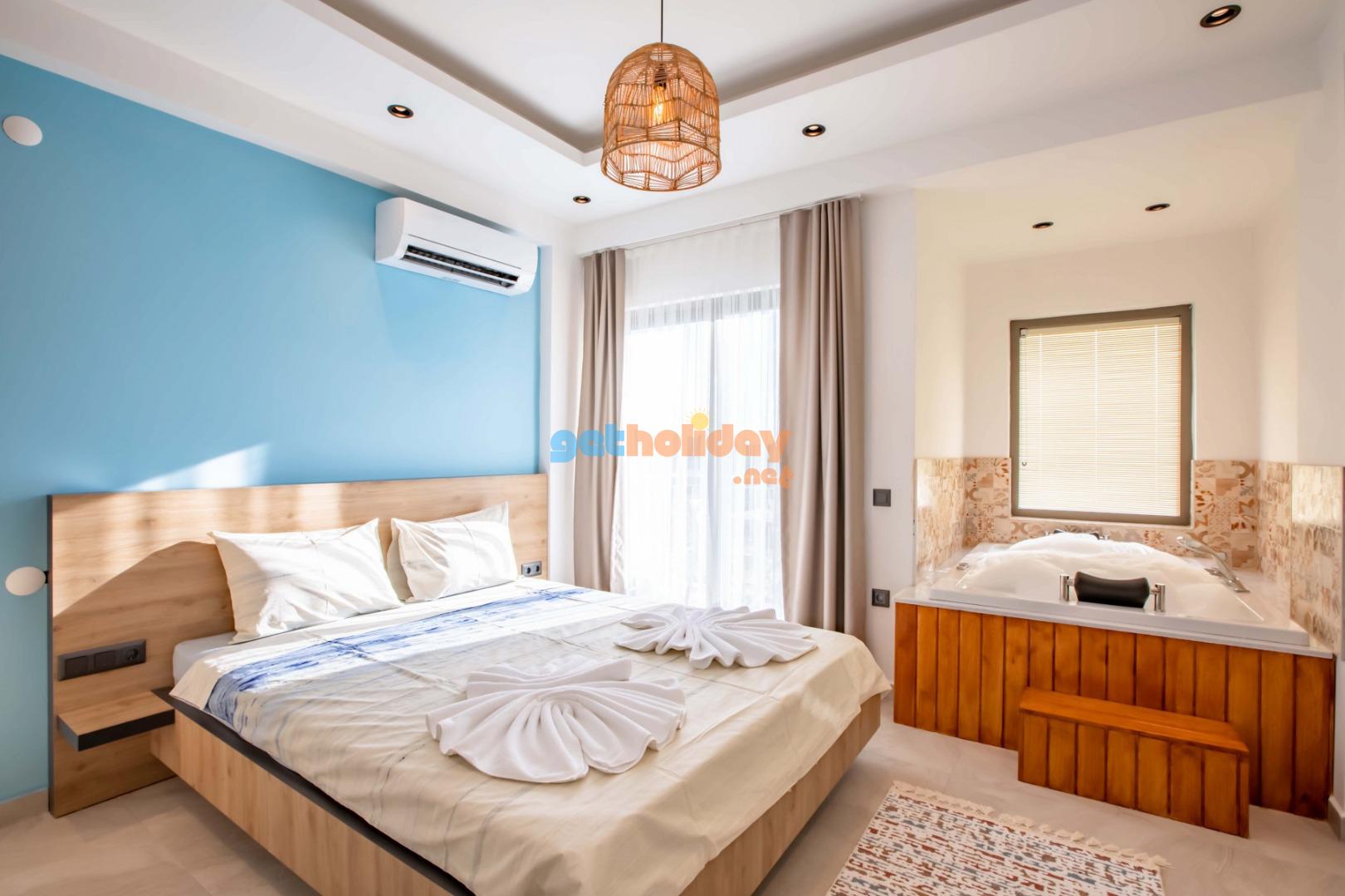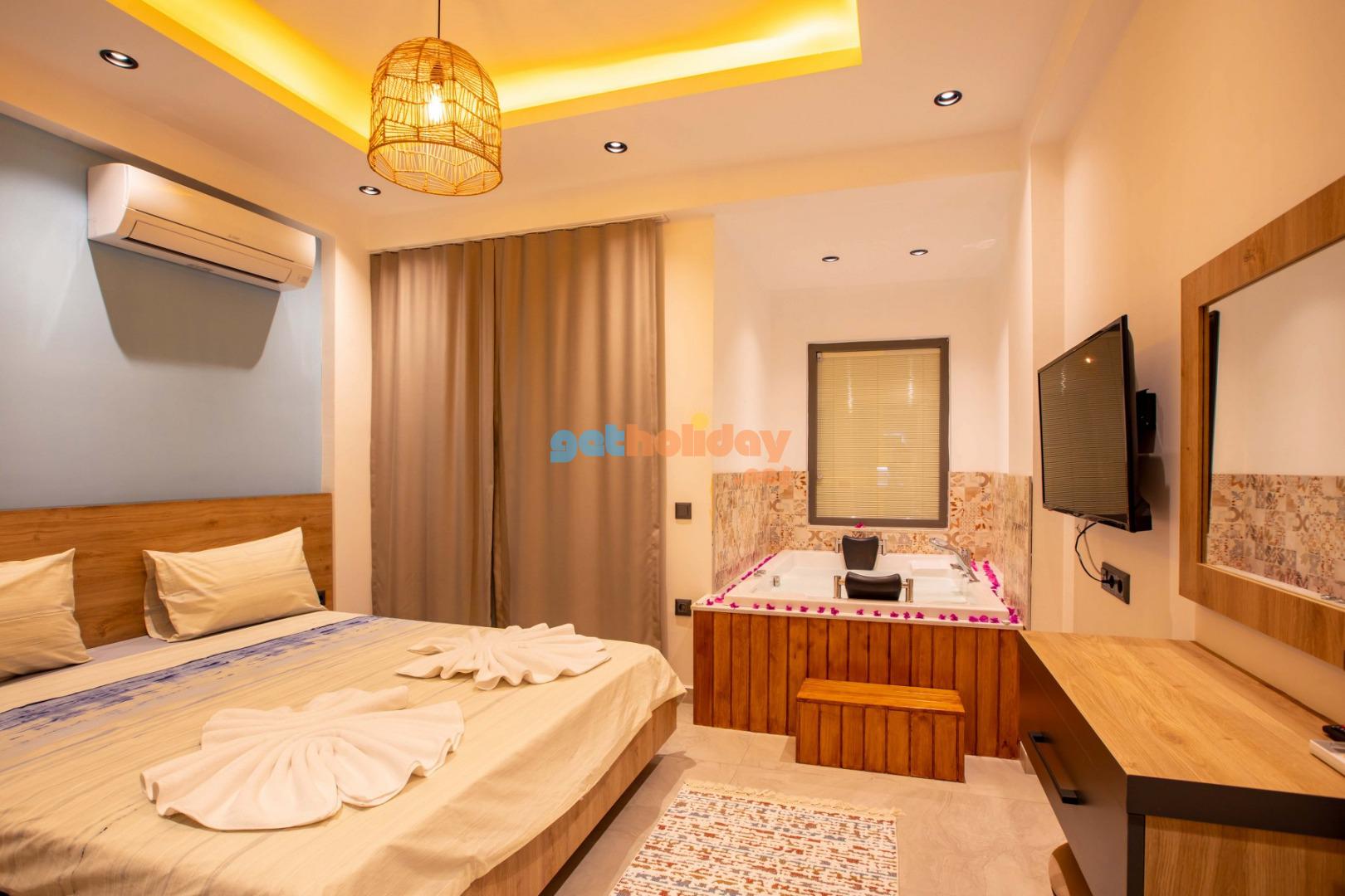 1. Yatak Odası : 1 adet çift kişilik yatak, elbise dolabı, komodin, makyaj masası, klima, jakuzi, banyo, tuvalet ve balkon bulunmaktadır.