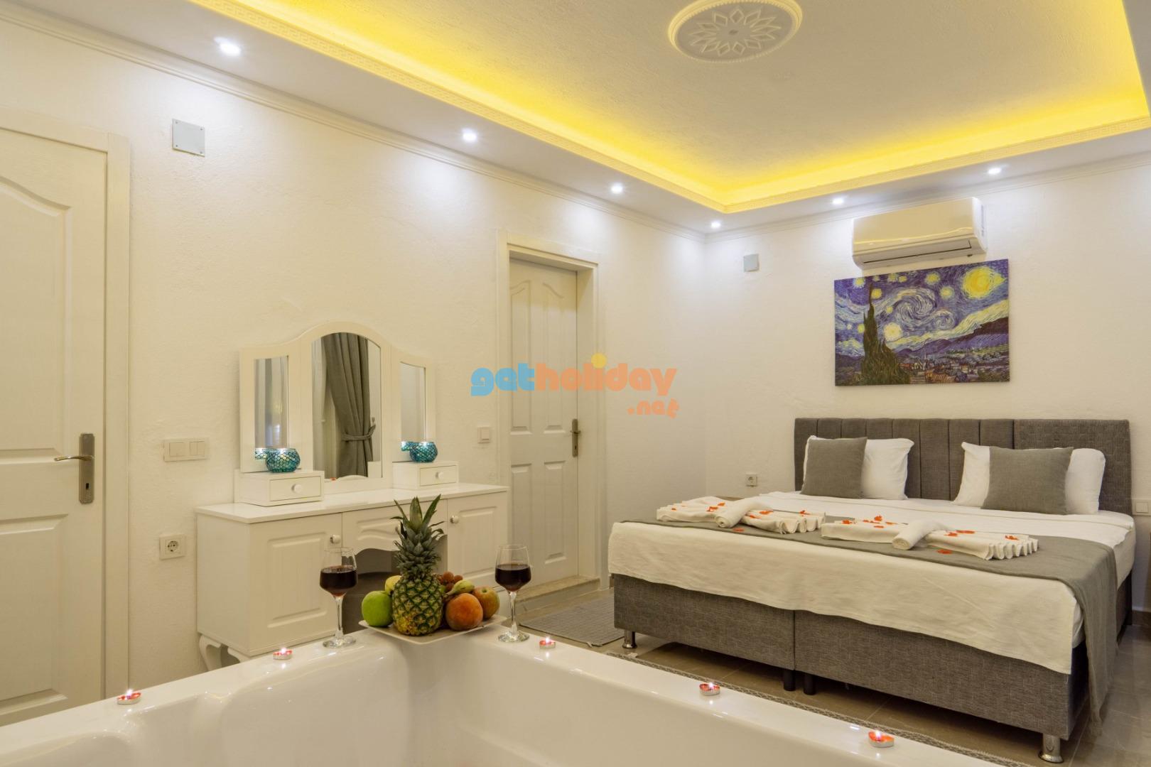 Kalkan/İslamlar mevkiinde konumlandırılmış olan 2 yatak odasıyla 4 kişilik konaklama kapasitesine sahip doğayla iç içe konumlandırılmış tatil villalarımız arasında yer almaktadır.