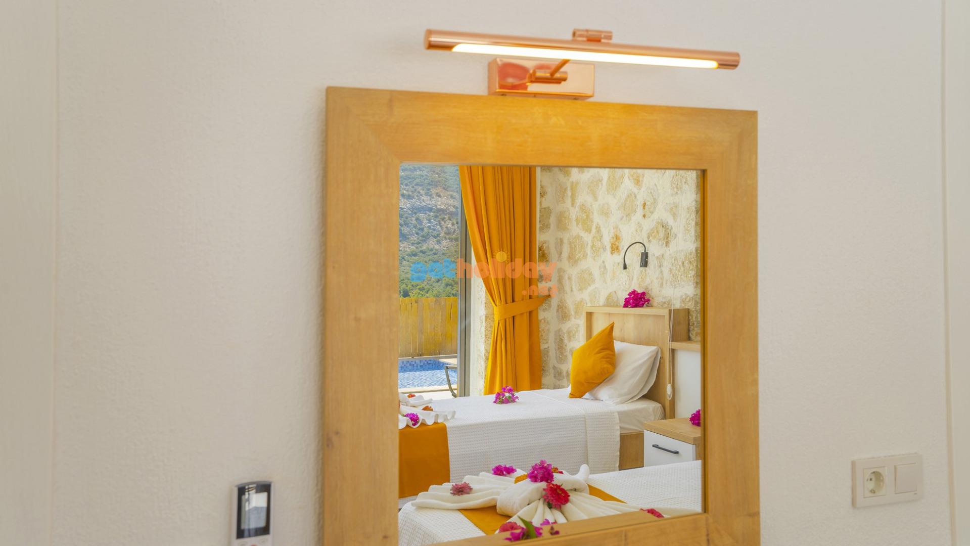 1.Yatak Odası: 2 adet tek kişilik yatak, klima, komodin, makyaj masası, elbise dolabı, banyo ve tuvalet bulunmaktadır.
