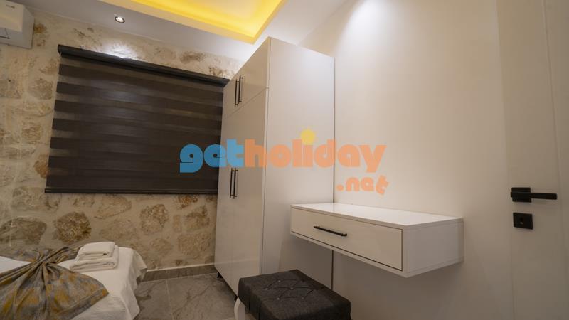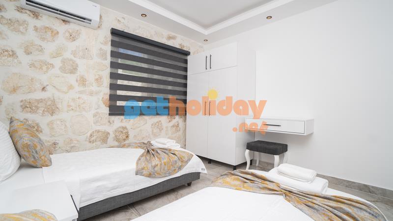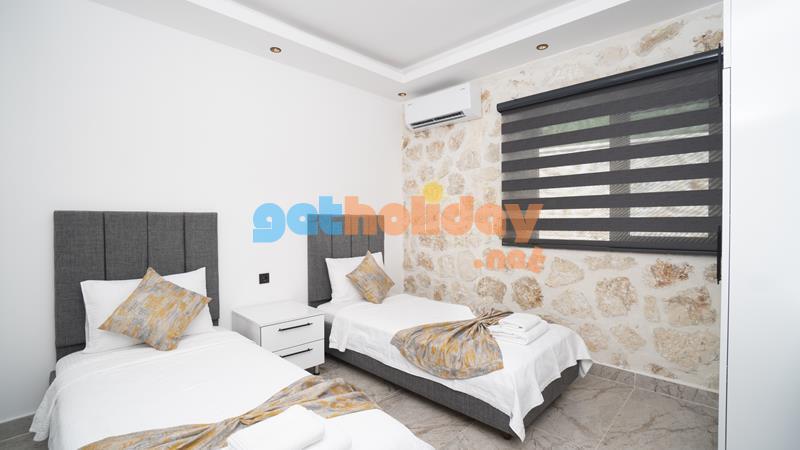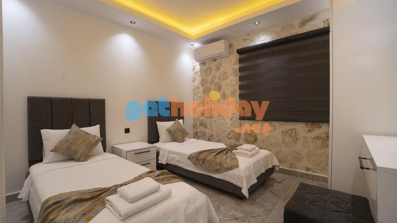 Yatak odası 2:  2 adet tek kişilik yatak, komodin, makyaj masası, elbise dolabı, klima, banyo ve tuvalet bulunmaktadır.