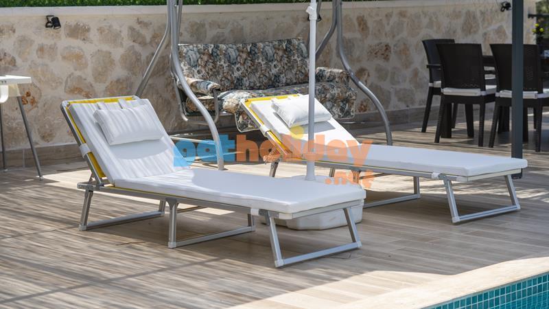 Boy: 10 mt   En: 4 mt  Derinlik: 155 cm olan havuzu bulunmaktadır. Havuz terasında şemsiye, şezlong, masa tenisi, mangal ve yemek masası bulunmaktadır.