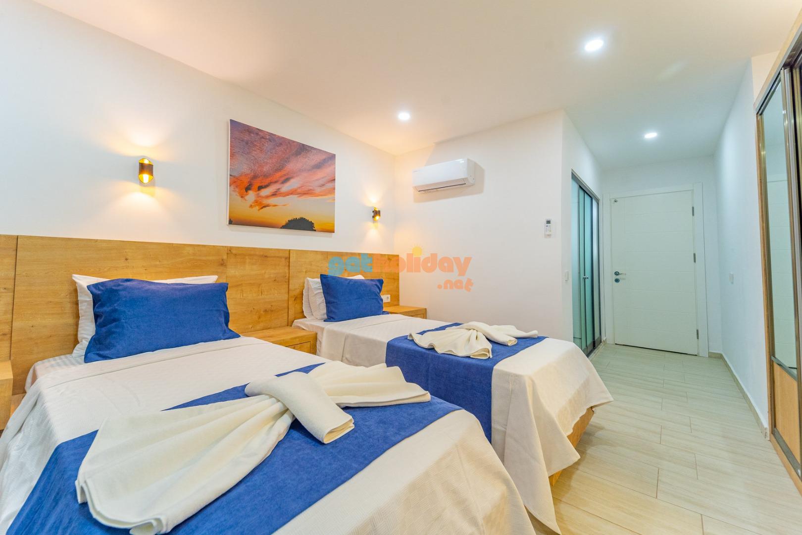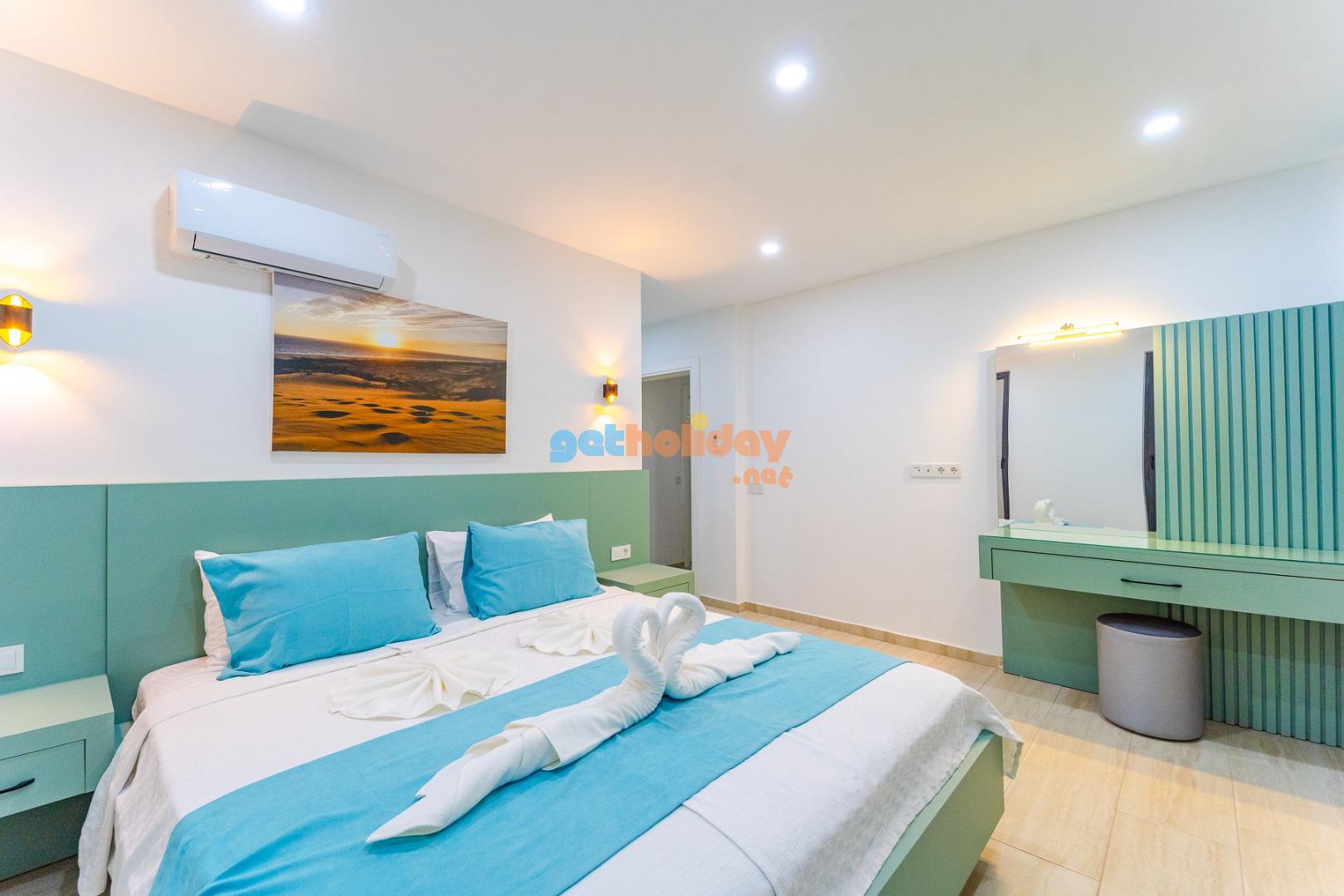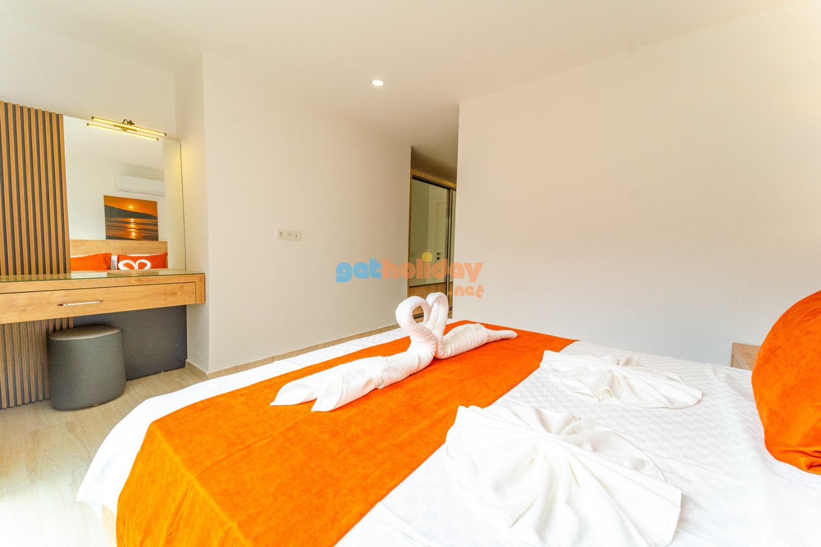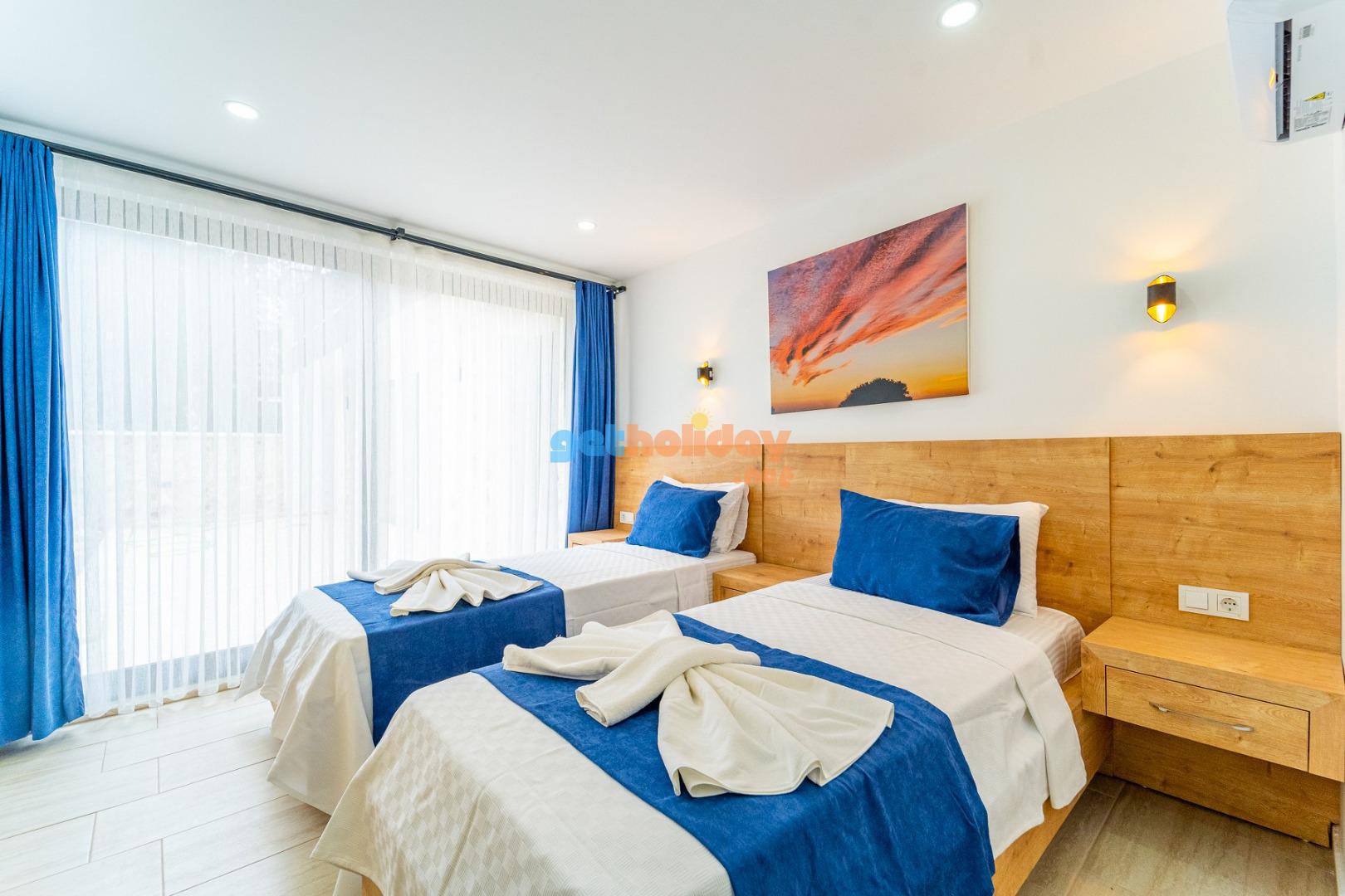 Villamızda 3 yatak odası ve 3 banyo bulunmaktadır. Tüm odalar klimalı ve suite özelliklidir. Ayrıca 2 yatak odasında  2 duble 1 yatak odasında single  lüks yataklar, konforlu yastıklar ve  mobilyaları ile tatiliniz süresince sizlere rahat bir uyku deneyimi sunmaktadır.