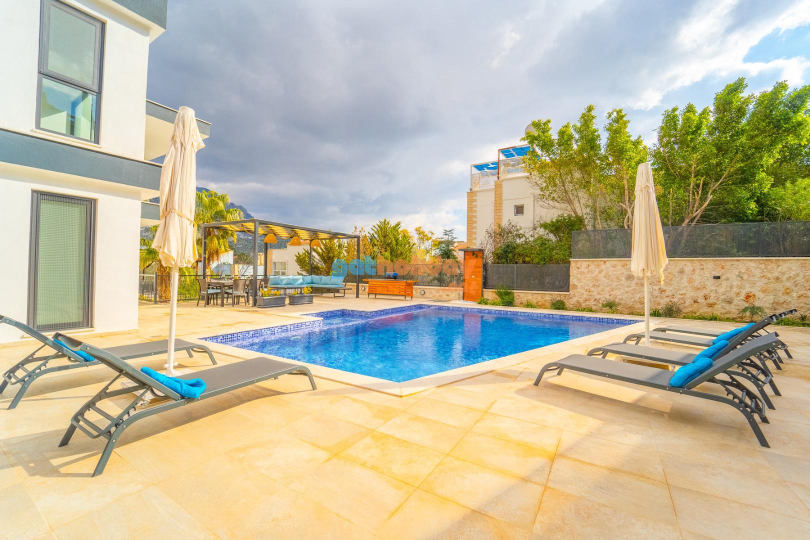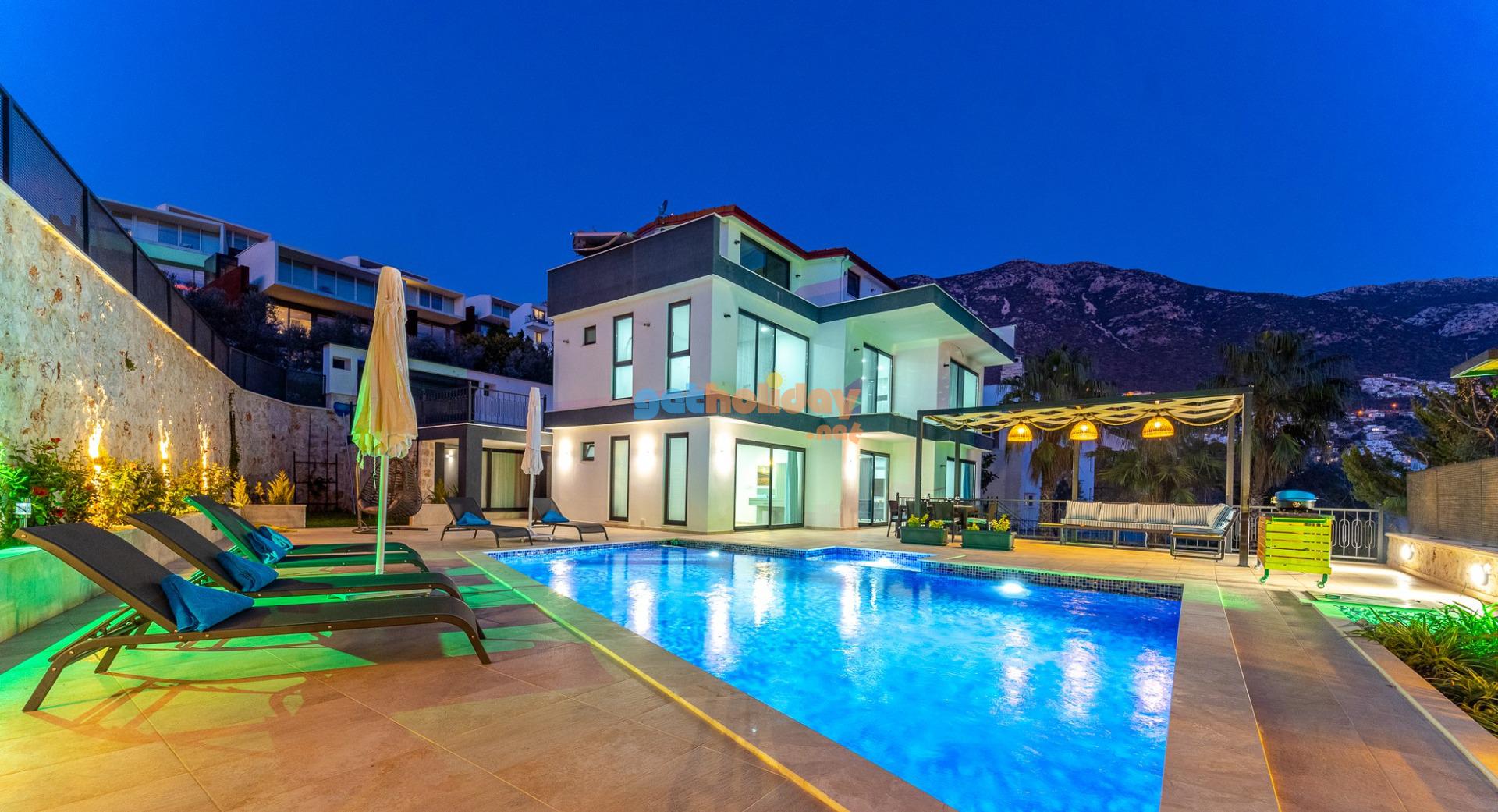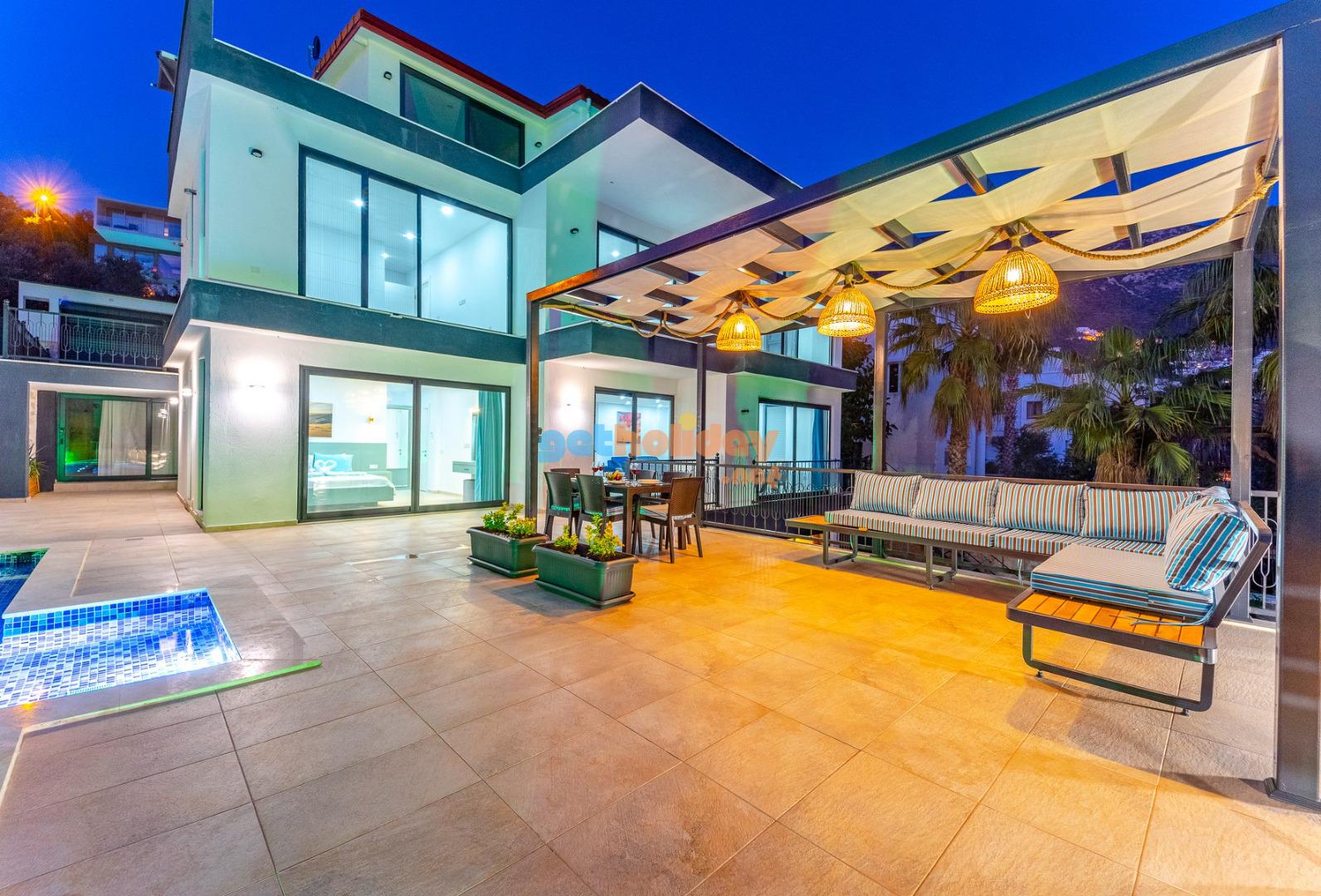 Kalkan'ın kalbinde konumlanan özel havuzlu 6 kişi kapasiteye sahip olup konfor ve huzurlu bir  tatil yapmanın keyfini çıkartmanız için dizyan edilmiştir Modern tasarımı, lüks mobilyaları ve geniş iç mekanıyla sizlere kendinizi evinizde hissedecek olan villamız sizleri beklemektedir.
