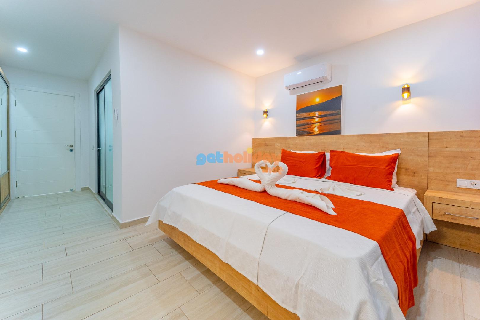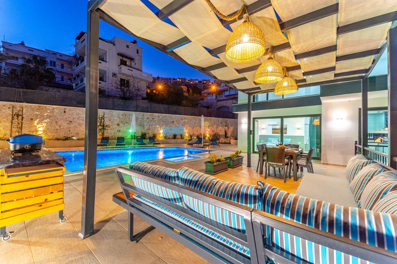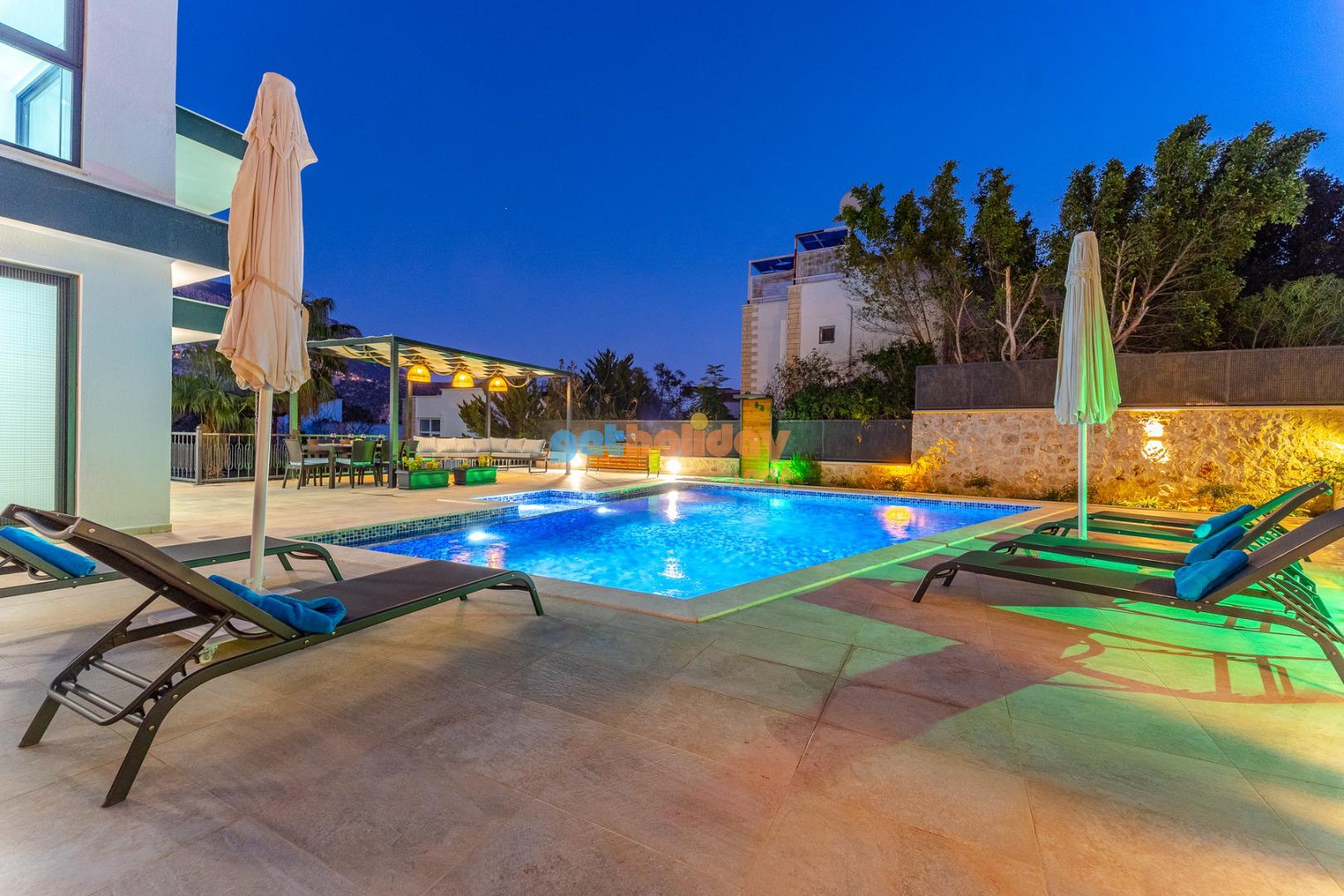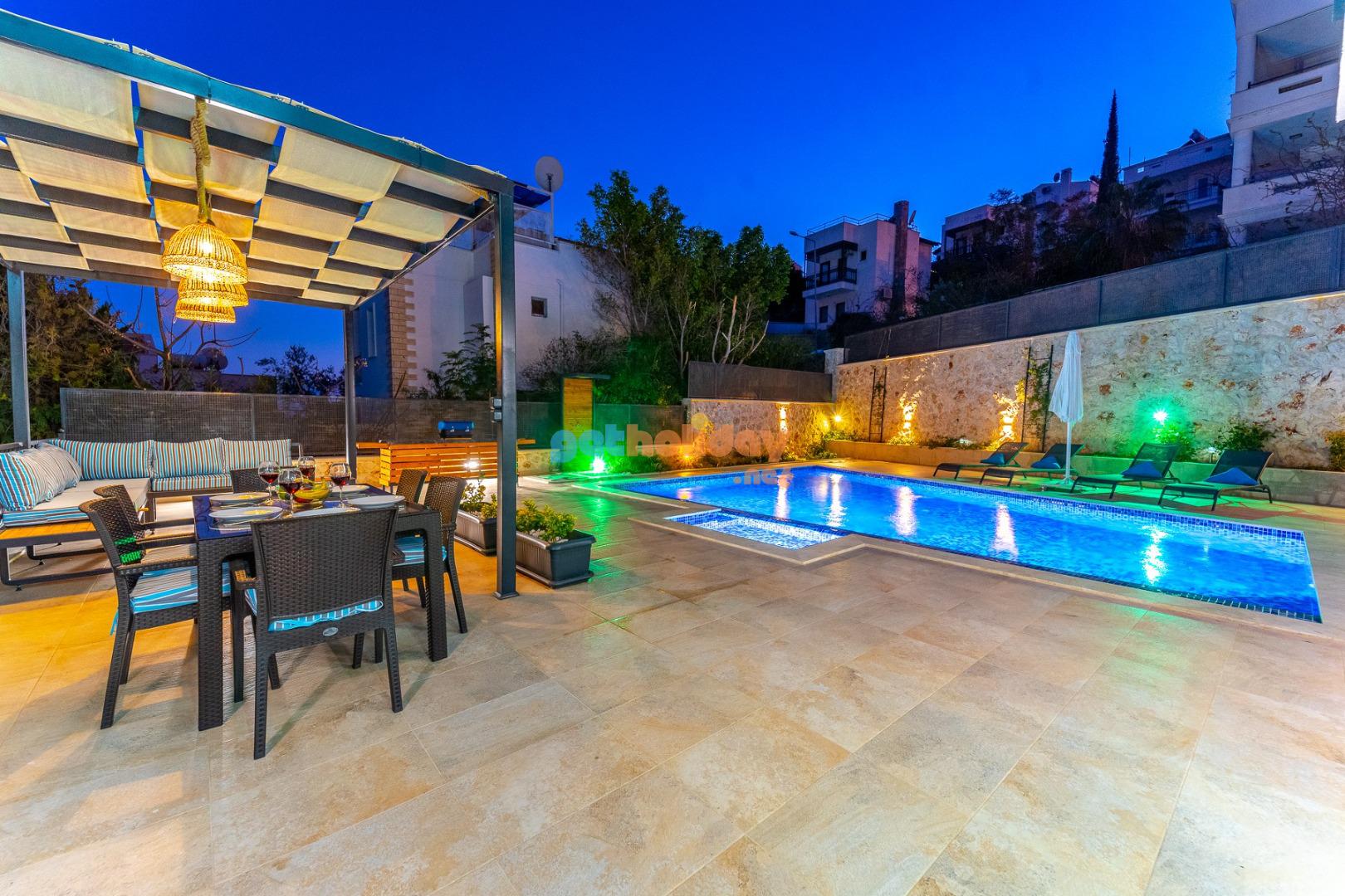 Kalkan'ın kalbinde konumlanan özel havuzlu 6 kişi kapasiteye sahip olup konfor ve huzurlu bir  tatil yapmanın keyfini çıkartmanız için dizyan edilmiştir Modern tasarımı, lüks mobilyaları ve geniş iç mekanıyla sizlere kendinizi evinizde hissedecek olan villamız sizleri beklemektedir.