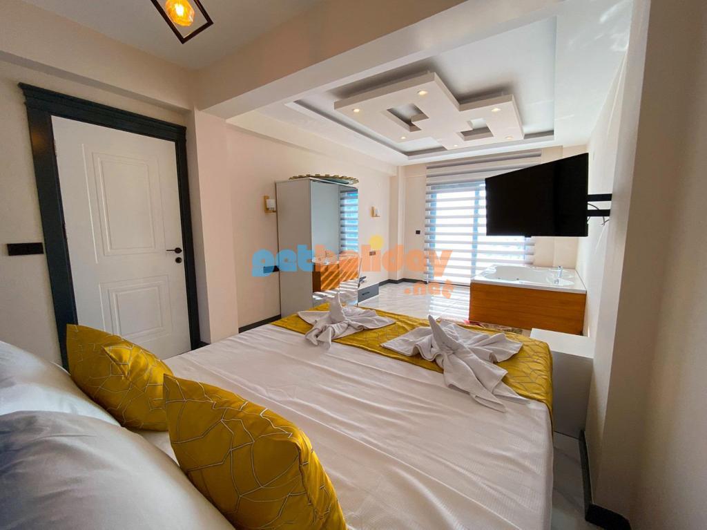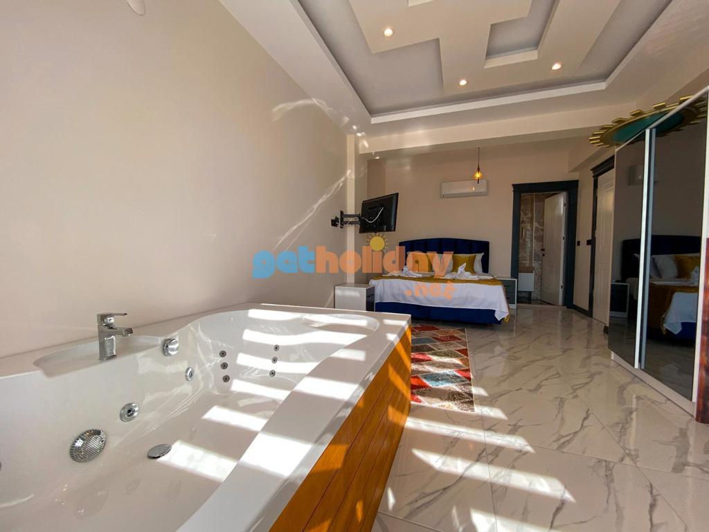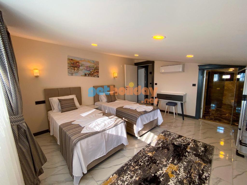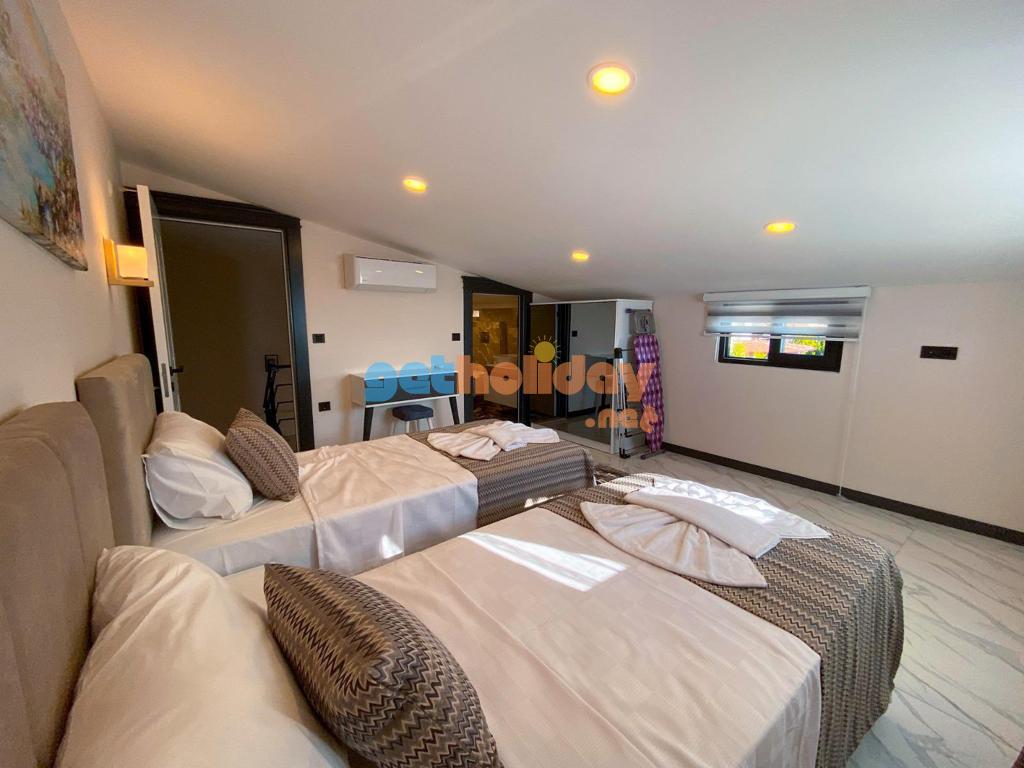 Fethiye Ölüdeniz mevkiindeki büyüleyici villalarımızda, lüks ve konforun mükemmel birleşimini keşfedin. Her biri dört yatak odası, ebeveyn yatak odalarında jakuzi ve modern bir salon ile donatılmış olan bu villalar, 8 kişiye kadar konaklama imkanı sunar. Kendinizi özel hissedeceğiniz hamam, sauna ve kapalı havuz ile kendi kişisel spa deneyiminizi yaşayabilirsiniz. Açık hava severler için, her villanın bahçesinde keyifli bir oturma alanı ve serinlemek için bir havuz bulunmaktadır. Villalarımız, Ölüdeniz’in muhteşem çam ormanlarıyla çevrili doğasının içinde, huzurlu bir kaçamak yapmak isteyen aileler ve arkadaş grupları için idealdir. Modern ihtiyaçlarınızı karşılayacak şekilde tam donanımlı olan villalarımızda, tatiliniz boyunca rahatınızdan ödün vermenize gerek kalmaz. Burada geçireceğiniz zaman, sizi günlük hayatın stresinden uzaklaştırıp yenilenmiş hissetmenizi sağlayacak.