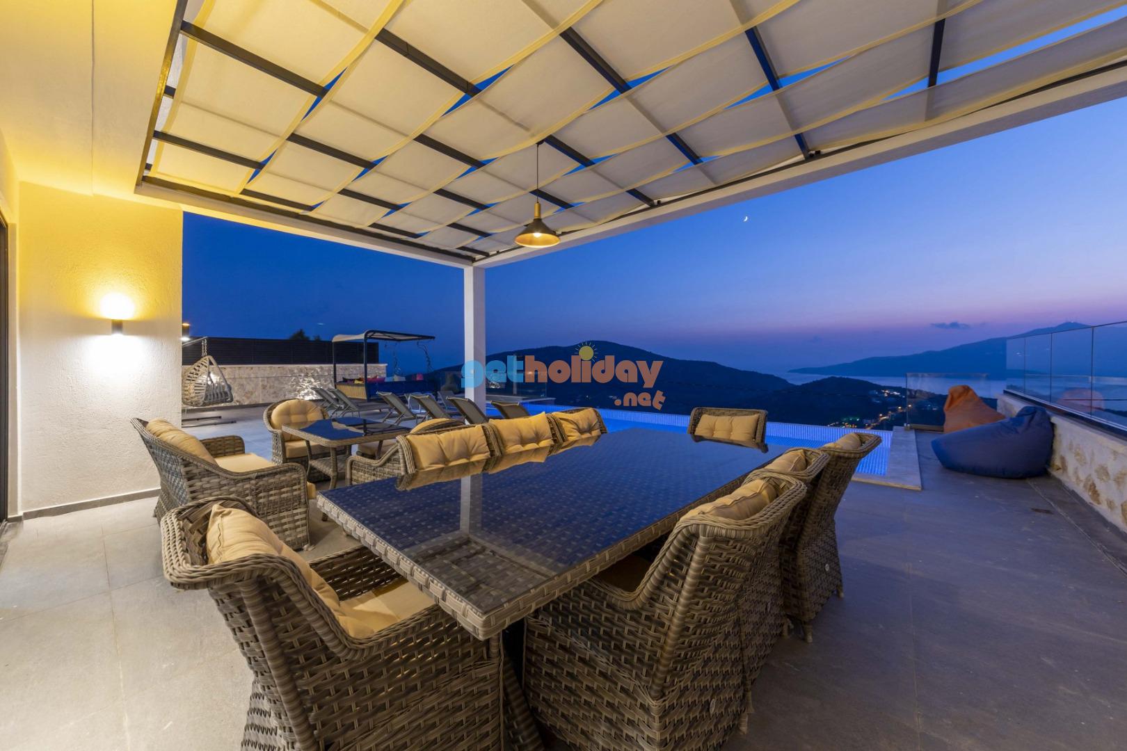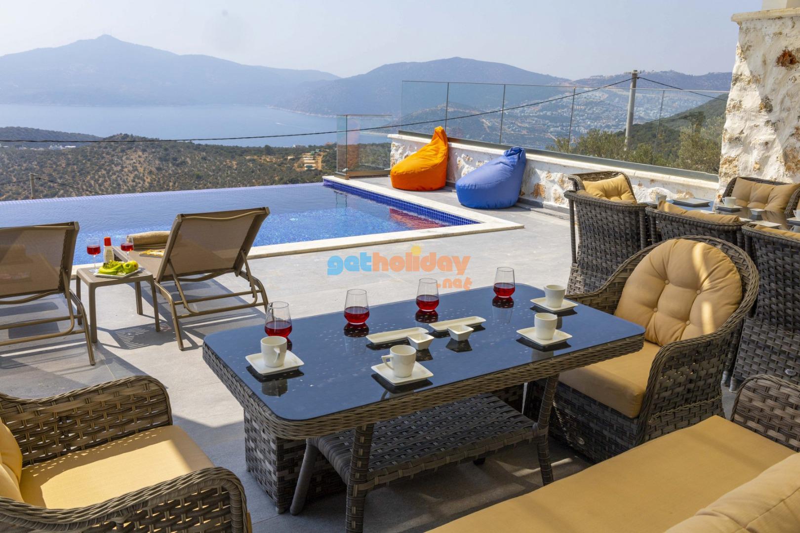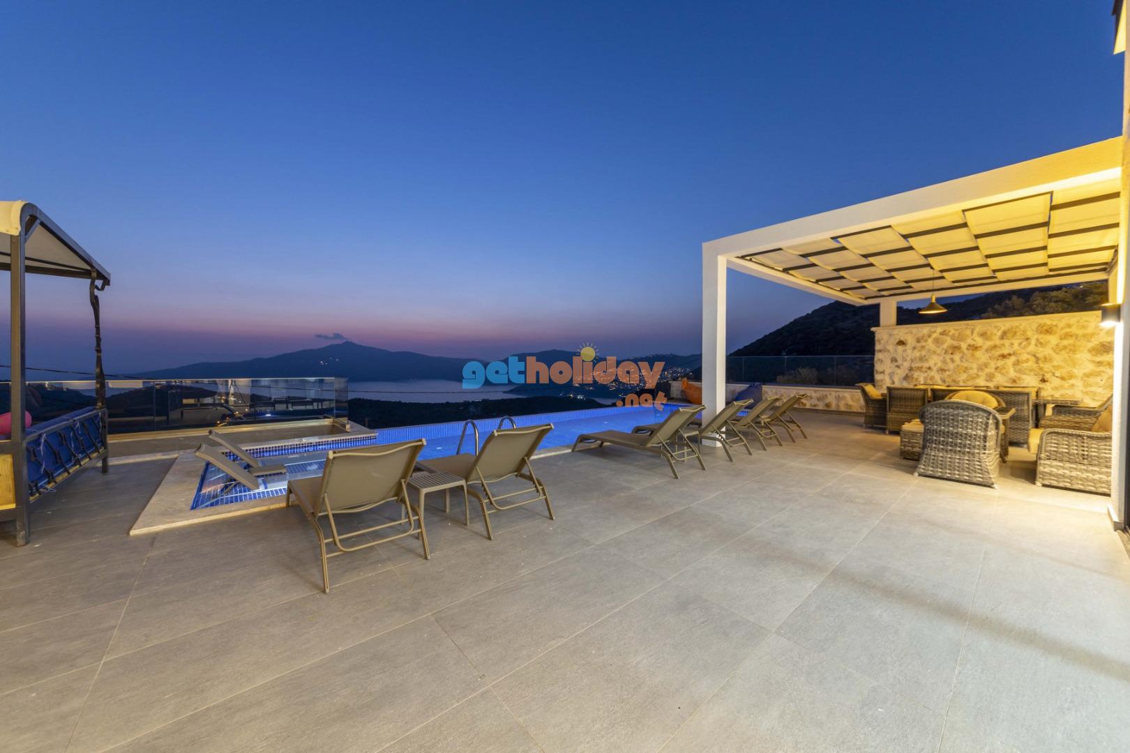 Kalkan merkeze sadece 3 km uzaklıkta yer alan villamız, hem şehir hayatının hem de huzurlu doğanın tadını aynı anda çıkarmanızı sağlar. Kalkan'ın eşsiz deniz manzarasına hakim bir konumda, gün batımını ve doğuşunu panoramik bir şekilde izleyebilirsiniz.