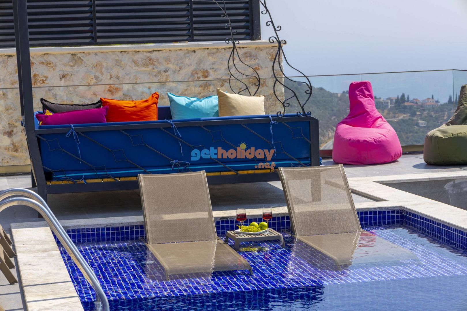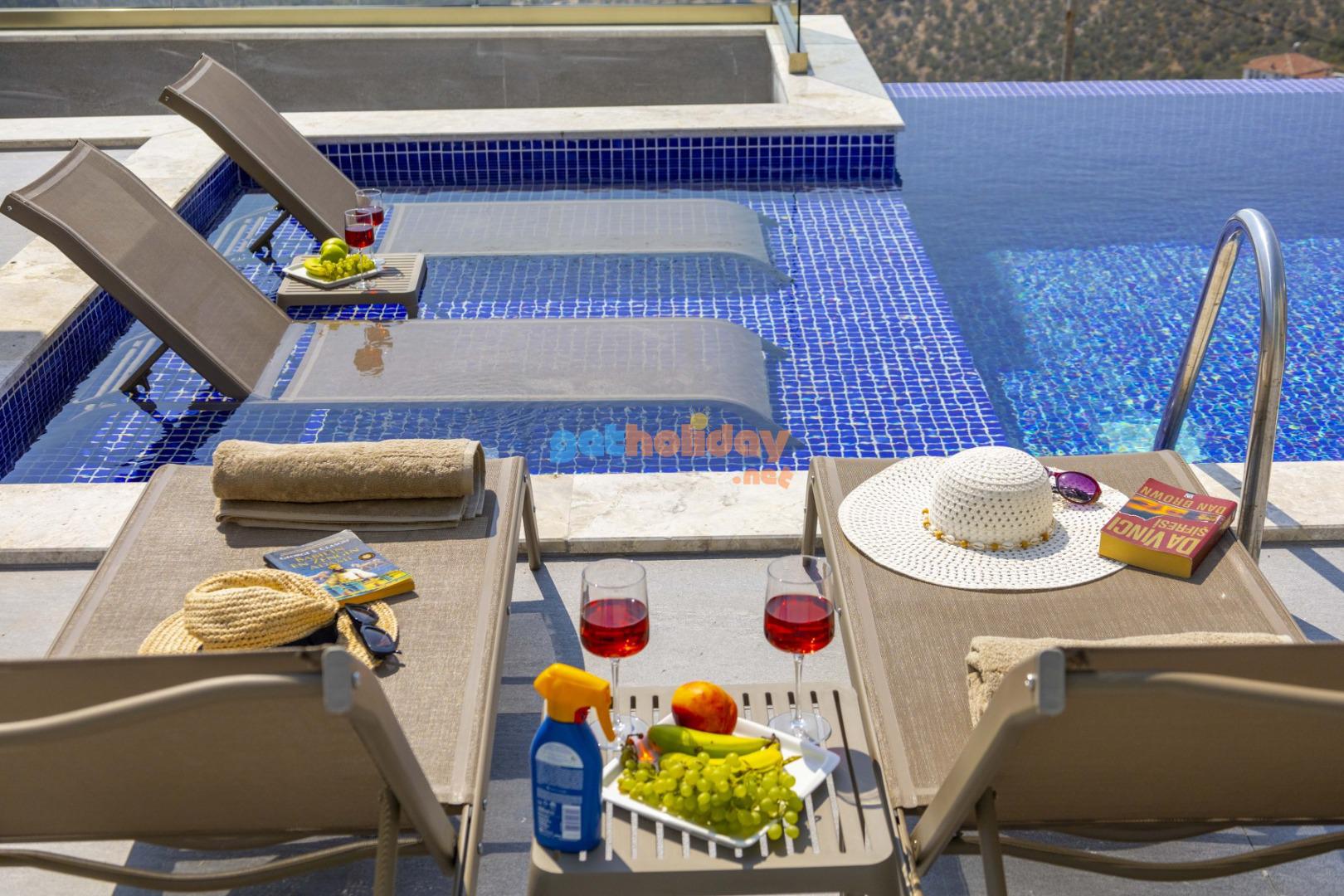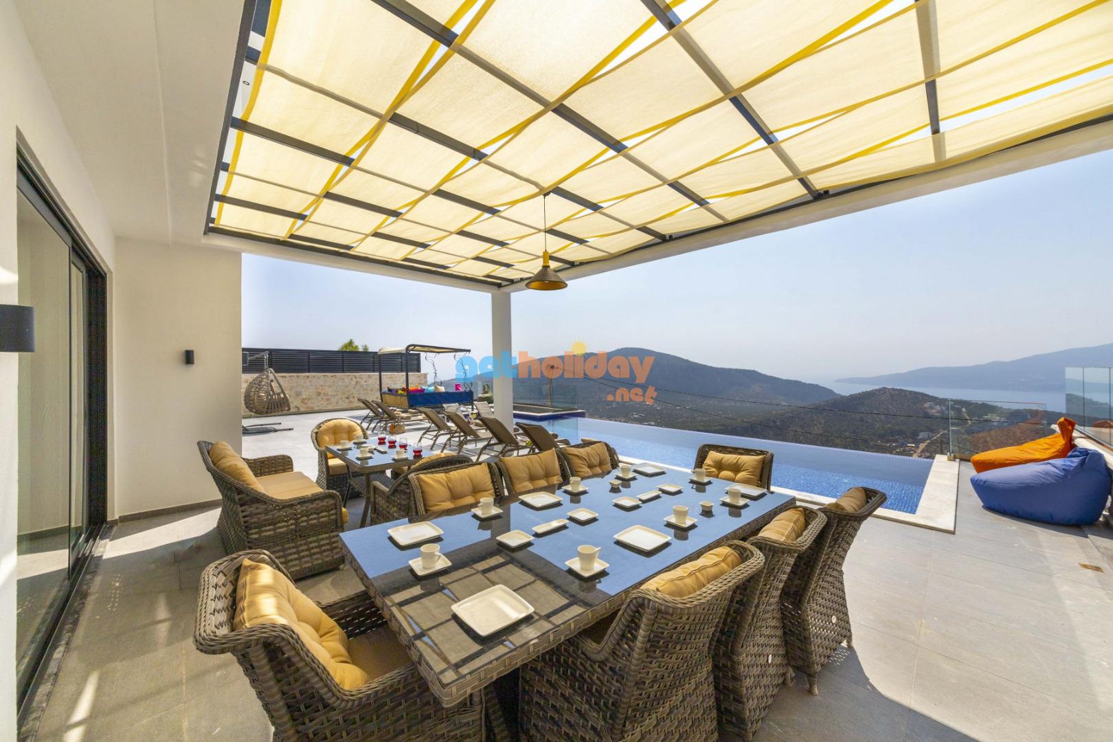 Kalkan merkeze sadece 3 km uzaklıkta yer alan villamız, hem şehir hayatının hem de huzurlu doğanın tadını aynı anda çıkarmanızı sağlar. Kalkan'ın eşsiz deniz manzarasına hakim bir konumda, gün batımını ve doğuşunu panoramik bir şekilde izleyebilirsiniz.