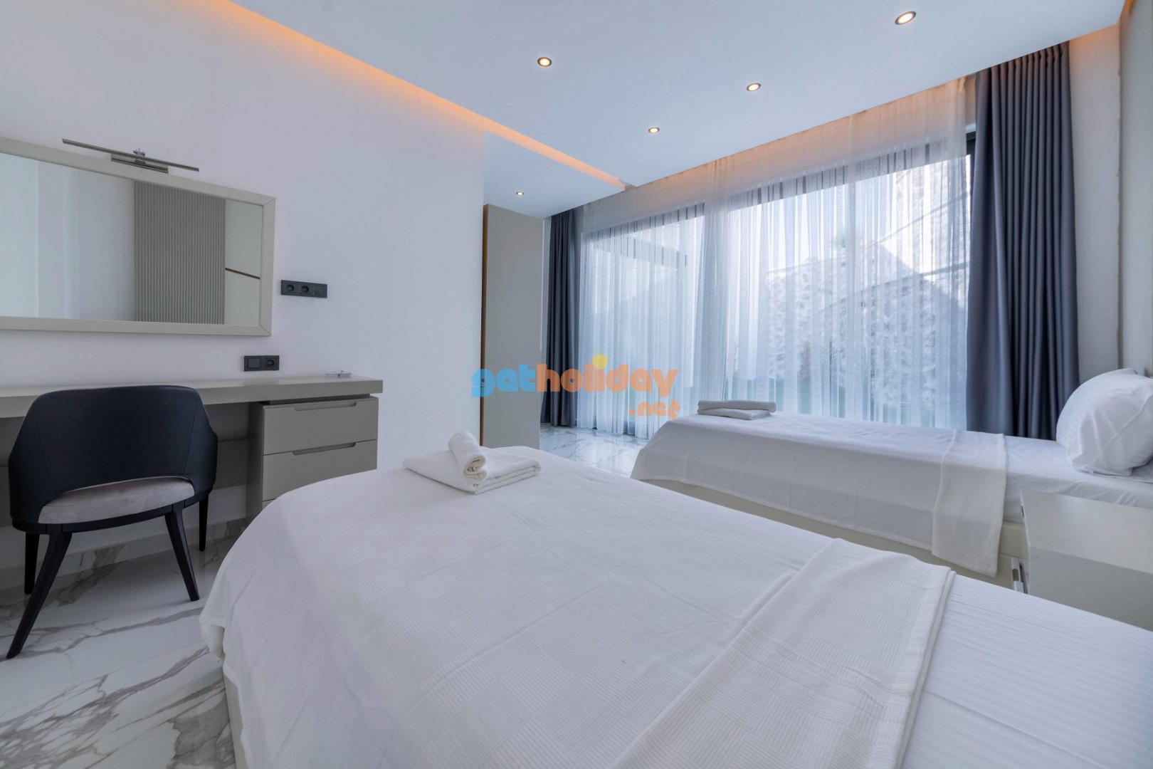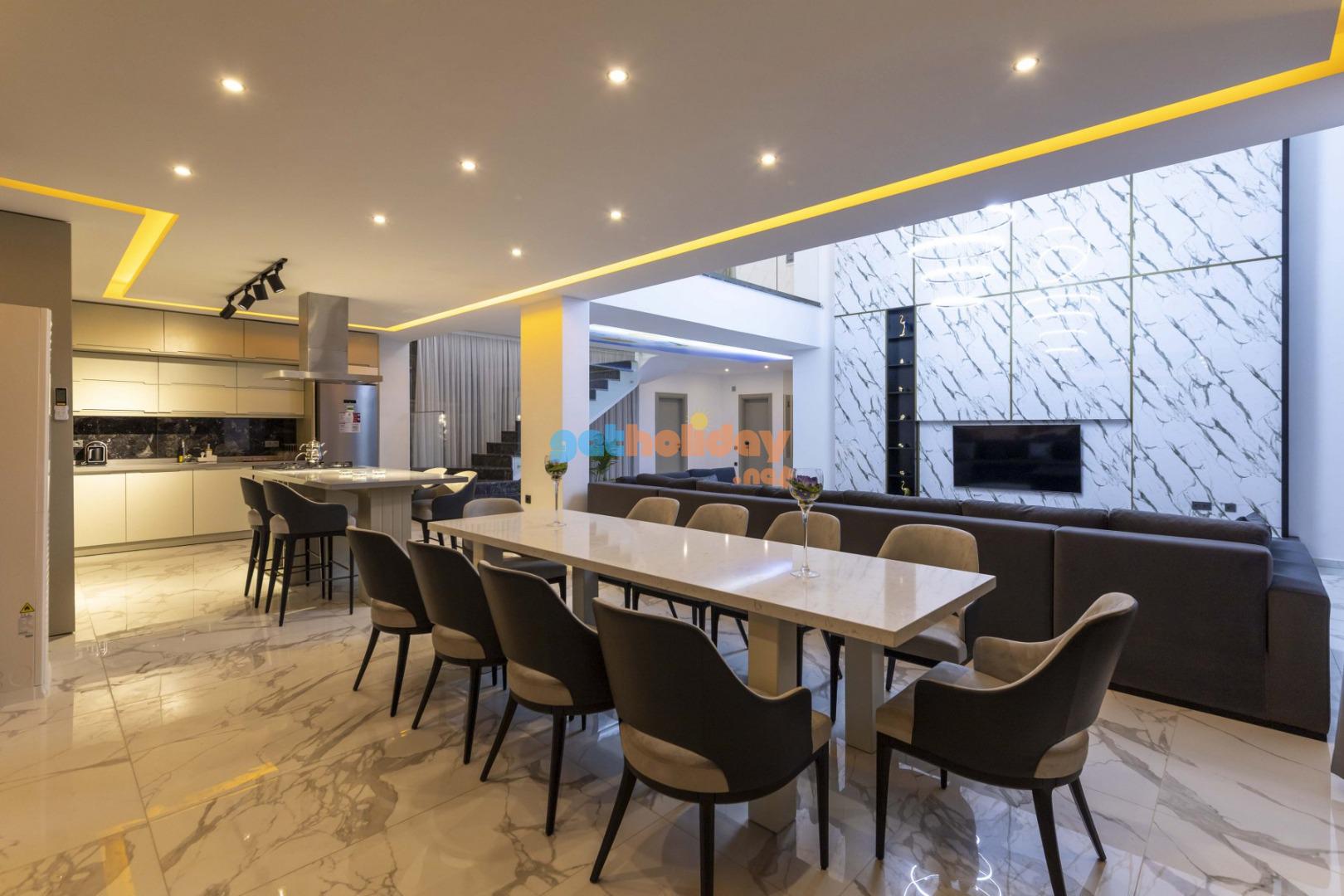 Modern ve şık tasarımıyla dikkat çeken villamız, tatilinizi lüks ve konfor içinde geçirmeniz için tüm detaylarıyla düşünülmüştür. Yüksek standartlarda döşenmiş iç mekanları, tatilinizi daha da özel kılacak.