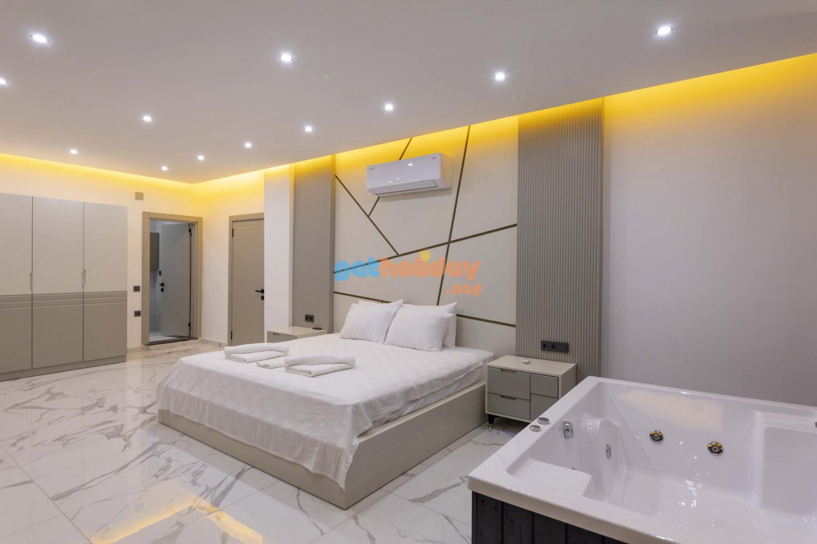 1. Yatak Odası : 1 Adet çift kişilik yatak , komodin , makyaj masası , elbise dolabı , klima , tv , jakuzi ve banyo & tuvalet bulunmaktadır.