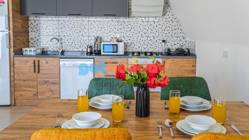 Mutfak : Villamızın geniş Amerikan mutfağı ile sizlere kendi evinizin mutfağı gibi hissettirecek. Ayrıca mutfakta bulaşık makinası, buzdolabı, çamaşır makinası, su ısıtıcısı, fırın, 4'lü ocak seti ve geniş yemek masası ile mutfak araç gereçlerini kullanma fırsatınız vardır.