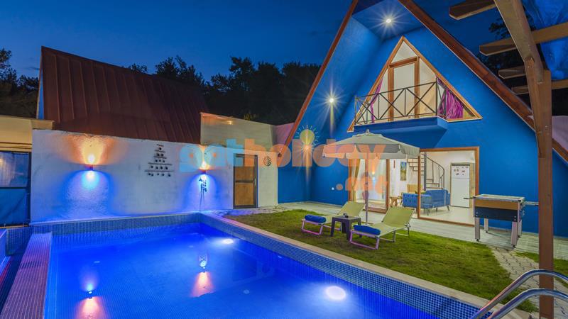 Havuz : Villamızın havuzu ise etrafı dışarıdan görülmeyecek şekilde korunaklı olup sizlere huzurlu ve keyifli havuz deneyimi sunmaktadır. Size özel muhafazakâr yüzme havuzu, şezlong keyfi ve şemsiye ile yazın en güzel günlerinde sizleri bekliyor.