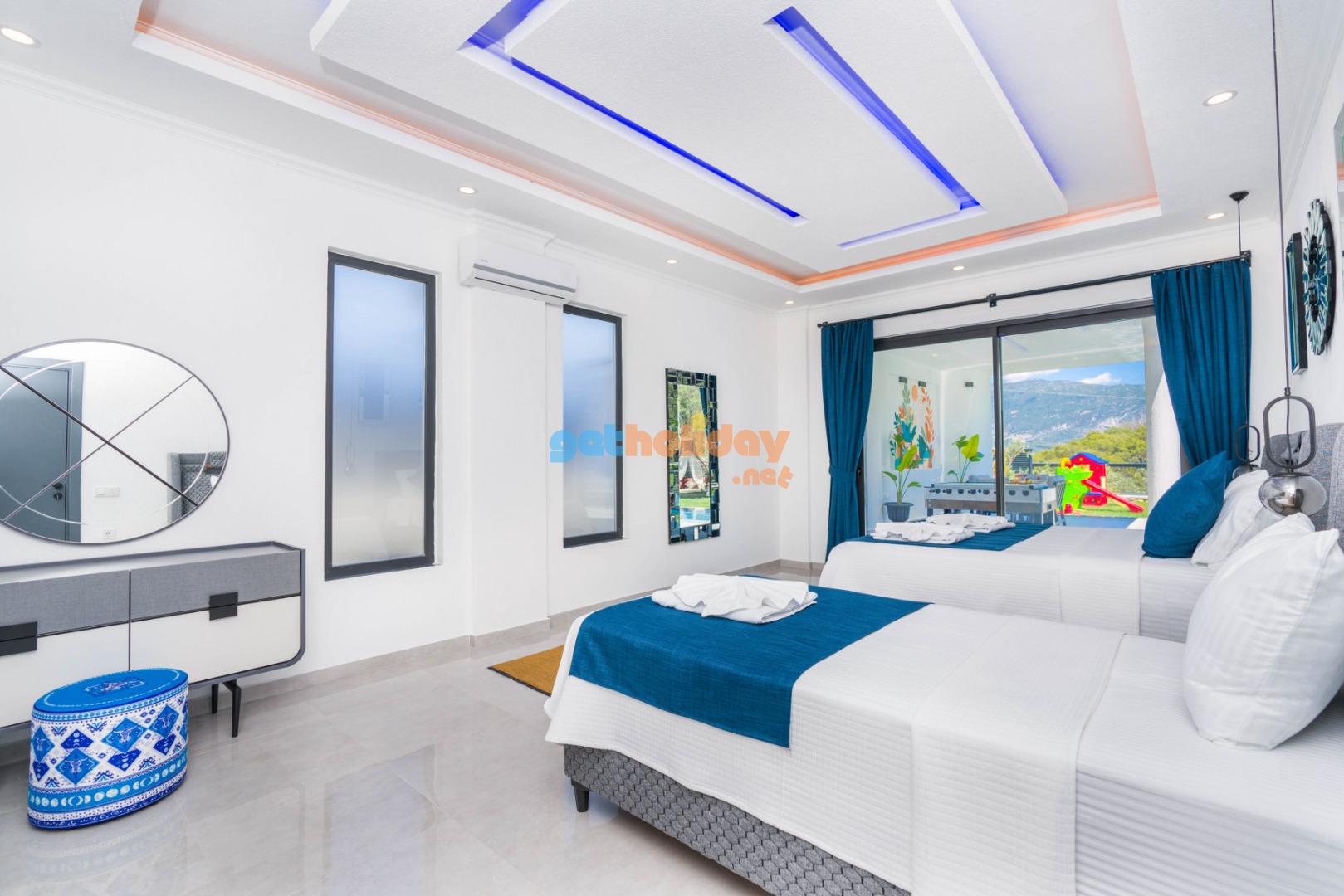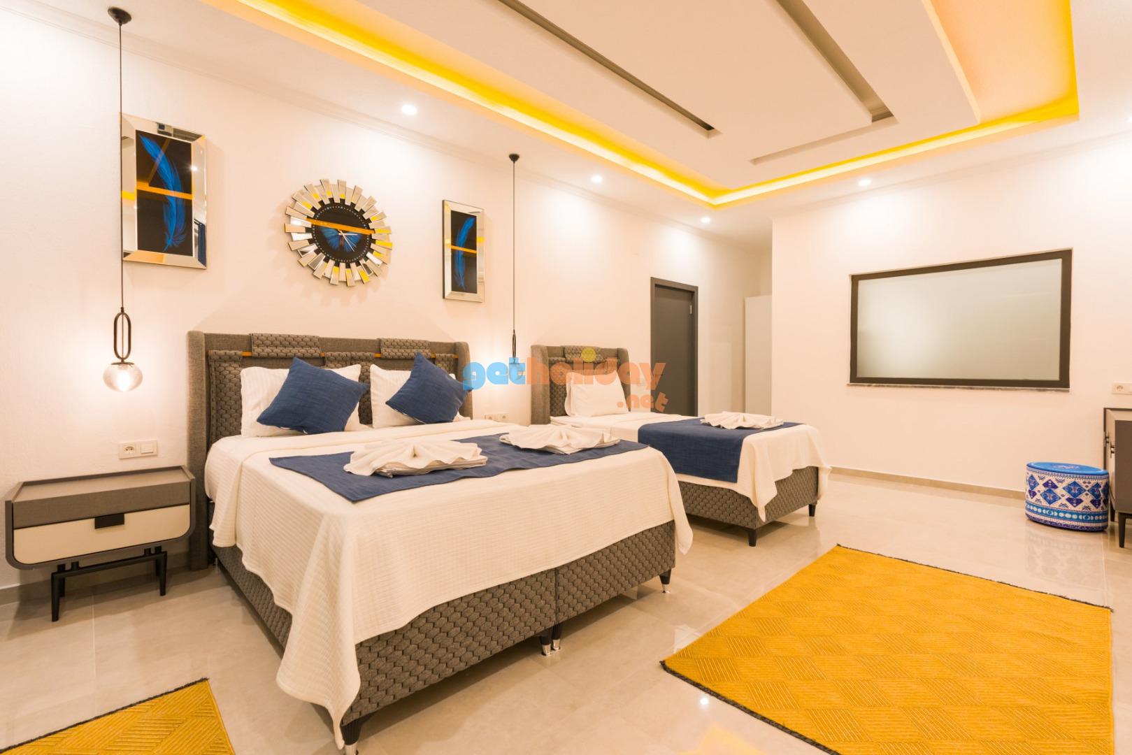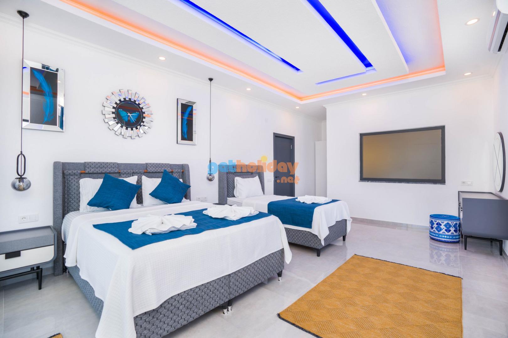 2. Yatak Odası: Bir adet çift kişilik yatak, bir adet tek kişilik yatak,klima, elbise dolabı,komodin, makyaj masası, banyo ve tuvalet bulunmaktadır.