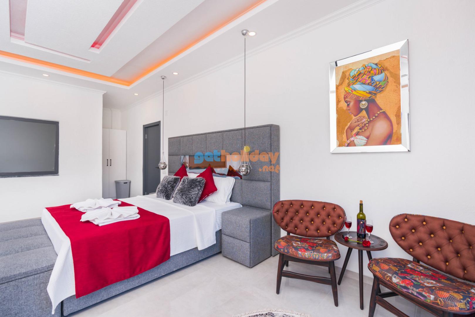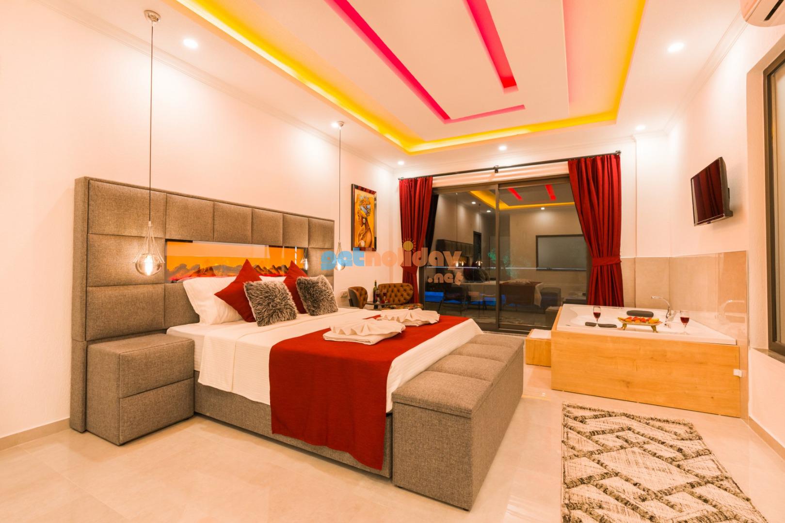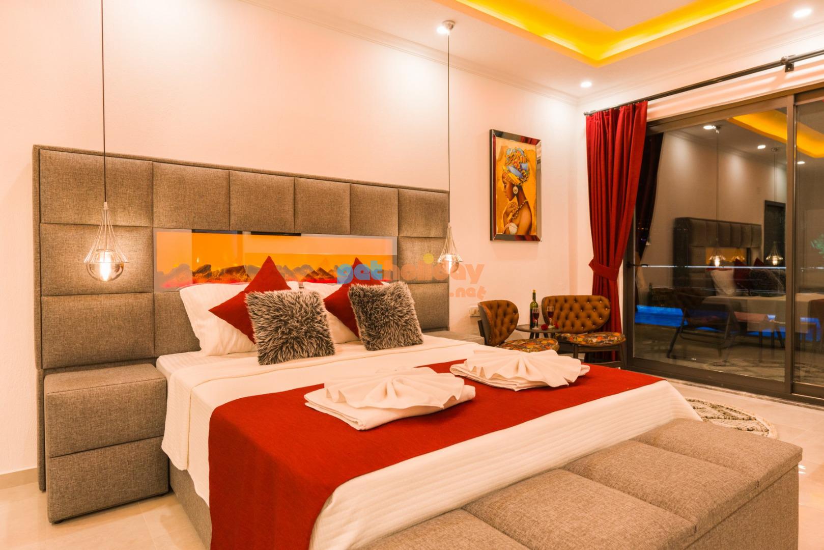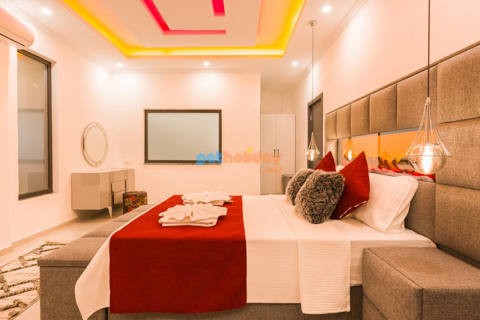 1. Yatak Odası: Bir adet çift kişilik yatak ,klima, jakuzı, komodin, elbise dolabı, makyaj masası,  banyo ve tuvalet bulunmaktadır.