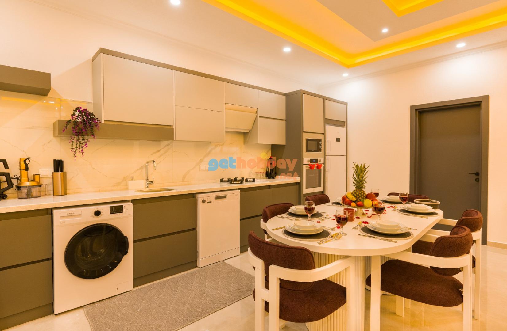 Mutfak : Evizinizin mutfağını aratmayacak Amerikan mutfak içerisinde buzdolabıü bulşaık makinesii çamaşır makinesi, ocak, fırın, su ısıtıcısı, tost makinesi, yemek masası, yemek takımı ve yemek pişirme araç gereçleri yer almaktadır.