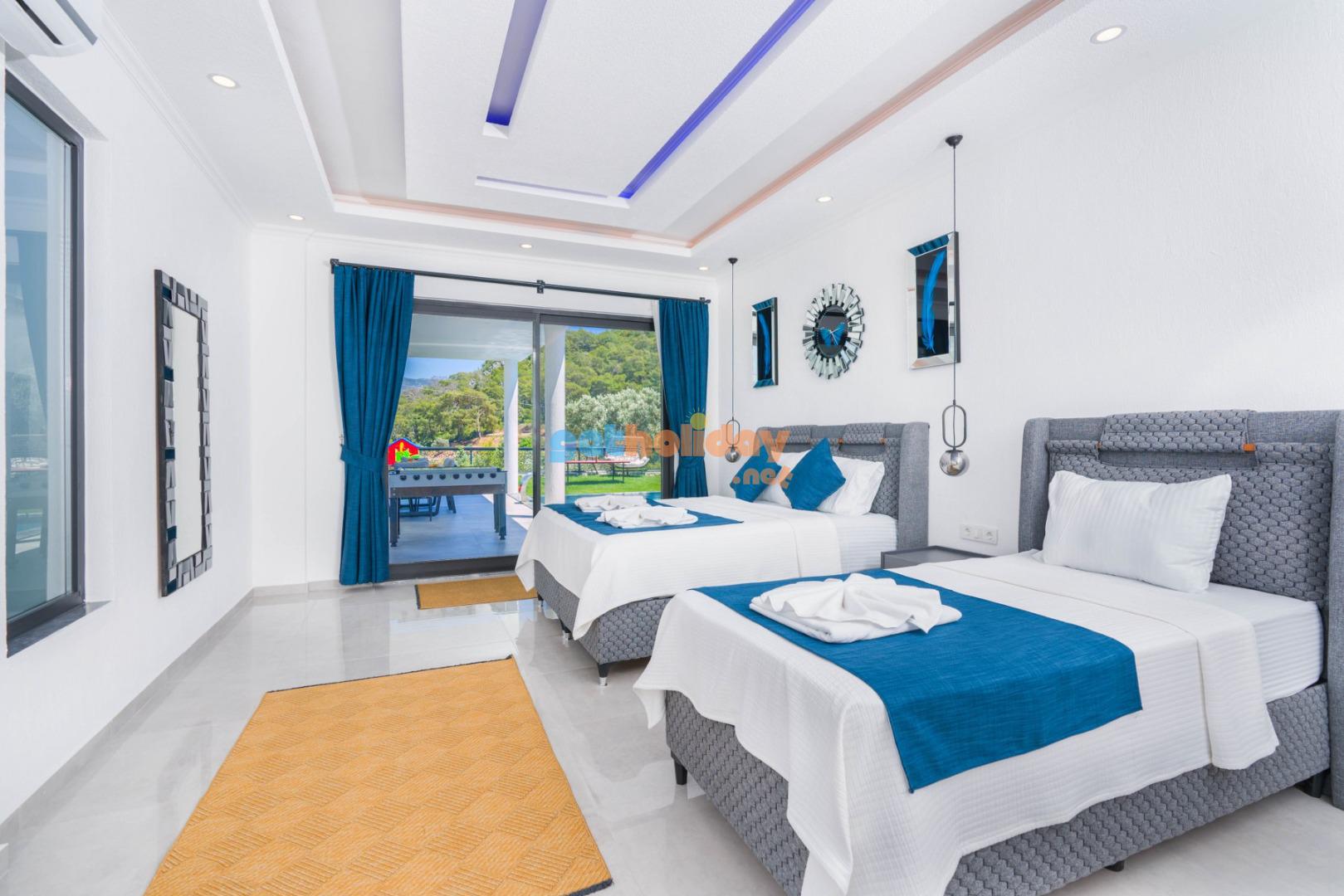 Villa Emir 2, Kalkan Patara Bölgesinde yer alan doğa içerisinde 2 yatak odalı 5 kişilik konaklama kapasiteli kiralık villa. Villa Emir 2’ nin içerisi modern ve konforlu bir şekilde dizayn edilmiş olup , yatak odalarında 2 adet çift kişilik yatak, 1 adet tek kişilik yatak, jakuzi ve her odanın kendine ait banyosu ile sizlere keyifli dakikalar sunar. Villa Emir 2’ nin özel bahçesi korunaklığı ile özel yüzme alanı, bahçe mobilyaları, çocuklar için mini oyun alanı, masa tenisi, barbekü alanı, langırt, salıncak ile 5 kişilik aileler veya arkadaş grupları için ideal bir tatil imkanı sağlamaktadır.