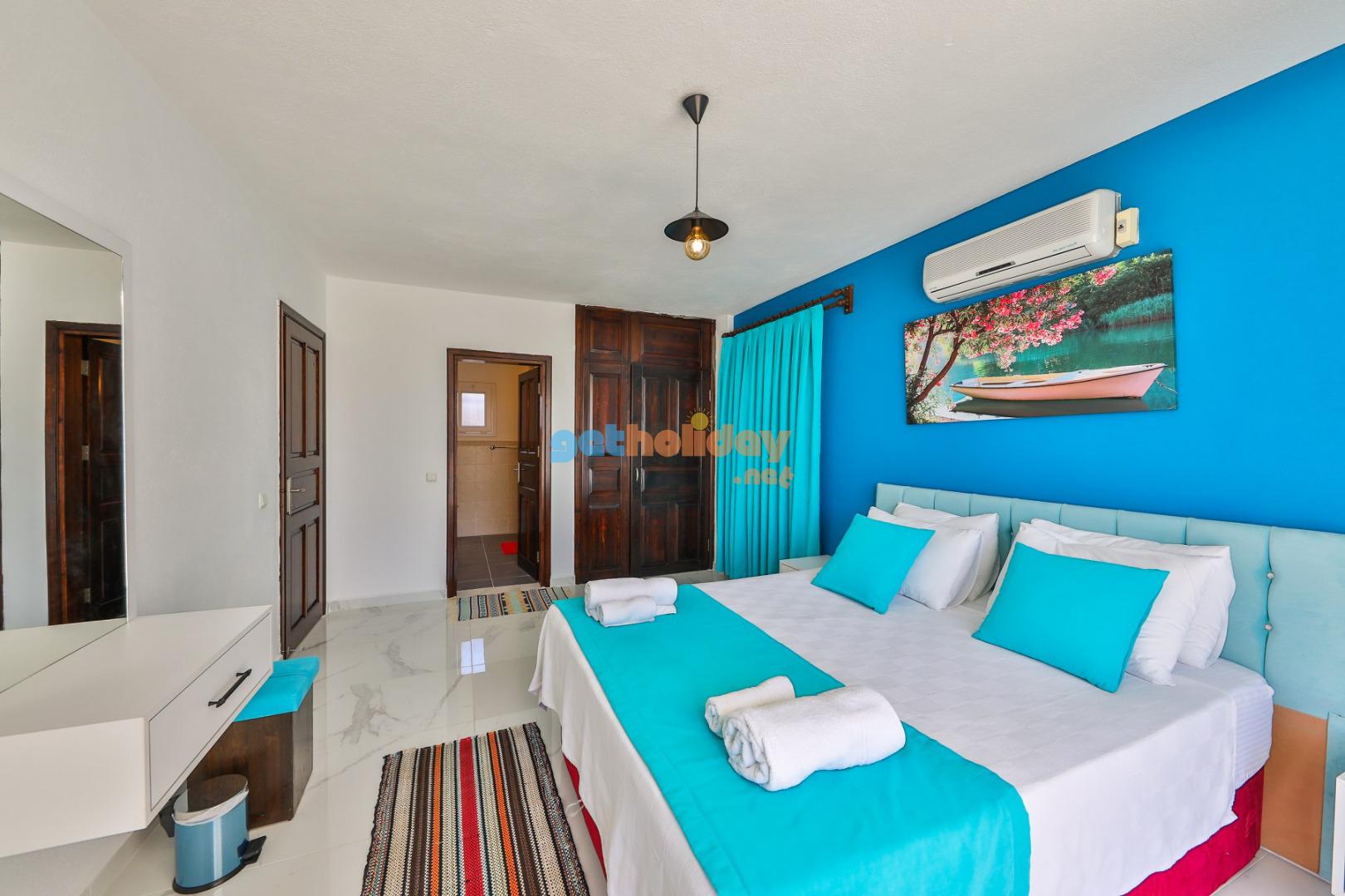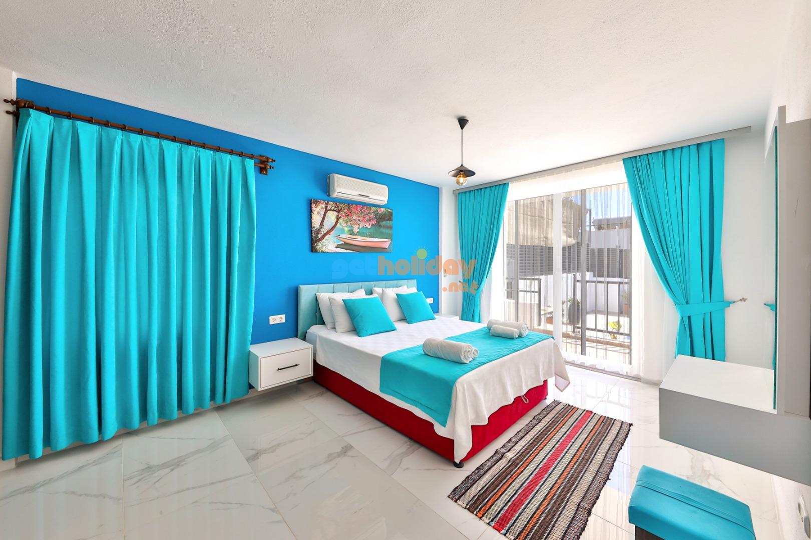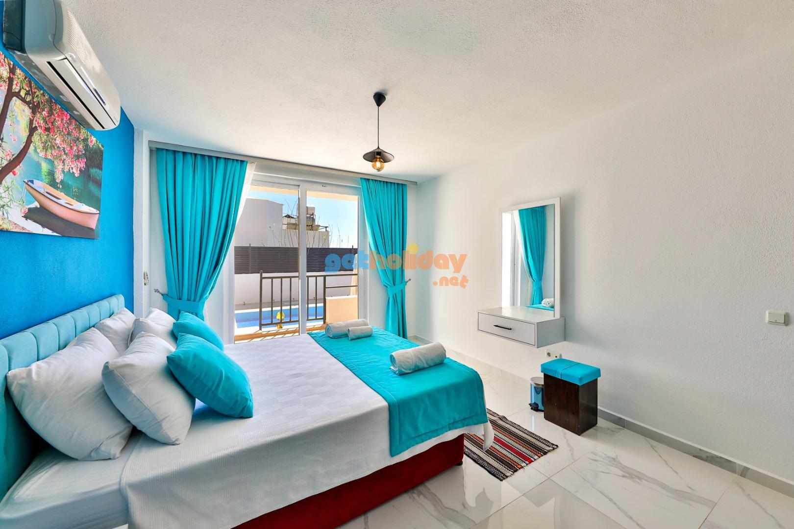 2 – Yatak Odası :1 adet çift kişilik yatak,klima,elbise dolabı,komidin,makyaj masası ve banyo&wc yer almaktadır.