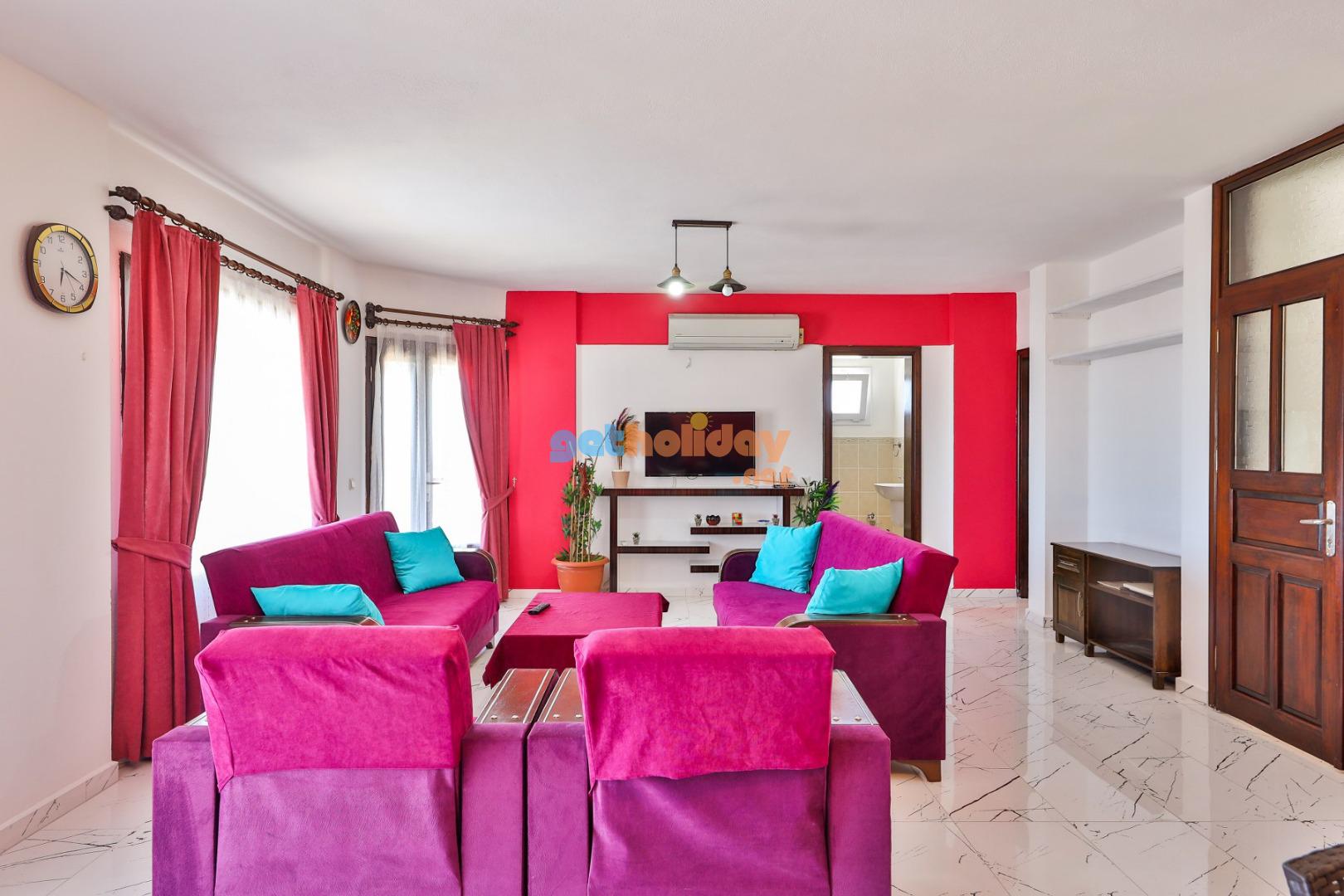 Salon : LCD TV, uydu alıcı, oturma grubu ve klima yer almaktadır. Salondan havuz terasına çıkış bulunmaktadır.