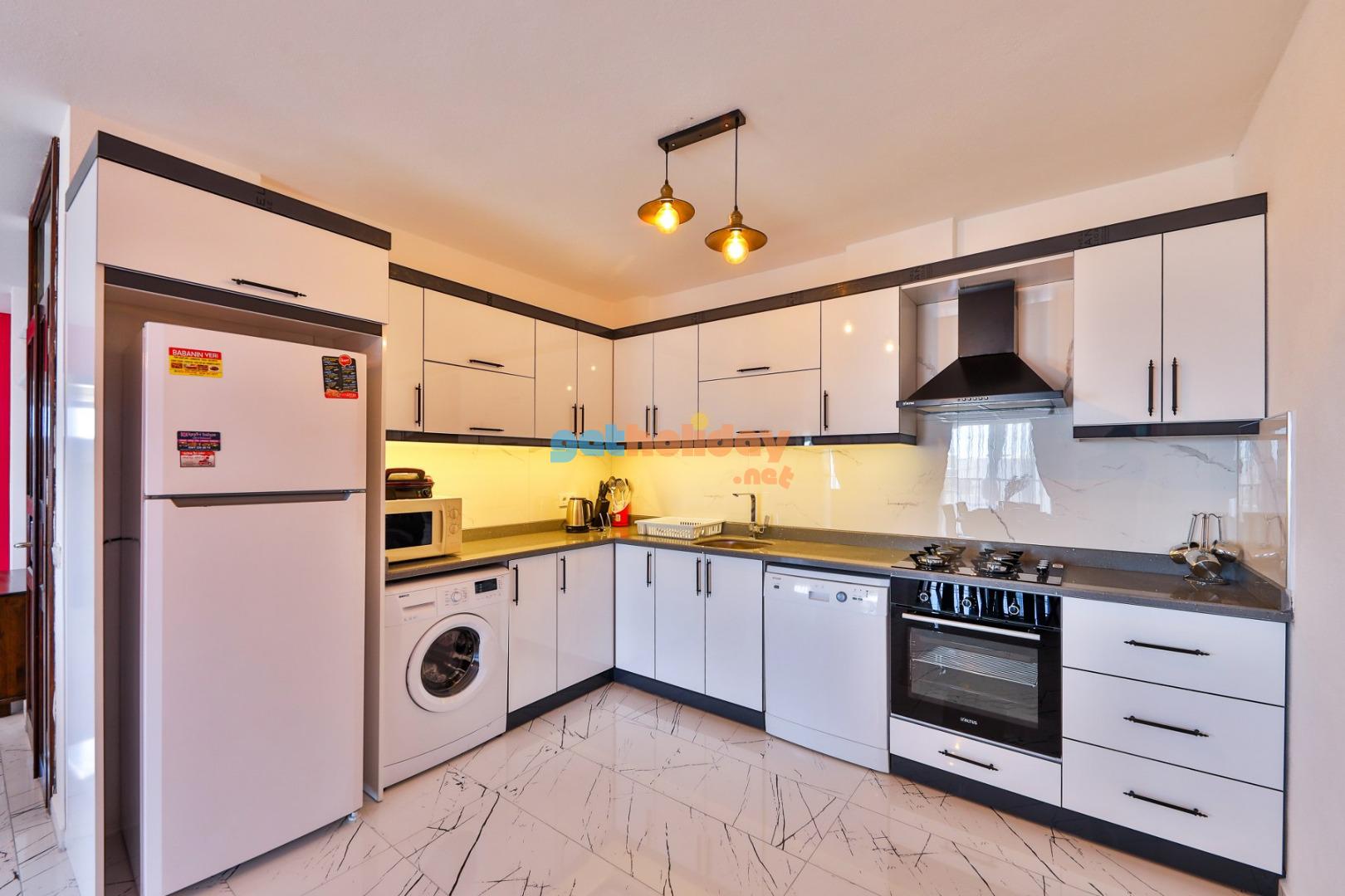 Mutfak : Modern amerikan mutfaktır bulaşık makinası,buzdolabı,çamaşır makinası,mikrodalga fırın,ankastre fırın, ankastre 4’lü ocak,ekmek kızartma makinası,elektrikli su ısıtıcı kettle,yemek takımı, tencere ve tava ,kaşık ve çatal seti vb. ekipmanlar mevcuttur.