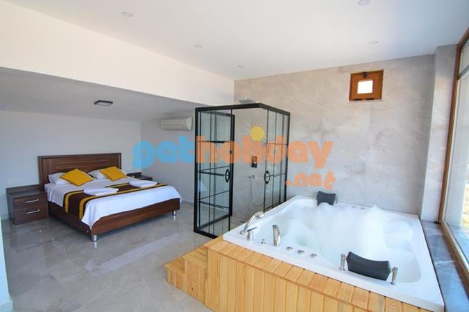Birinci yatak odasında bir adet çift kişilik yatak jakuzi ve banyo bulunmaktadır.