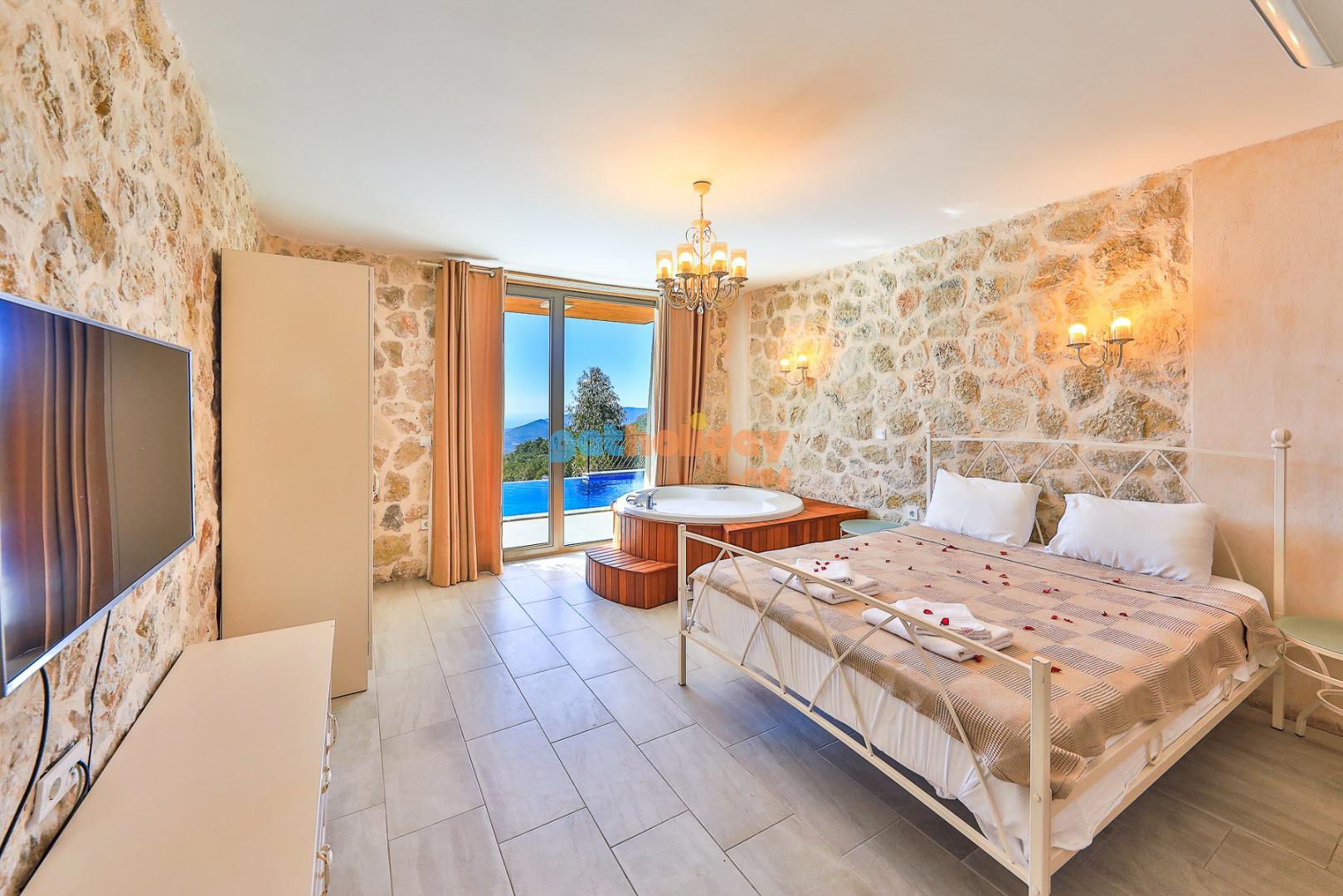 Birinci yatak odasında bir adet çift kişilik yatak, jakuzi ve banyo bulunmaktadır.