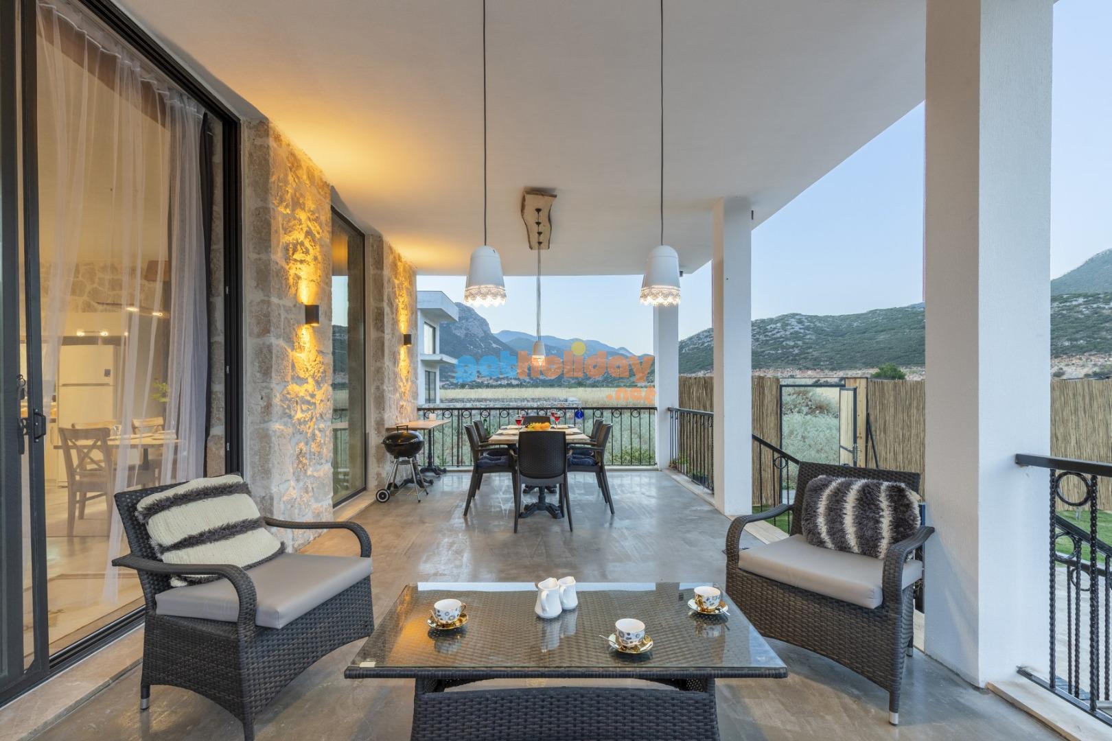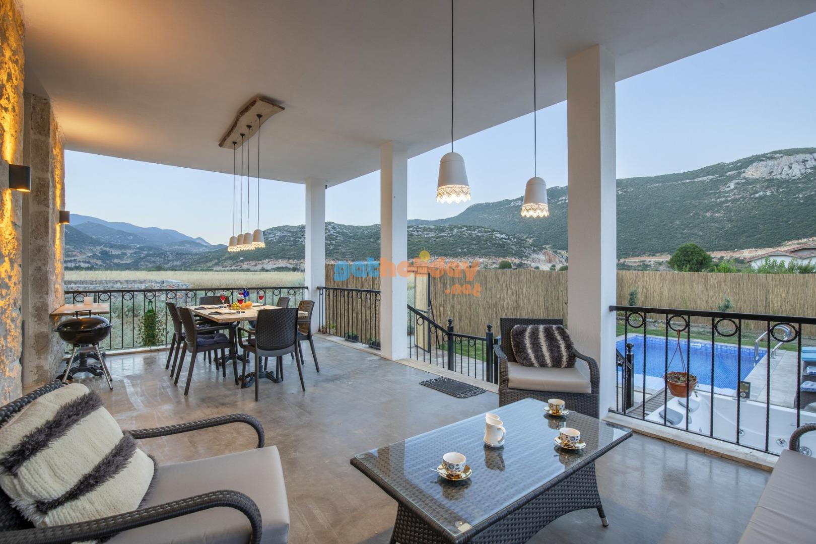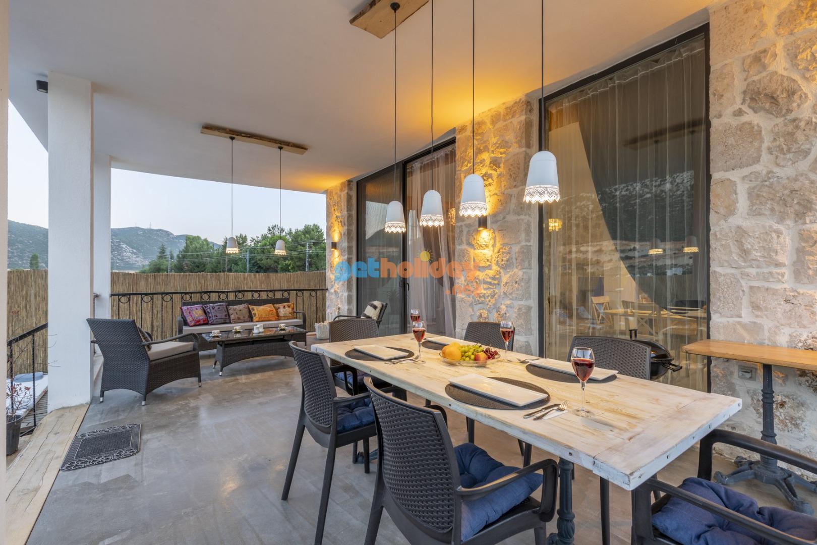 Kalkan / Bezirgan’da bulunan Villa Füreyya 2'nin benzersiz özelliklerinden biri, ferah bir verandaya sahip olmasıdır. Bu güzel veranda, sizlere özgürce vakit geçirebileceğiniz geniş bir alan sunar. Günün yorgunluğunu atabileceğiniz, açık havada keyifli bir akşam yemeği yiyebileceğiniz veya sadece serin bir içecek eşliğinde dinlenebileceğiniz bir ortam sağlar.