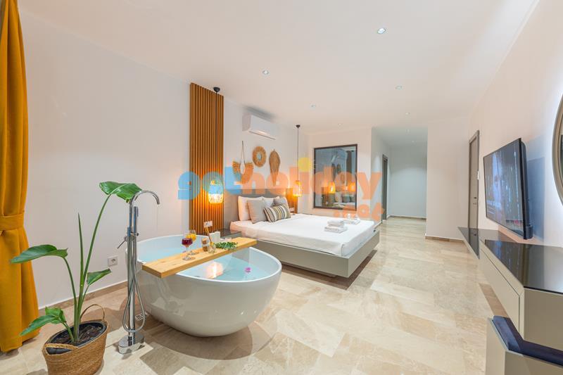 1. Yatak Odası : Bir adet çift kişilik yatak, klima, elbise dolabı, makyaj masası, kuvet, komodin banyo ve tuvalet bulunmaktadır.