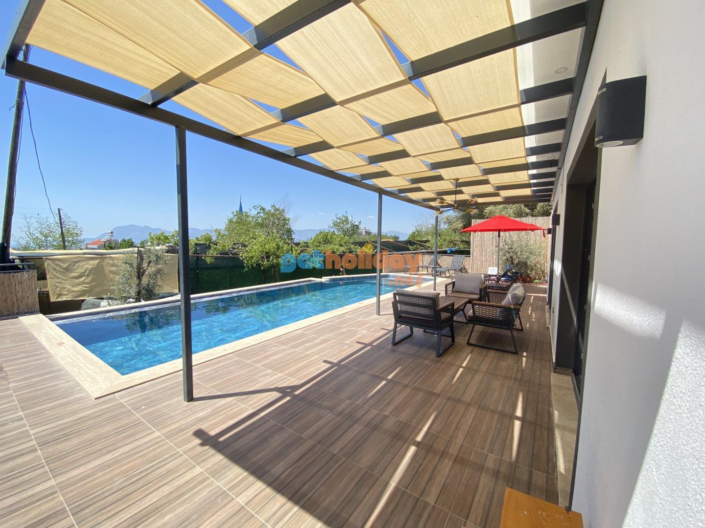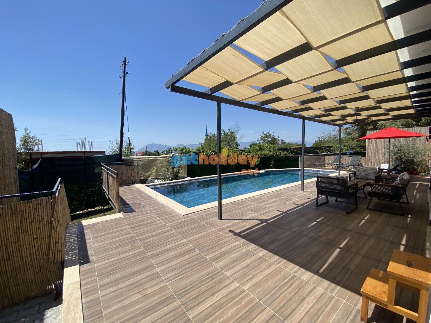 Kalkan Üzümlü bölgesinde doğa manzarasına 2 Yatak Odalı 4 Kişilik Özel Yüzme Havuzlu Muhafazakar Kiralık villamız 2021 yılında tamamlanmış olup yeni ve modern bir villamızdır. Balayı çiftleri ve çocuklu aileler için geniş havuz terasında ve geniş bahçe alanında sessiz ve sakin rahat bir tatil arzulayan misafirlerimiz için bu villa seçeneğimiz son derece yerinde bir karar olacaktır.