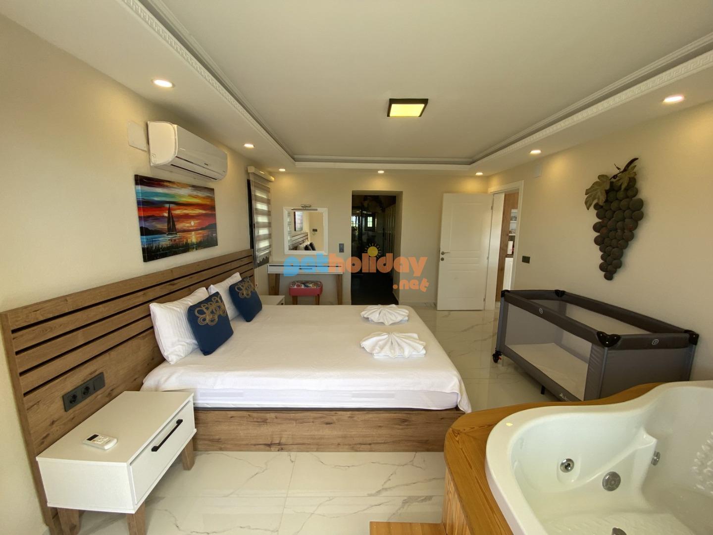 1. Yatak Odası : 1 adet çift kişilik yatak, klima, komodin, elbise dolabı, makyaj masası, jakuzi, banyo ve tuvalet bulunmaktadır.
