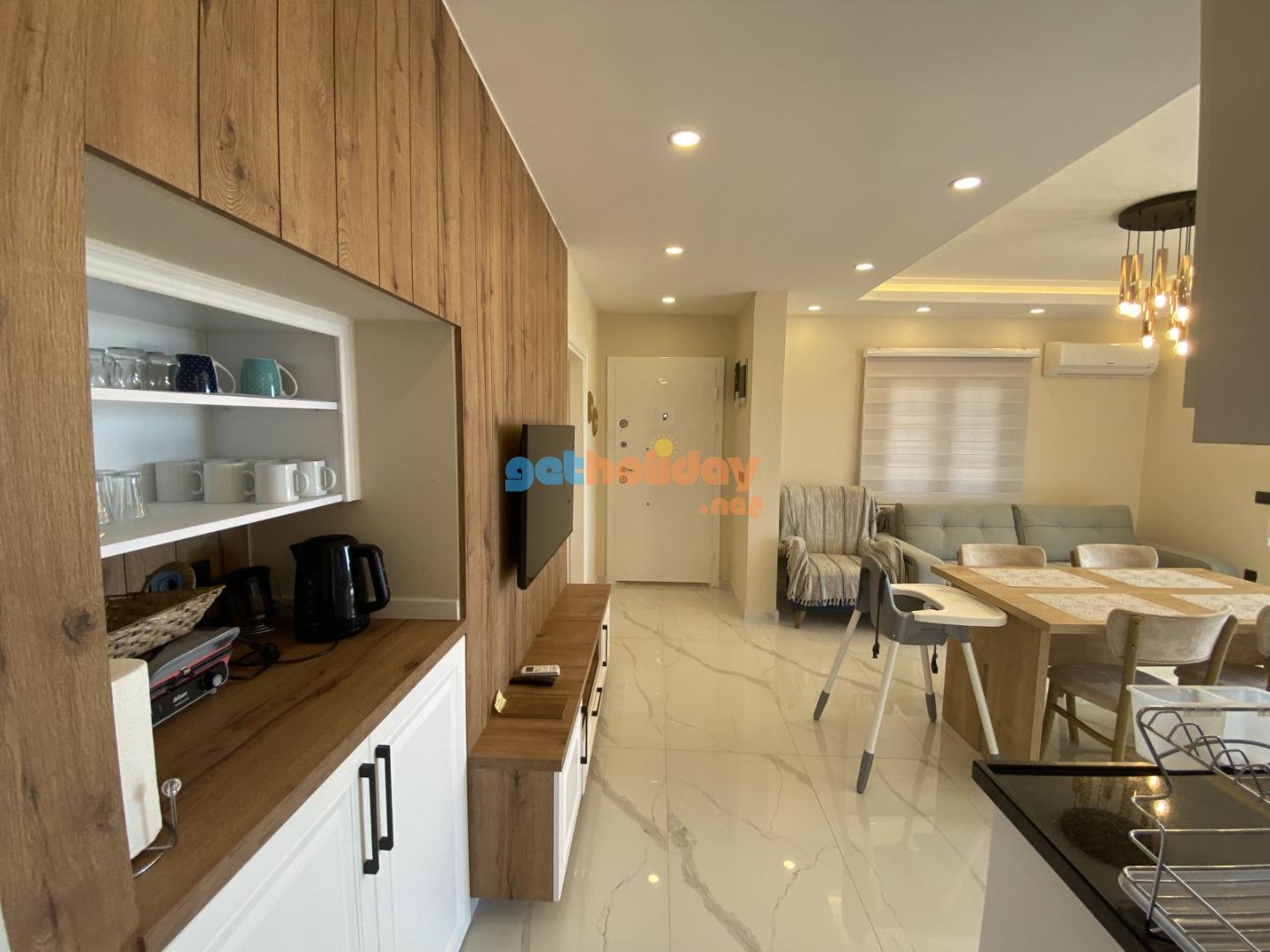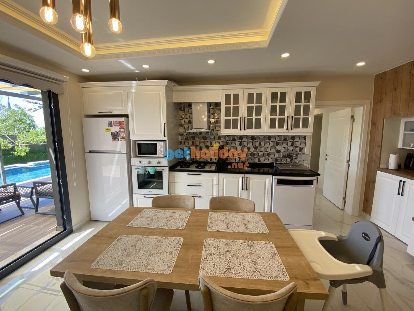 Mutfak : Modern Amerikan mutfak içerisinde yemek masası, mama sandalyesi, buzdolabı, bulaşık makinası, fırın, ocak, mikrodalga fırın, tost makinası, yemek masası, yemek takımları, çatal ve bıçak takımları, tencere ve tava takımları, bardaklar bulunmaktadır.