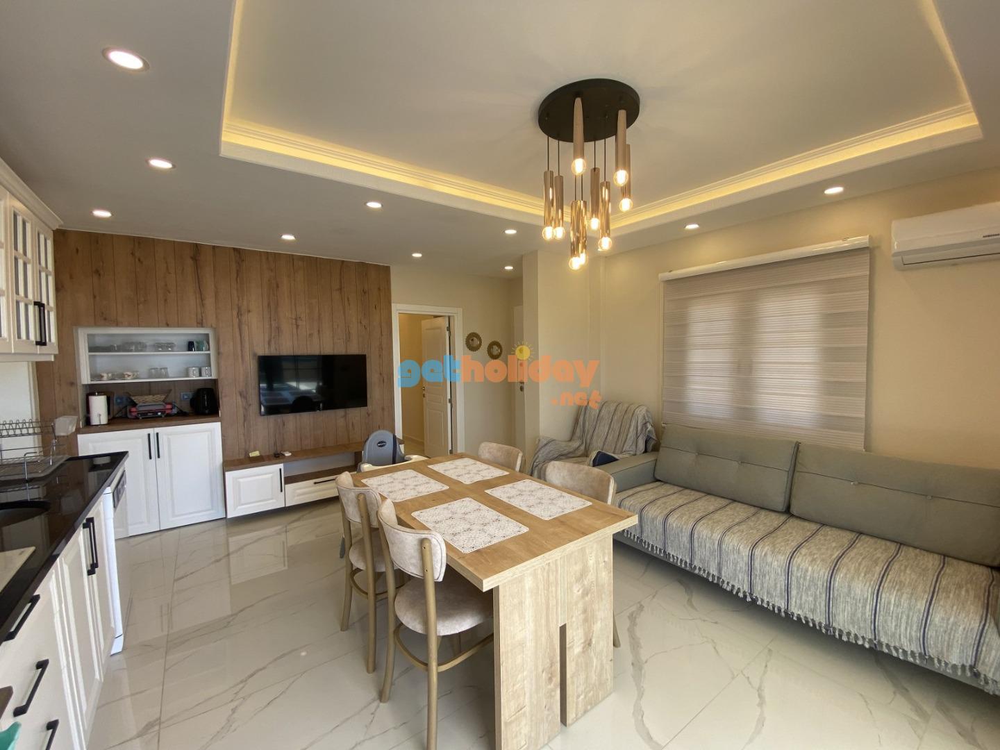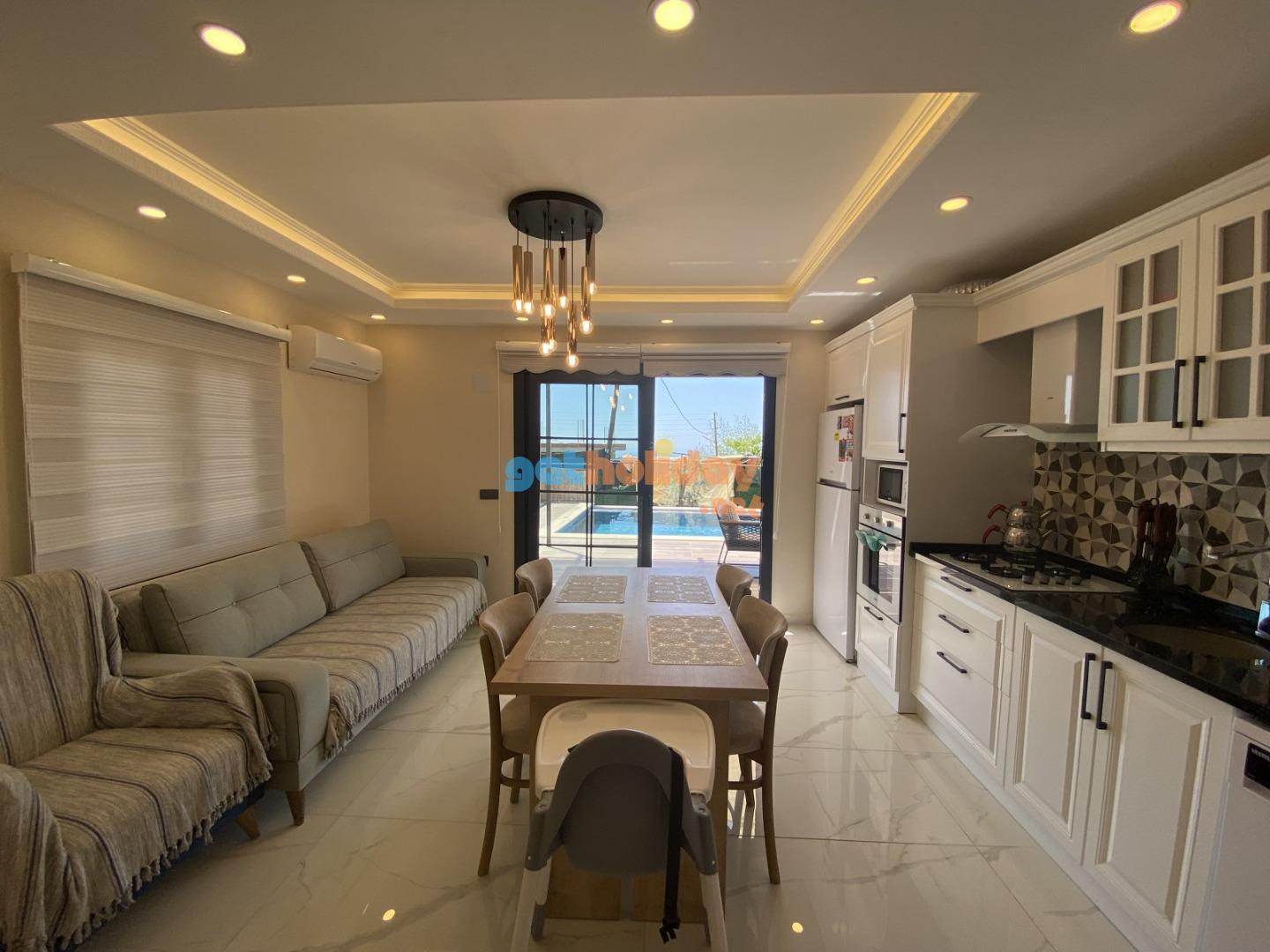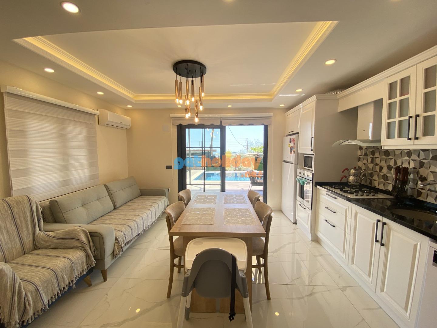 Salon : Salon içerisinde oturma grubu, TV, klima, sehpa bulunmaktadır. Havuz terasına çıkış yapılabilmektedir.