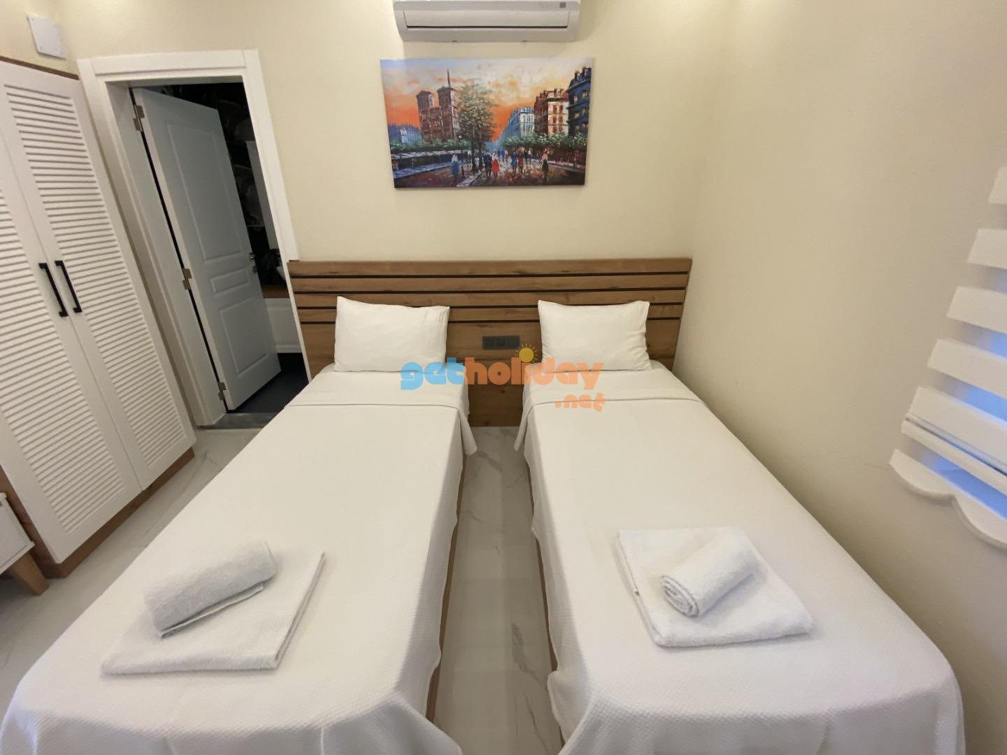 2. Yatak Odası : 2 adet tek kişilik yatak, klima, komodin, elbise dolabı, makyaj masası, banyo ve tuvalet bulunmaktadır.